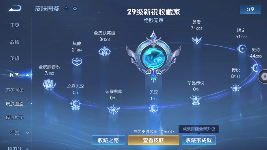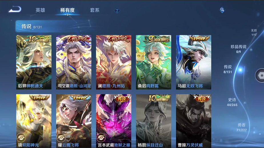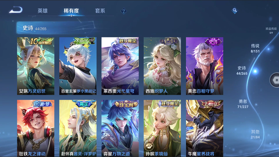 【王者荣耀】【lywz23021】珍品无双0 典藏0 无双1 珍品传说0 传说8 史诗44 英雄125 皮肤145 贵族6级 无双皮肤:器灵·螭龙剑__传说皮肤:鸣野蒿|无双飞将|炽阳神光|地狱之眼|云鹰飞将|愿照·山河定|愿照·九州拓|神树通天__稀有限定:山海·玄木吟|暗影游猎|大漠名商|古海寻踪|海滩派对|海盐诗旅|皇家上将|剑破天穹|金庭之子|迷踪丽影|魔术师|擒涛扼浪|青焰无极|荣光圣徽|沙漠行僧|探海日志|天穹祈灯|妄想食味|五谷丰年|阴阳师|缤纷独角兽|大乔-猫狗日记|德古拉伯爵|功夫厨神|鬼剑武藏|节奏热浪|金属风暴|魅力维加斯|青蛇|热力回旋|赏金猎手|圣诞狂欢|水果甜心|水晶猎龙者|孙策-猫狗日记|鹰眼统帅|月团寄思|逐浪之夏|紫霞仙子|百里守约-百相守梦|老夫子-百相守梦|噬灭天穹|天穹之誓|浮光幕影|海诺-心动手记|曙光守护者|舞动绿茵|茶境仙|星界战将|谧流熔炉|万物之道|器灵·浮梦炉|云中旅人|访茗客|苍威无极|龙之律动|布丁狗之约|虚灵犬护|逆浪荇歌|黄忠-百相守梦|织梦人|光弋星穹|往忆晖光|百里玄策-罗小黑战记|荣光之誓|万灵启世|鹤鸣心笺__优质皮肤:午夜歌剧院|露花倒影|碧珀绯影|秩序猎龙将|英喵野望|绯红之刃|踏雪寻梅|启蛰|威尼斯狂欢|潮流仙人|芝加哥教父|街头旋风|幸存者|赤焰之缨|隐刃|剑舞者|花间舞|极冰防御线|花见巫女|绒语心约|暗都幽影|潮玩探月行|次元突破|守护之力|功夫老勺|命运角斗场|幻想奇妙夜|海滩丽影|兔女郎|死亡骑士|黄金武士|玩偶对对碰|忍·炎影|街头霸王|教廷特使|金色潮汐|潮玩牛仔|拳王|白色死神|哥特玫瑰|魅影绮裳|西施-雪境奇遇|星梦巡礼|景韶洛都|缤纷绘卷|雾都夜雨|铁骨偃魂|乱世虎臣|敏锐之力|西施-归虚梦演|牛魔-西部大镖客|汉昭烈帝|乓乓大师|万事如意|曜-归虚梦演|沉稳之力|程咬金-群星魔术团|花好人间|熔金海岸|苍林狼骑|蔚蓝守将|春野闲踪|灵野札记|玫蓝誓约|命运加冕|死霸装|锦麟游梦|踏浪烽翎|极光幻客__贵族等级:贵族6级__王者段位:至圣王者高质量捡漏无双曜 愿照·山河定,愿照·九州拓等多限定皮肤