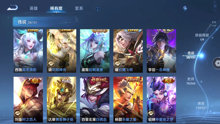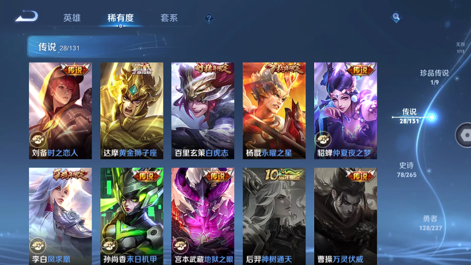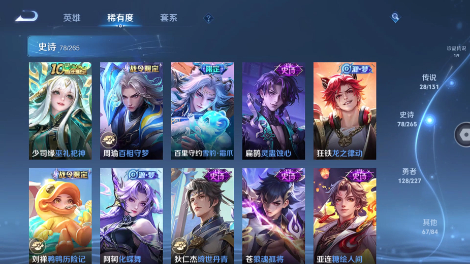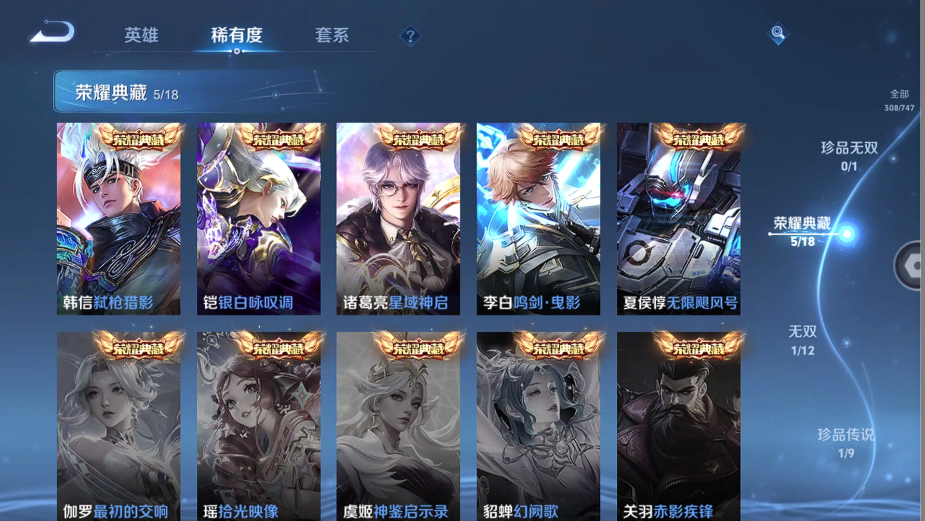 【王者荣耀】【lywz23007】珍品无双0 典藏5 无双1 珍品传说1 传说28 史诗78 英雄125 皮肤308 贵族8级 荣耀典藏:无限飓风号|银白咏叹调|鸣剑·曳影|弑呛猎影|星域神启__无双皮肤:器灵·螭龙剑__珍品传说:黑崎一护__传说皮肤:鸣野蒿|无双飞将|炽阳神光|启明星使|地狱之眼|仲夏夜之梦|黄金狮子座|刘备-时之恋人|一念神魔|云鹰飞将|游龙清影|绯月行|浮生妄|画中仙|记忆之芯|孙尚香-末日机甲|白虎志|凤求凰|怒海麟威|霜月吟|永曜之星|战鼓燎原|幻光神呛|祥瑞亨通|愿照·山河定|愿照·九州拓|云诺千山|纵目迁山__稀有限定:蔷薇恋人|神威|傲雪梅呛|李小龙|山海·玄木吟|神器·万象笔|大漠名商|地狱燃心|高山流水|古海寻踪|海滩派对|海盐诗旅|皇家上将|混沌棋|剑破天穹|江河有灵|金庭之子|黎明之约|魔术师|匿光侦查者|千军破阵|擒涛扼浪|驱傩正仪|荣光圣徽|沙漠行僧|朔风刀|探海日志|醍醐杖|天穹祈灯|玩趣恶龙|万华元夜|妄想食味|无心|五谷丰年|纤云弄巧|星界游侠|演武夺筹|疑决卦|阴阳师|游园惊梦|驭风魔法|原初追逐者|暗夜猫娘|暗隐猎兽者|暗渊魔法|缤纷独角兽|冰冠公主|冰雪圆舞曲|乘风破浪|大乔-猫狗日记|德古拉伯爵|地狱岩魂|功夫厨神|鬼剑武藏|黄金分割率|箭羽风息|节奏热浪|金属风暴|乐园奇幻夜|吕布-末日机甲|魅力维加斯|梦奇-顽趣|女仆咖啡|偶像歌手|赏金猎手|圣诞恋歌|水果甜心|水晶猎龙者|天才门将|晚萤|星夜王子|鹰眼统帅|永昼|幽灵船长|逐浪之夏|紫霞仙子|赵怀真-鹤归松栖|噬灭天穹|敬我三分|天穹之誓|修罗|曙光守护者|千年之狐|无限星赏官|舞动绿茵|特工魅影|心灵骇客|茶境仙|星界战将|谧流熔炉|器灵·浮梦炉|糖绘人间|狼魂孤将|绮世丹青|化蝶舞|原初探秘者|云中旅人|玲珑珍味|流音漫舞|访茗客|暖冬·兔眠|刘禅-鸭鸭历险记|沈梦溪-鸭鸭历险记|灵蛊蚀心|雪豹·霜爪|龙之律动|布丁狗之约|虚灵犬护|逆浪荇歌|孙策-百相守梦|周瑜-百相守梦|巫礼祀神|鹤鸣心笺__优质皮肤:尼罗河女神|一千零一夜|年年有余|埃及法老|孤猎|木偶奇遇记|熊喵少女|午夜歌剧院|露花倒影|激情绿茵|海之征途|天启骑士|碧珀绯影|秩序猎龙将|锦衣卫|冰刃幻境|森|超能战警|维京掠夺者|绯红之刃|踏雪寻梅|启蛰|战争骑士|伊势巫女|画中游|生化警戒|威尼斯狂欢|第七人偶|潮流仙人|芝加哥教父|街头旋风|绝影神呛|地府判官|荷鲁斯之眼|幸存者|赤焰之缨|福禄兄弟|隐刃|前尘|特种部队|精灵王|剑舞者|范海辛|星航指挥官|龙域领主|花间舞|魇语军师|极冰防御线|花见巫女|东海龙王|蔷薇王座|灼热之刃|精准探案法|圣殿之光|帝国元帅|霓裳曲|阿摩司公爵|精灵公主|修竹墨客|功夫炙烤|聚星闪耀|潮玩探月行|秘密基地|次元突破|鲨炮海盗猫|野性能量|丁香结|虹云星官|守护之力|坚韧之力|幻乐之宴|功夫老勺|命运角斗场|海滩丽影|阿尔法小队|兔女郎|死亡骑士|黄金武士|少女阿狸|天使之翼|玩偶对对碰|红桃皇后|忍·炎影|爱心护理|街头霸王|教廷特使|金色潮汐|漠中幻影|时空谍影|破局者|王牌新星|零食大作战|牛运亨通|危途狂花|胡桃狂想曲|紫罗兰之誓|重装意志|次元傲视|拳王|救世之瞳|白色死神|程咬金-星际陆战队|大发明家|哥特玫瑰|魅影绮裳|金福满堂|星梦巡礼|灵卦秘语|爆裂喵拳|景韶洛都|浪漫序章|缤纷绘卷|掌控之力|铁骨偃魂|纽约教父|龙腾万里|霸王丸|乱世虎臣|敏锐之力|西施-归虚梦演|孙悟空-西部大镖客|牛魔-西部大镖客|鲁班大师-归虚梦演|龙舞盛年|汉昭烈帝|乓乓大师|五福同心|盾山-圆桌骑士|蒙犽-归虚梦演|万事如意|曜-归虚梦演|太乙真人-圆桌骑士|沉稳之力|程咬金-群星魔术团|完美运算|化身博士|花好人间|熔金海岸|万象初新|苍林狼骑|蔚蓝守将|劲辣红锅|特工战影|炽热元素使|妄想特派|秘证寻踪|春野闲踪|灵野札记|玫蓝誓约|命运加冕|死霸装|无双福将|锦麟游梦|戏梦巡演|落日弦歌|逐霄之志|极光幻客__贵族等级:贵族8级__王者段位:非凡王者高质量捡漏5典藏1无双1热门珍品多限定