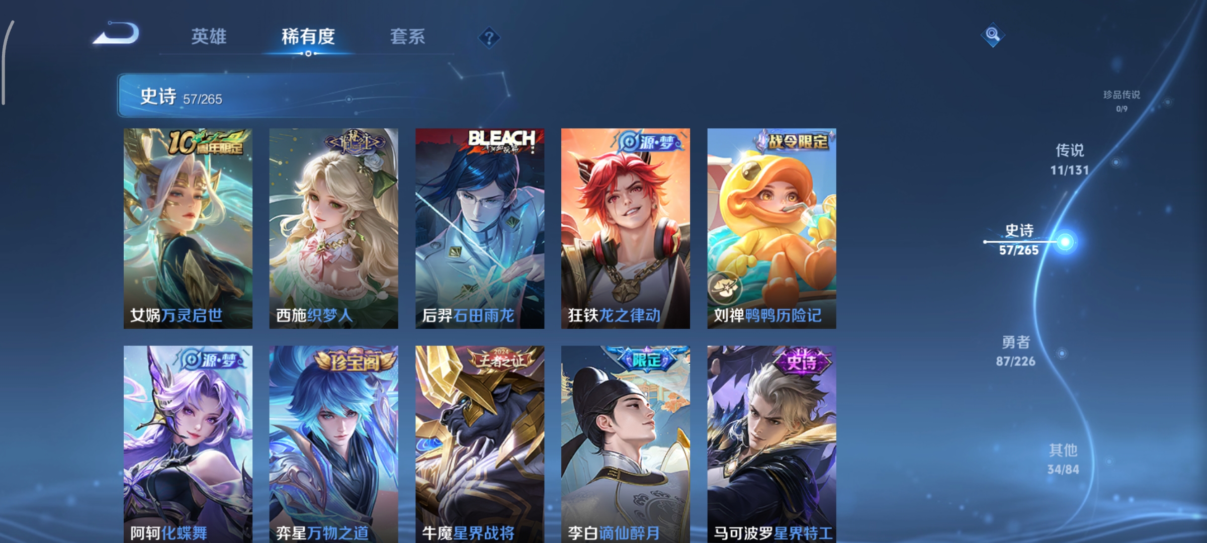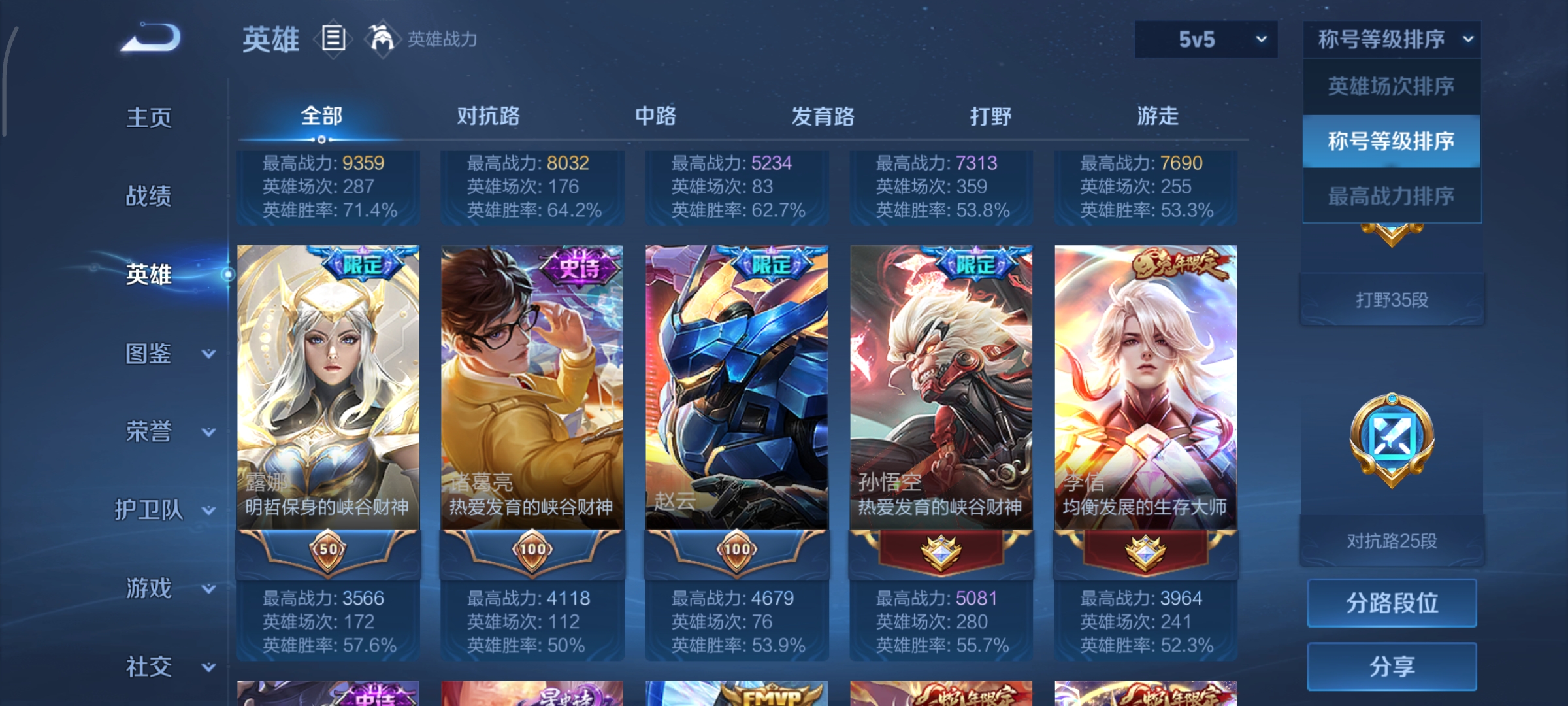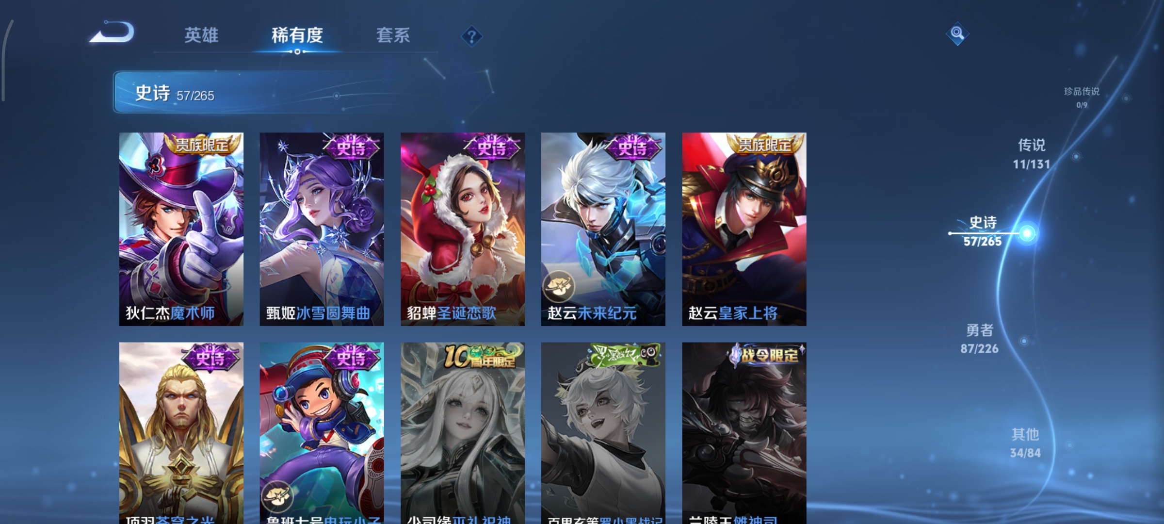 125英雄-190皮肤-打野35段,天鹅之梦,11传说,炽阳神光无双飞将山海·炽霜斩启示之音齐天大圣地狱之眼鸣野蒿幻光神呛愿照·山河定愿照·九州拓神树通天,编号:sxtxo15
