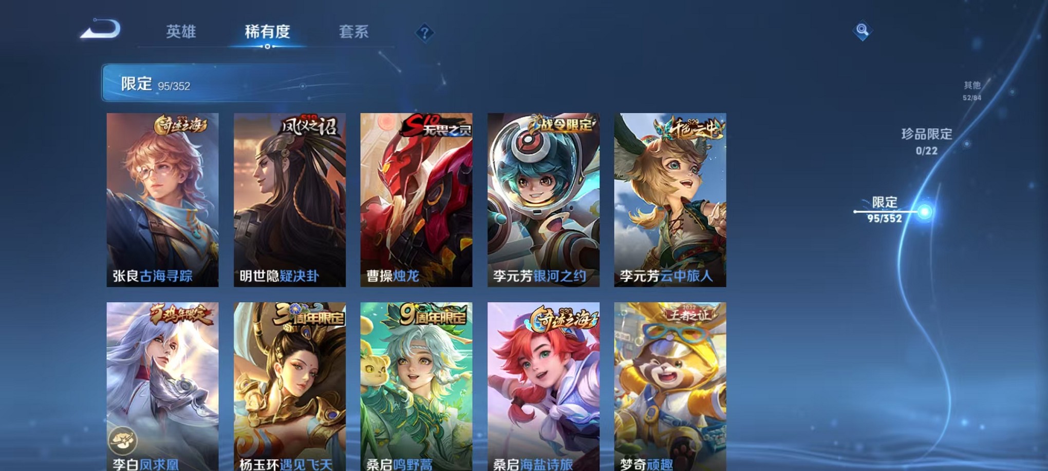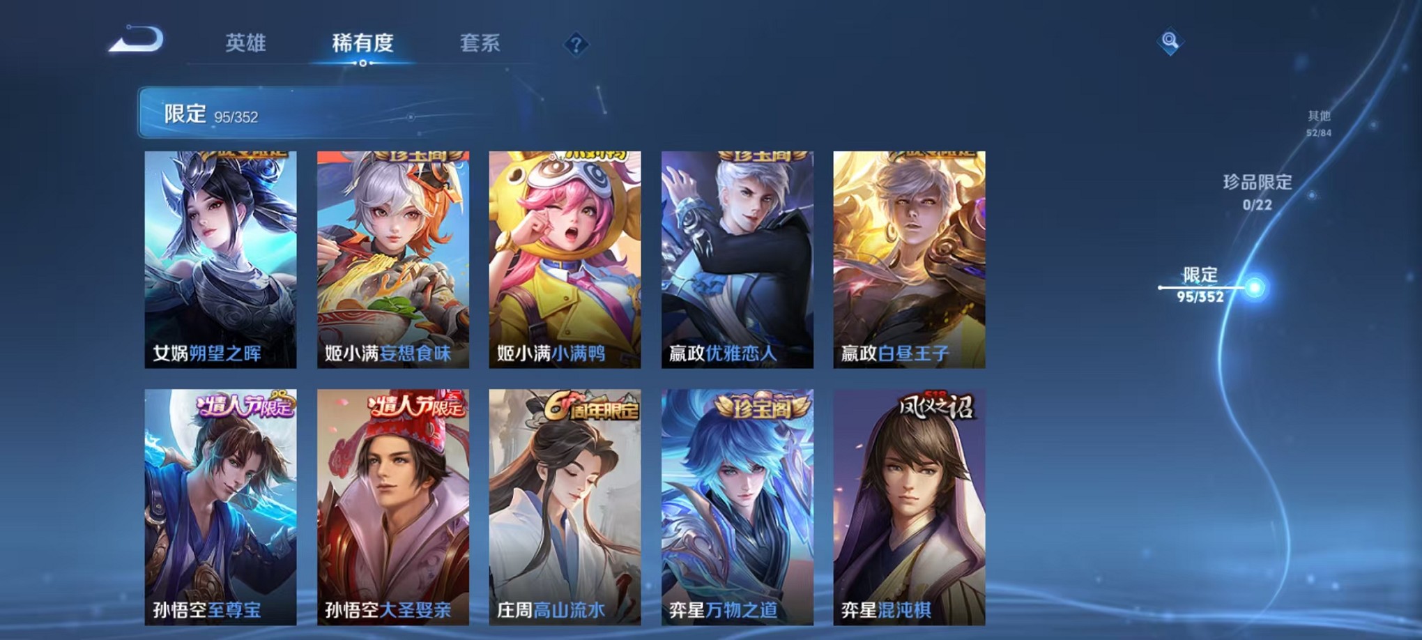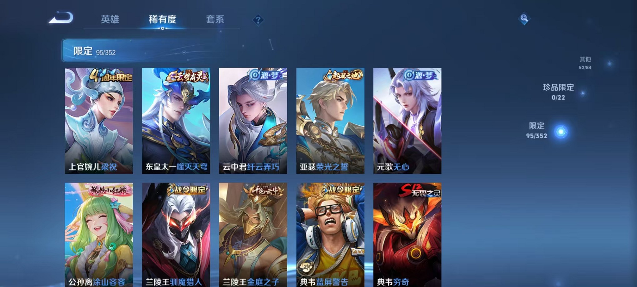 126英雄-268皮肤-【268皮肤1典藏1星元5传说凤求凰至尊宝 可秒换绑】安卓q-126英雄【1水晶】弑呛猎影【1星元】幽冥之眼【5传说】凤求凰 鸣野蒿 地狱之眼 一念神魔 时雨天司【73史诗】荣光圣徽 万灵启世 飞衡 龙之律动 大圣娶亲 至尊宝 百相守梦 万物之道 涂山容容 顽趣 山海·玄木吟 青焰无极 魅语 幽灵船长 繁星吟游 功夫厨神 女仆咖啡 魅力维加斯 魔术师 鹰眼统帅 蓝屏警告 圣诞恋