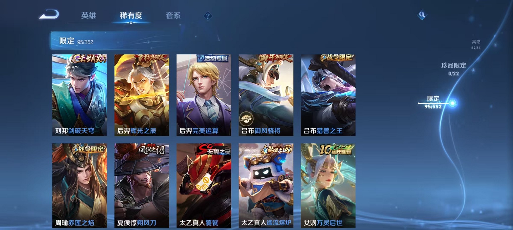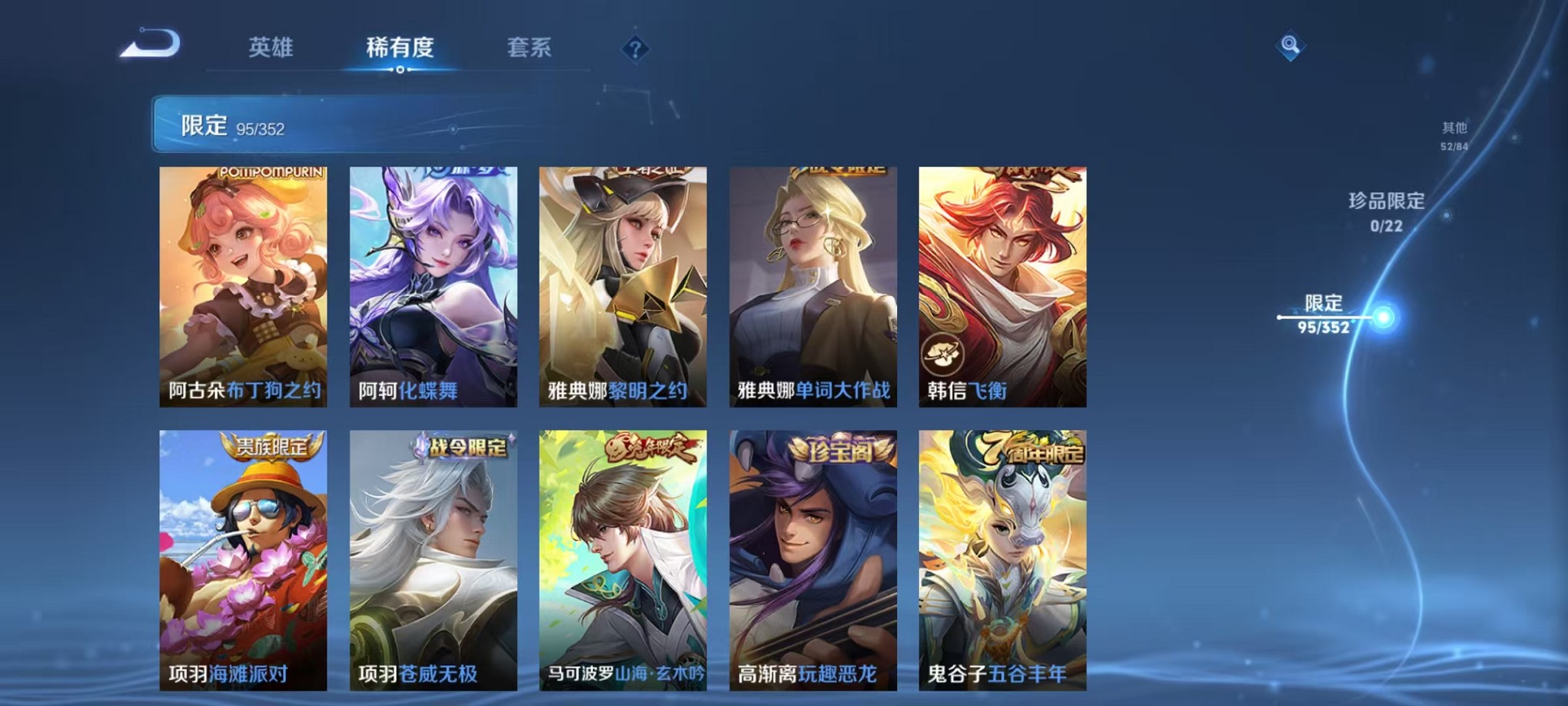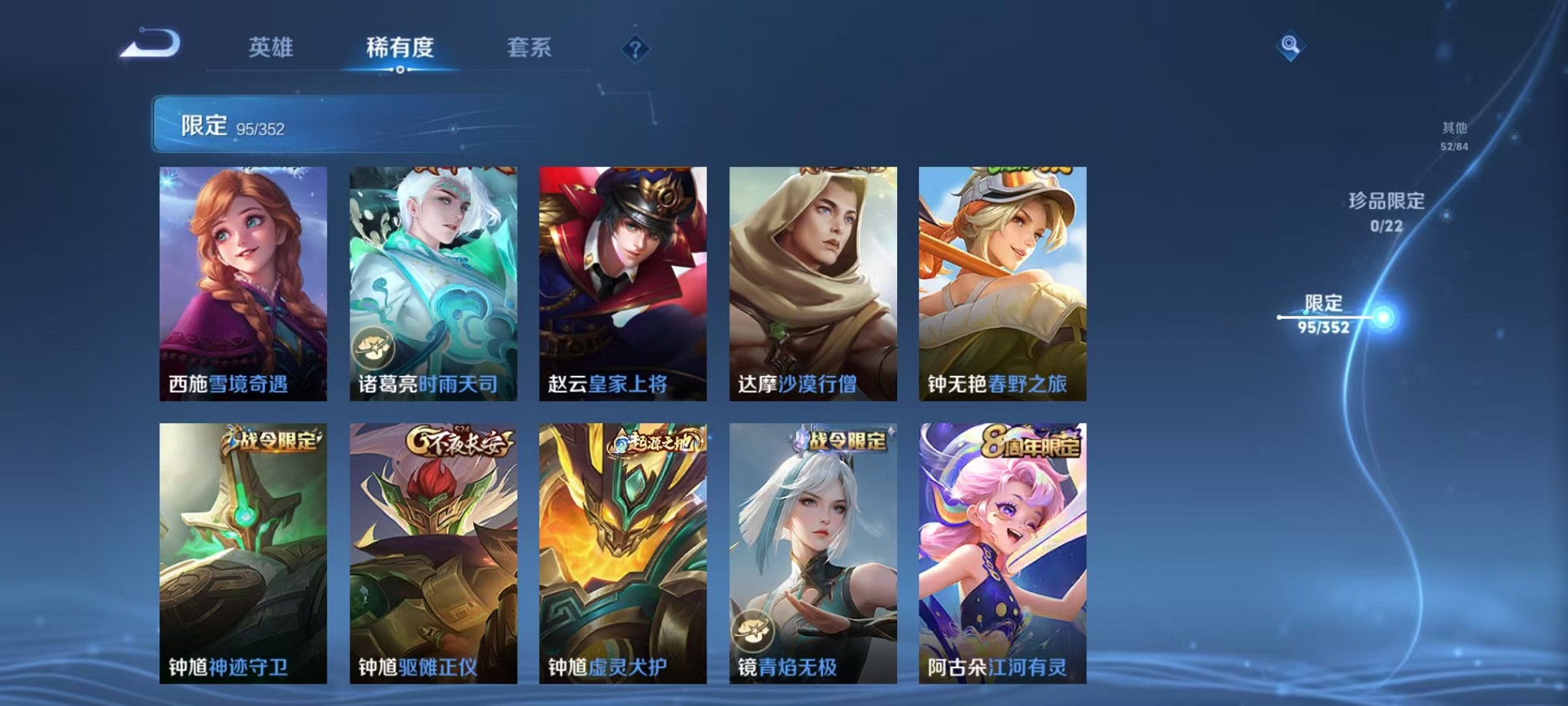 126英雄-268皮肤-【268皮肤1典藏1星元5传说凤求凰至尊宝 可秒换绑】安卓q-126英雄【1水晶】弑呛猎影【1星元】幽冥之眼【5传说】凤求凰 鸣野蒿 地狱之眼 一念神魔 时雨天司【73史诗】荣光圣徽 万灵启世 飞衡 龙之律动 大圣娶亲 至尊宝 百相守梦 万物之道 涂山容容 顽趣 山海·玄木吟 青焰无极 魅语 幽灵船长 繁星吟游 功夫厨神 女仆咖啡 魅力维加斯 魔术师 鹰眼统帅 蓝屏警告 圣诞恋