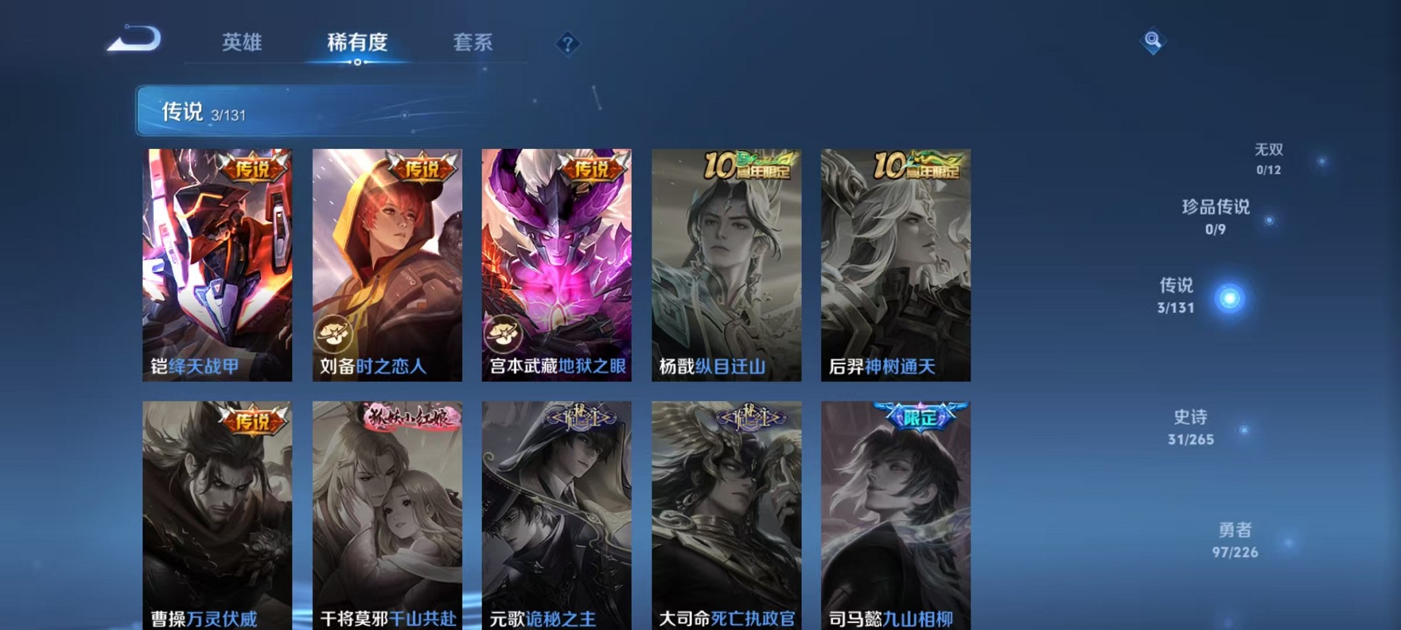 125英雄-182皮肤-可二次【182皮肤3传说 可秒换绑】安卓qq-125英雄-182皮肤【传说皮肤】地狱之眼 绛天战甲 时之恋人【史诗皮肤】荣光圣徽 万灵启世 龙之律动 百相守梦 奇幻香踪 电玩·爆裂旋风 魅语 魅力维加斯 魔术师 鹰眼统帅 鬼剑武藏 修罗 千年之狐 德古拉伯爵 紫霞仙子 圣诞狂欢 龙骑士 梁祝 水果甜心 蔷薇恋人 孙行者 偶像歌手 冰冠公主 摇滚巨星 乱世虎臣 皇家上将 冰雪圆舞