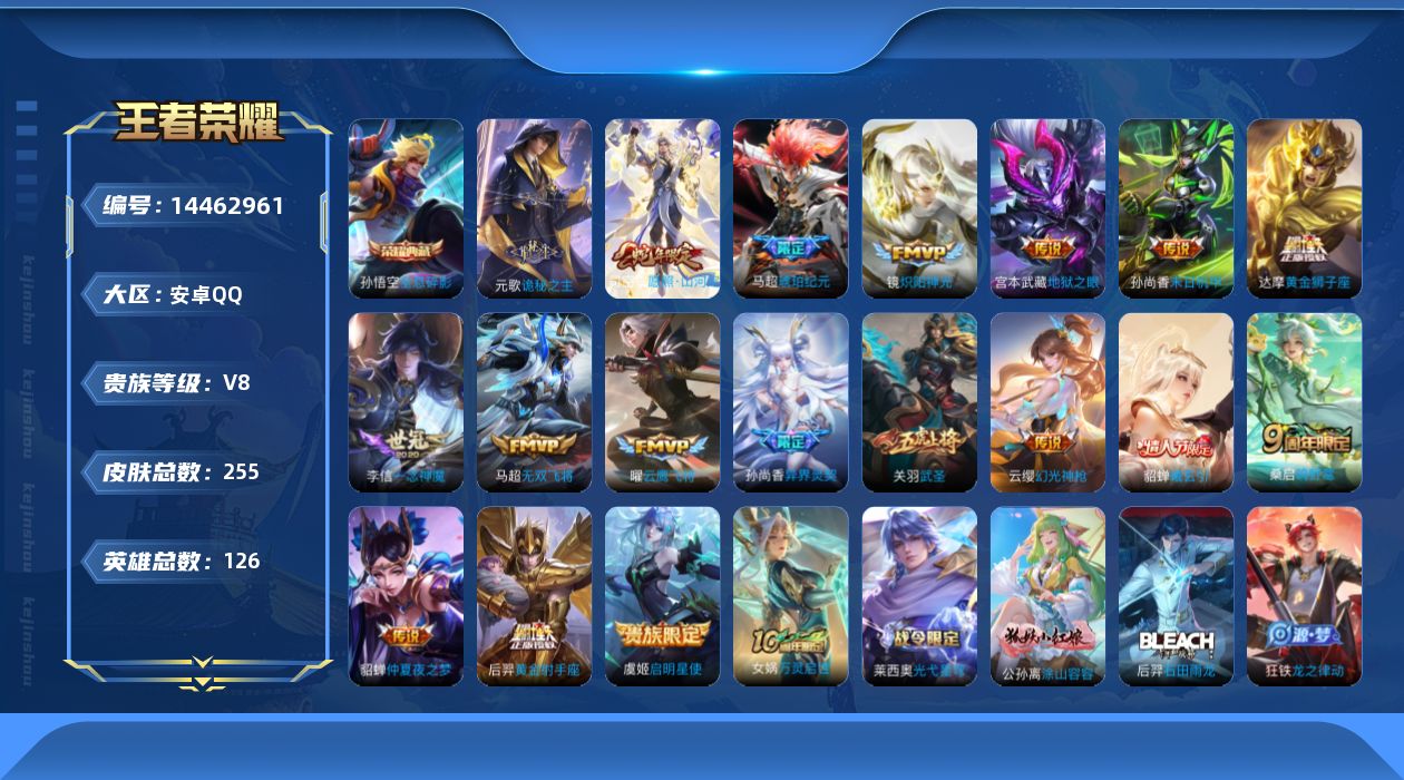 [14462961]v8 1典藏 19传说 126英雄 255皮肤 可修改实名 女号 【英雄全皮】:司空震全皮鬼谷子全皮 【稀有英雄】:大司命嬴政始皇帝韩信韩跳跳夏洛特夏师傅艾琳橘右京橘子娜可露露鸟人不知火舞赵云金蝉唐僧戈娅 【荣耀水晶】:全息碎影猴子典藏 【传说皮】:琥珀纪元马超貂蝉曦玄引神树通天诡秘之主幻光神呛黄金狮子座黄金射手座仲夏夜之梦大飞蛾地狱之眼末日机甲-孙尚香绿蚂蚱一念神魔云鹰飞将小将军炽阳神光无双飞将 【珍宝阁皮】:妄想食味优雅恋人 【赛季/战令皮】:噬灭天穹s37古海寻踪s33海盐诗旅s30擒涛扼浪s31探海日志s32顽趣-梦奇地狱燃心剑破天穹s35天穹祈灯s34御霄s14御銮s16朔风刀s17混沌棋s18疑决卦s19醍醐杖s20原初探秘者s21万华元夜s22演武夺筹s23驱傩正仪s24千军破阵s25神迹守卫-钟馗狮舞东方赤莲之焰驯魔猎人星空之诺银河之约夺宝奇兵迷踪丽影西部大镖客-猪八戒暗影游猎游乐娃子潮玩骑士王云间偶戏神迹守卫-墨子航海奇遇记圣弓游侠真爱魔法火炮绅士沙漠行僧s26幻夜卜梦金庭之子s27电玩高手电玩铁子午后时光大漠名商s28云中旅人s29 【史诗皮】:巫礼祀神器灵·浮梦炉化蝶舞龙之律动乘龙·聚宝船安琪拉年限石田雨龙星界战将涂山容容光弋星穹万灵启世紫霞仙子苍穹之光电玩小子小书包黄金分割率江河有灵高渐离燃音魔法蒙恬荣光圣徽龙骑士小龙虾冰冠公主偶像歌手晚萤无限星赏官末日机甲-吕布猫狗日记-孙策猫狗日记-大乔修罗女仆咖啡摇滚巨星水果甜心天才门将心灵骇客功夫厨神德古拉伯爵暗隐猎兽者幽灵船长鬼剑武藏心灵战警天秀·启明舞动绿茵纤云弄巧缤纷独角兽逐浪之夏月团寄思水晶猎龙者曙光守护者箭羽风息金属风暴原初追逐者圣诞恋歌鹰眼统帅魅力维加斯黎明之约无心未来纪元-赵云 【限定皮】:愿照·山河定司空震年限鸣野蒿异界灵契白毛香傲雪梅呛白鹤梁神女遇见飞天五谷丰年武圣梁祝烈魂