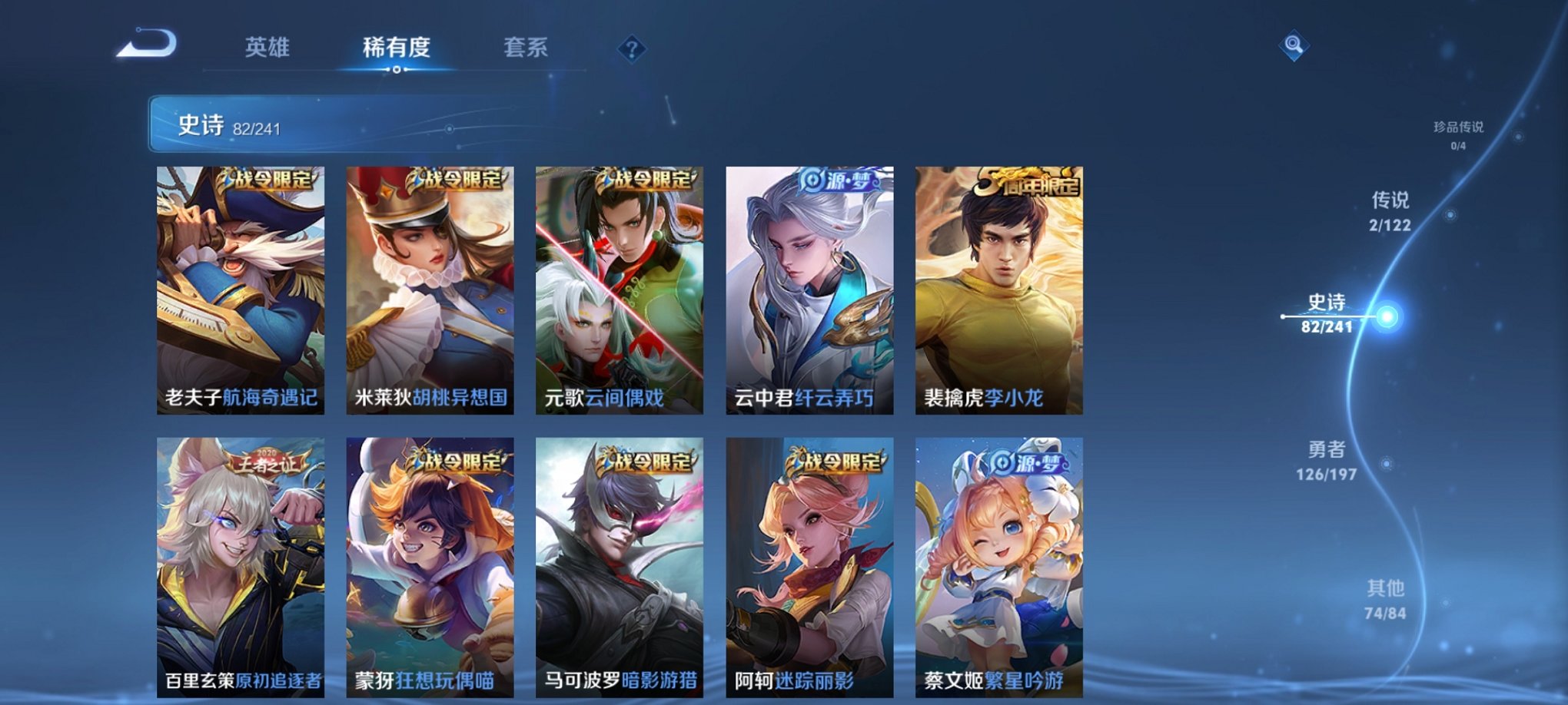 125英雄-297皮肤-【297皮肤2水晶3传说 秒换绑不用等】安卓qq-125英雄-297皮肤【2水晶】 全息碎影 星空梦想【传说皮肤】神树通天 鸣野蒿 胖达荣荣【史诗皮肤】乘龙·聚宝船 星界战将 燃音魔法 江河有灵 地狱燃心 天穹祈灯 天穹之誓 逆浪荇歌 百相守梦 星界游侠 顽趣 蔬乡物语 完美运算 舞动绿茵 幽灵船长 繁星吟游 拒霜思 功夫厨神 女仆咖啡 魅力维加斯 猫狗日记 魔术师 鹰眼统帅