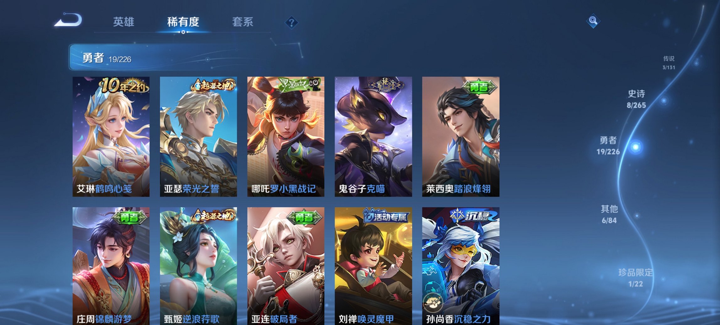 40英雄-38皮肤-【1无双1水晶3传说 秒换绑不用等】安卓qq-40英雄-38皮肤【1水晶】 鸣剑·曳影【无双皮肤】天机白泽【传说皮肤】神树通天 千山共赴 久胜战神【史诗皮肤】逆浪荇歌 魅力维加斯 鹰眼统帅 鬼剑武藏 天才门将 猫狗日记 皇家上将 节奏热浪【勇者皮肤】破局者 锦麟游梦 克喵 踏浪烽翎 逆浪荇歌 街头霸王 兔女郎 红桃皇后 沉稳之力 海滩派对 死亡骑士 忍·炎影 唤灵魔甲 玩偶对对