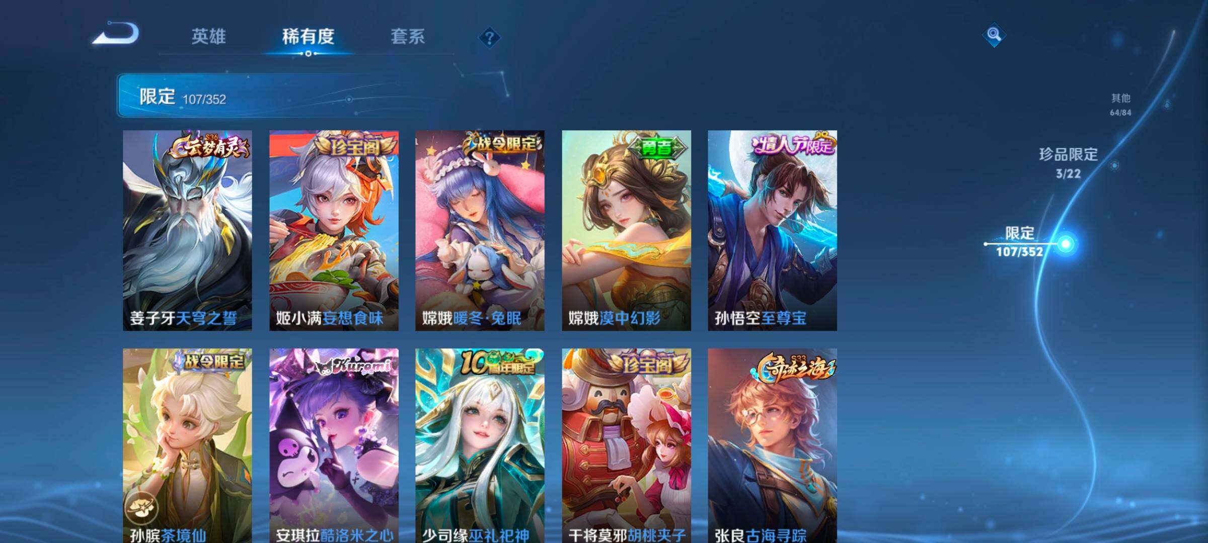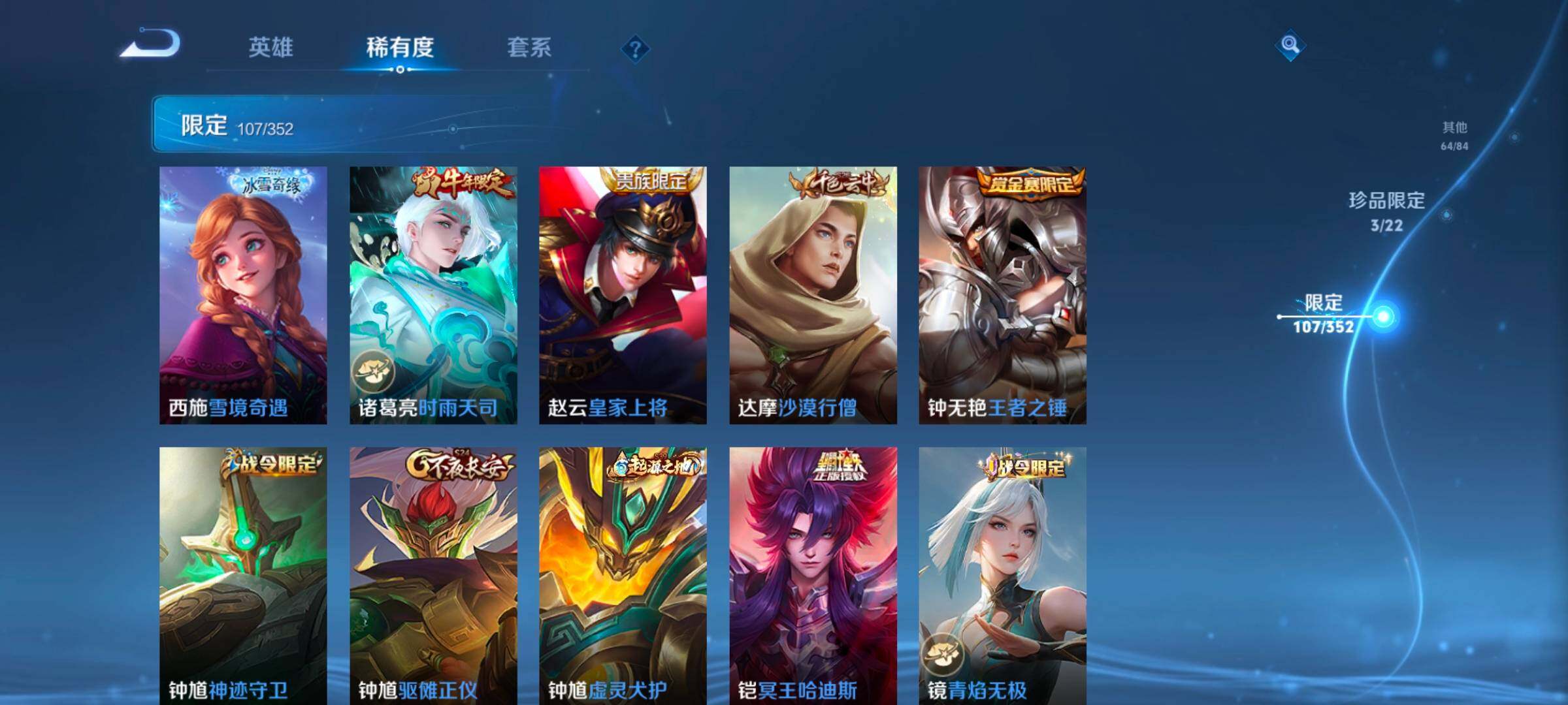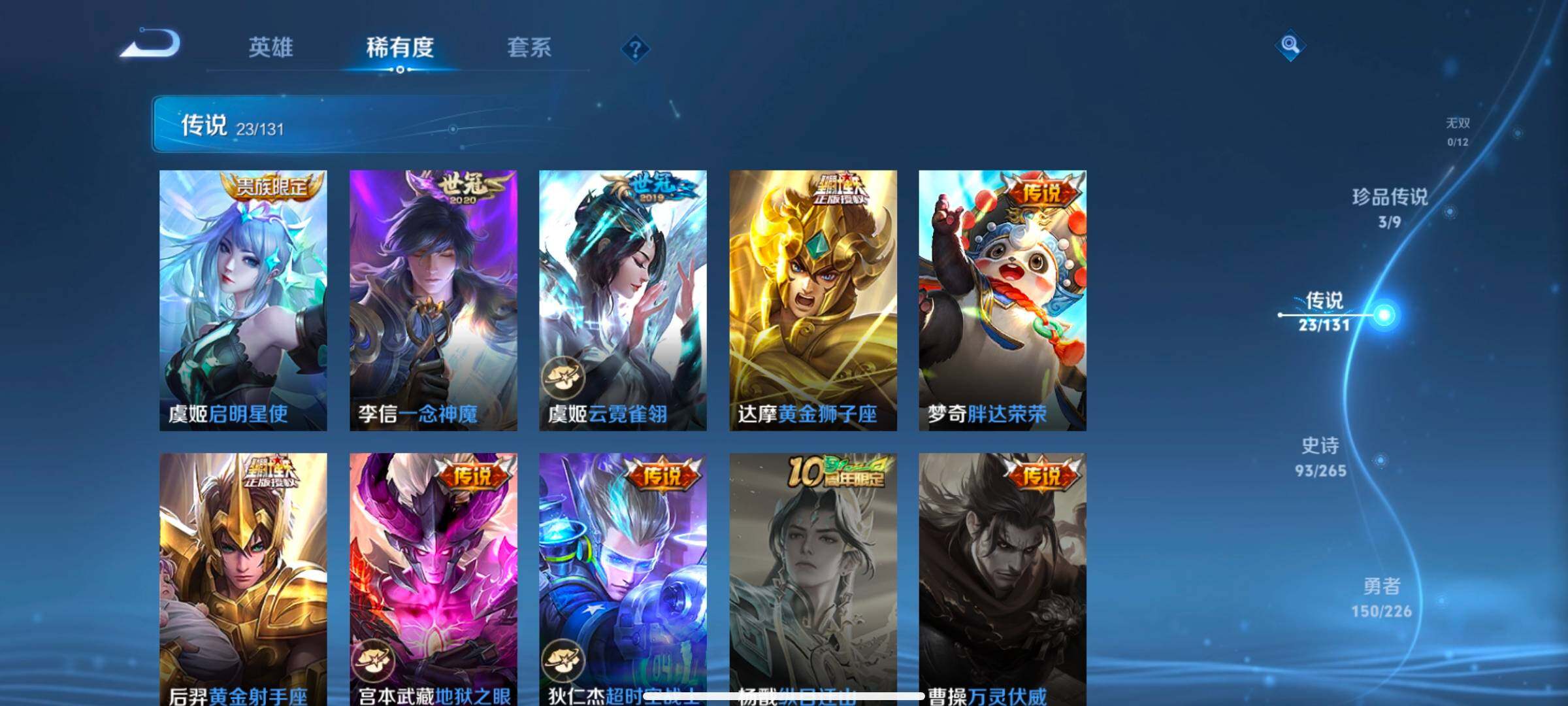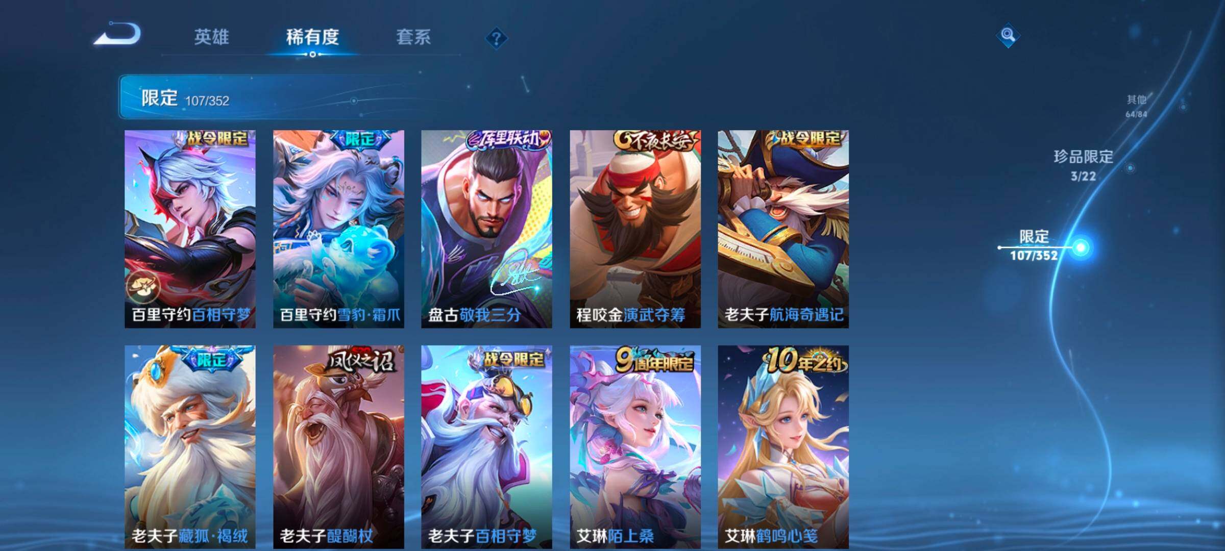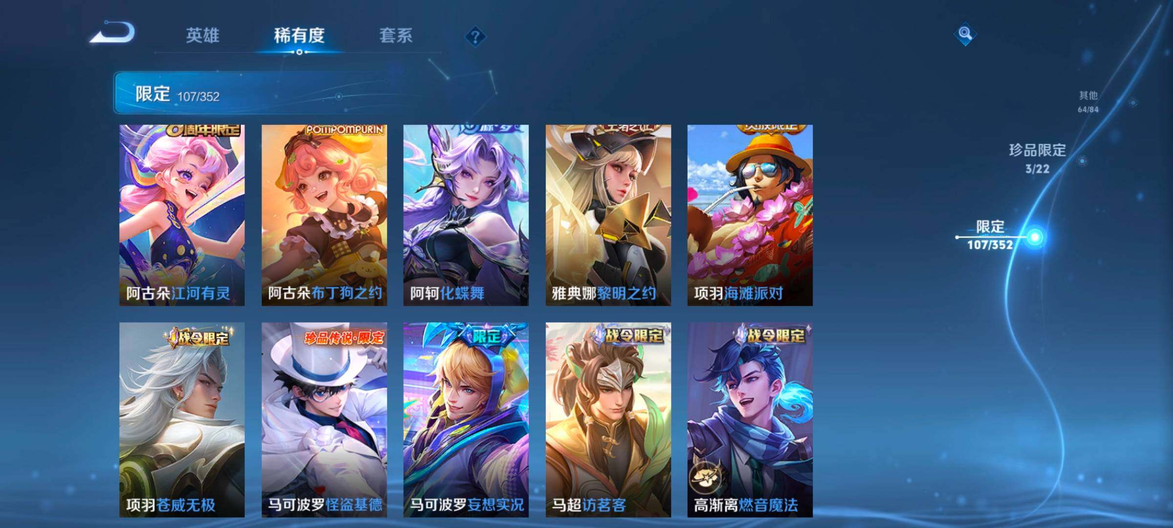 127英雄-334皮肤-账号亮点:23按键 铠银白咏叹调 马可波罗怪盗基德,瑶大耳狗之梦,安琪拉酷洛米之心 后羿神树通天,裴擒虎祥瑞亨通,桑启鸣野蒿,夏侯惇霜北刀,铠冥王哈迪斯,墨子黄金天蝎座,澜逐花归海,马可波罗妄想实况,吕布怒海麟威,李白诗剑行,后羿无尽星芒,西施游龙清影,小乔音你心动,诸葛亮时雨天司,镜炽阳神光,虞姬启明星使,李信一念神魔,虞姬云霓雀翎,达摩黄金狮子座,梦奇胖达荣荣,后羿黄金射手座,宫本武藏地狱