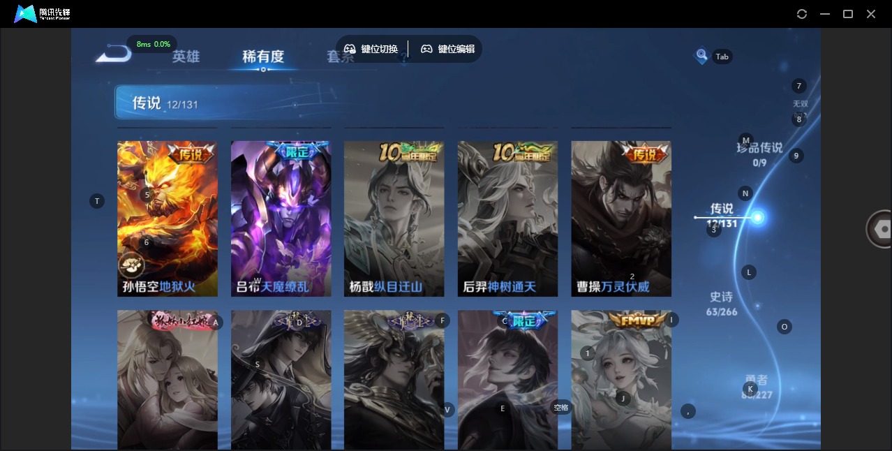v8 12传说 127英雄 212皮肤 典藏英雄武则天 可修改实名 【英雄全皮】:敖隐全皮影全皮 【稀有英雄】:敖隐小龙人大司命嬴政始皇帝韩信韩跳跳夏洛特夏师傅艾琳橘右京橘子娜可露露鸟人不知火舞赵云金蝉唐僧戈娅 【传说皮】:幻光神呛黄金射手座