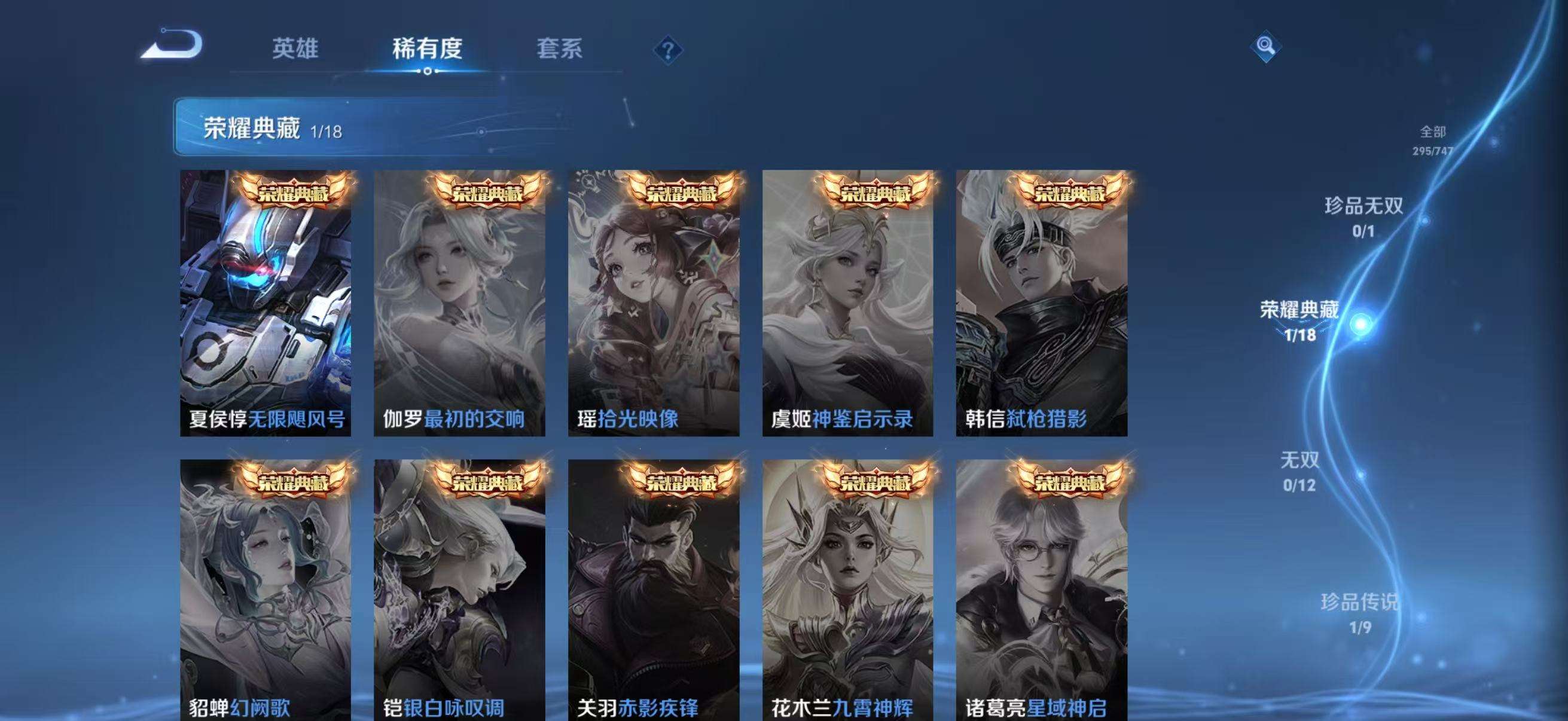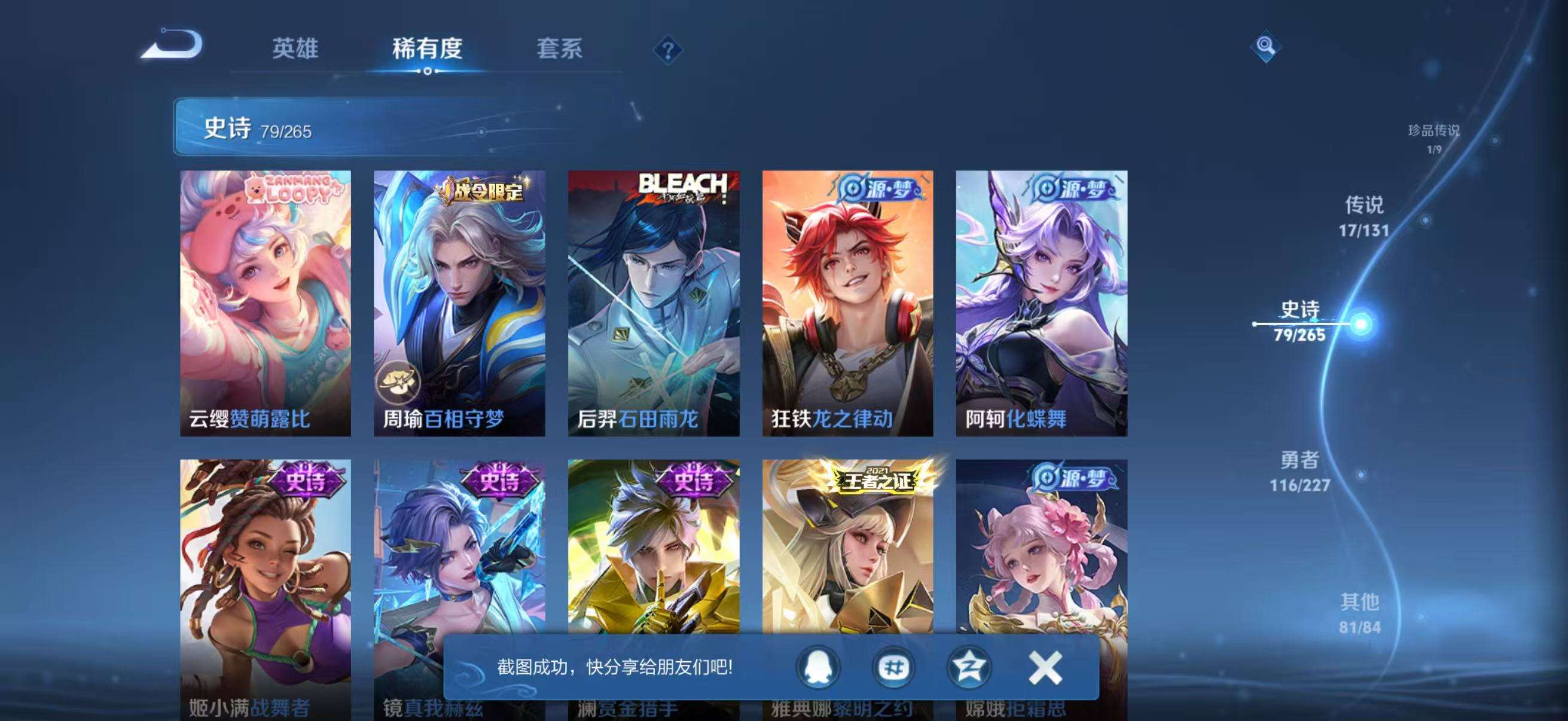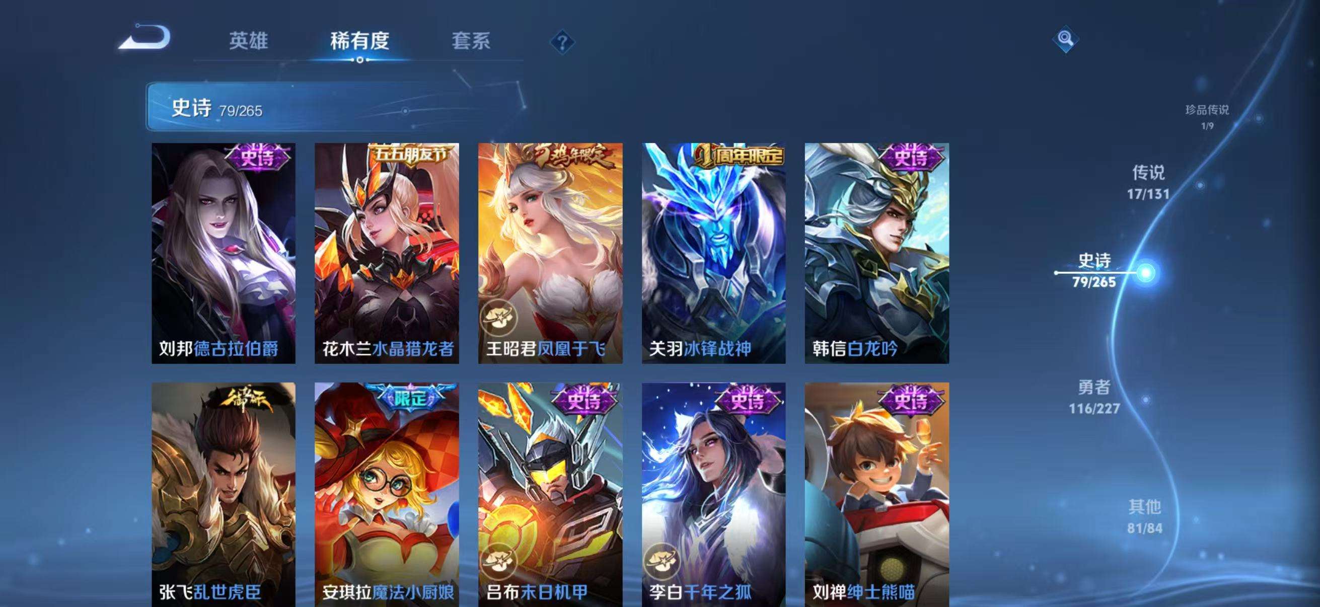 124英雄-295皮肤-呀呀34:苹果q-v8-尊贵铂金iv-124英雄-295皮肤-1典藏-0无双-1珍品传说-17传说-78史诗 1皇冠q(和平s1赛事服) 【稀有英雄】 嬴政 不知火舞 橘右京 夏洛特 娜可露露 韩信 艾琳 赵云 【珍品传说】 朽木白哉 【典藏皮肤】 无限飓风号 【传说皮肤】 启明星使 云霓雀翎 白虎志 地狱火 云鹰飞将 凤求凰 猫影幻舞 炽阳神光 黄金射手座 黄金狮