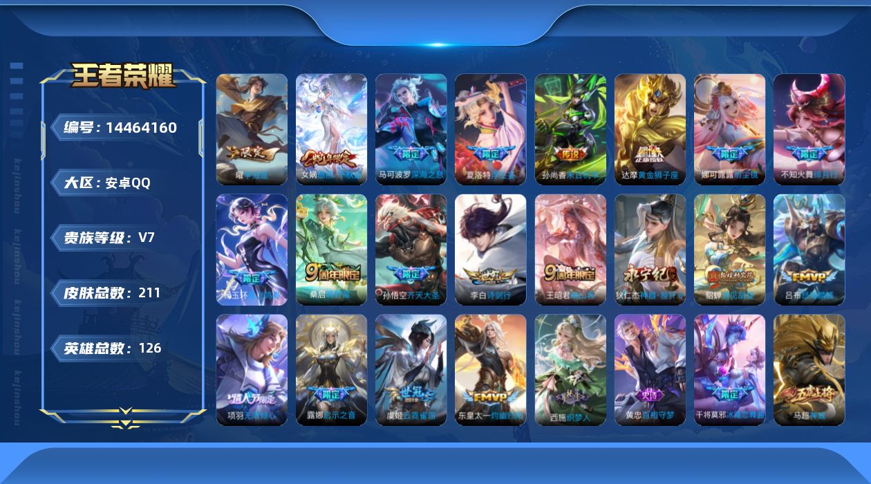 [14464160]v7 20传说 126英雄 211皮肤 可修改实名 【英雄全皮】:影全皮 【稀有英雄】:大司命嬴政始皇帝韩信韩跳跳夏洛特夏师傅艾琳橘右京橘子娜可露露鸟人不知火舞赵云金蝉唐僧戈娅 【传说皮】:星之鸣奏李遇见胡旋黄金狮子座末日机甲-孙尚香绿蚂蚱云霓雀翎神器·狴犴令浮生妄灼幽烈阳 【珍宝阁皮】:优雅恋人女武神 【赛季/战令皮】:噬灭天穹s37古海寻踪s33星界游侠海盐诗旅s30擒涛扼浪s31探海日志s32顽趣-梦奇剑破天穹s35天穹祈灯s34天穹之誓s36暖冬·兔眠狰s8烛龙s10朔风刀s17疑决卦s19原初探秘者s21万华元夜s22演武夺筹s23驱傩正仪s24千军破阵s25朔望之晖单词大作战星际陆战队-达摩胡桃异想国圣弓游侠真爱魔法沙漠行僧s26金庭之子s27大漠名商s28云中旅人s29 【史诗皮】:百相守梦-黄忠织梦人上官婉儿群星魔术团蔬乡物语鲁班七号特工魅影百解令蒙犽蒙恬荣光圣徽龙骑士小龙虾冰冠公主魅语电玩·爆裂旋风匿光破解者猫狗日记-孙策时之恋人-孙尚香节奏热浪女仆咖啡水果甜心绅士熊喵天才门将星夜王子时之奇旅-安琪拉德古拉伯爵暗隐猎兽者幽灵船长鬼剑武藏暗渊魔法心灵战警舞动绿茵纤云弄巧拒霜思乘风破浪逐浪之夏曙光守护者箭羽风息金属风暴圣诞狂欢圣诞恋歌鹰眼统帅奇遇舞章千筹问战无心 【限定皮】:愿照·千秋盛女娲年限映山客鸣野蒿前尘镜绯月行白晶晶神威电光马子无限倾心-项羽遇见飞天高山流水诗剑行齐天大圣怒海麟威五谷丰年梁祝烈魂天狼溯光者李小龙如梦令-嫦娥默契交锋-花木兰青春决赛季冰霜恋舞曲匿光追影者玉兔公主启示之音深海之息深海大菠萝神器·万象笔 【普通皮】:径山谋武魅影绮裳铁骨偃魂谧流熔炉敬我三分刘邦虎啸剑宗大乔绒语心约熔金海岸暗都幽影蔬乡物语李元芳功夫炙烤苍林狼骑死霸装荣光之誓锦麟游梦踏浪烽翎克喵虚灵犬护景韶洛都布丁狗之约危途狂花潮玩造梦师太极少年零食大作战妄