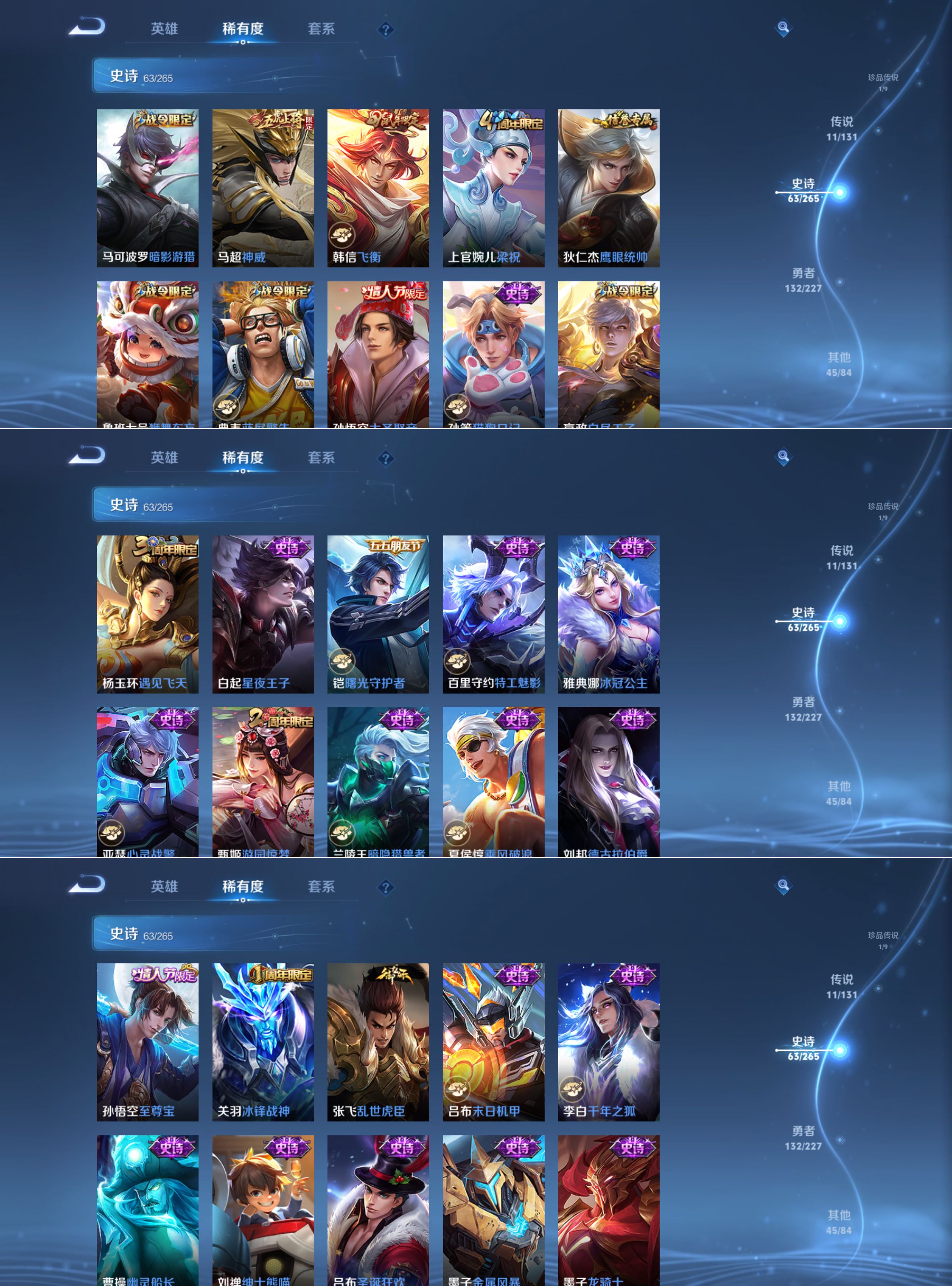 124英雄-253皮肤-【v7 典藏1 传说12 1珍品】安卓q-253皮肤-124英雄 【珍品传说】 黑崎一护 【典藏皮肤】 鸣剑·曳影 【传说皮肤】 鸣野蒿 灵蛊蚀心 乘龙·铭钟鼎 纵目迁山 神树通天 山海·炽霜斩 黄金狮子座 武圣 凤求凰 时之恋人 零号·赤焰 云鹰飞将 【史诗皮肤】 星界战将 冰锋战神 飞衡 电玩小子 御风骁将 神威 大圣娶亲 至尊宝 虎魄 谪仙醉月 怒海争锋 敬我三分 聚星闪