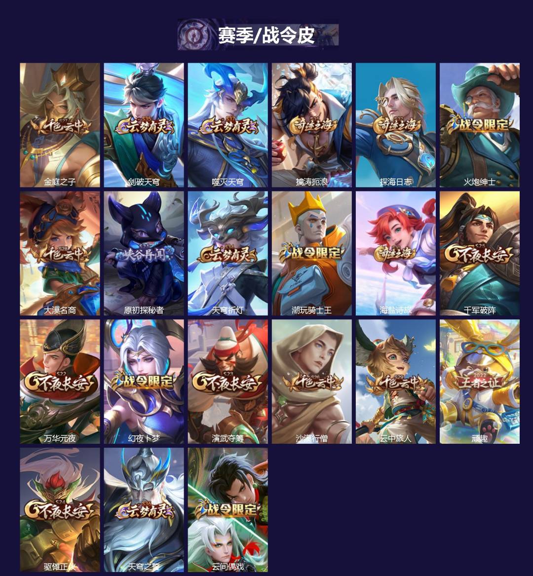 113英雄-108皮肤-[]v3 1典藏 4传说 113英雄 108皮肤 可修改实名 【稀有英雄】:嬴政始皇帝韩信韩跳跳艾琳娜可露露鸟人不知火舞赵云金蝉唐僧戈娅 【荣耀水晶】:幻阙歌貂蝉典藏 【传说皮】:末日机甲-孙尚香绿蚂蚱久胜战神 【珍宝阁皮】:优雅恋人 【赛季