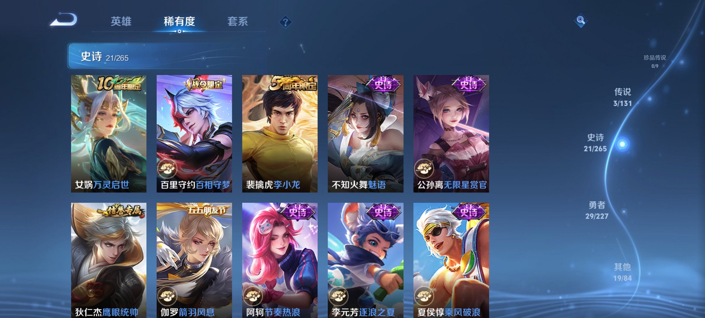 97英雄-73皮肤-可二次【q59级 1水晶3传说 秒换绑不用等】安卓qq-97英雄-73皮肤【1水晶】 杀手不太冷【传说皮肤】神树通天 鸣野蒿 猫影幻舞【史诗皮肤】天穹祈灯 百相守梦 魅语 幽灵船长 女仆咖啡 魅力维加斯 鹰眼统帅 圣诞恋歌 箭羽风息 无限星赏官 千年之狐 逐浪之夏 紫霞仙子 李小龙 水果甜心 乘风破浪 优雅恋人 皇家上将 冰雪圆舞曲 未来纪元 节奏热浪【勇者皮肤】古海寻踪 龙舞