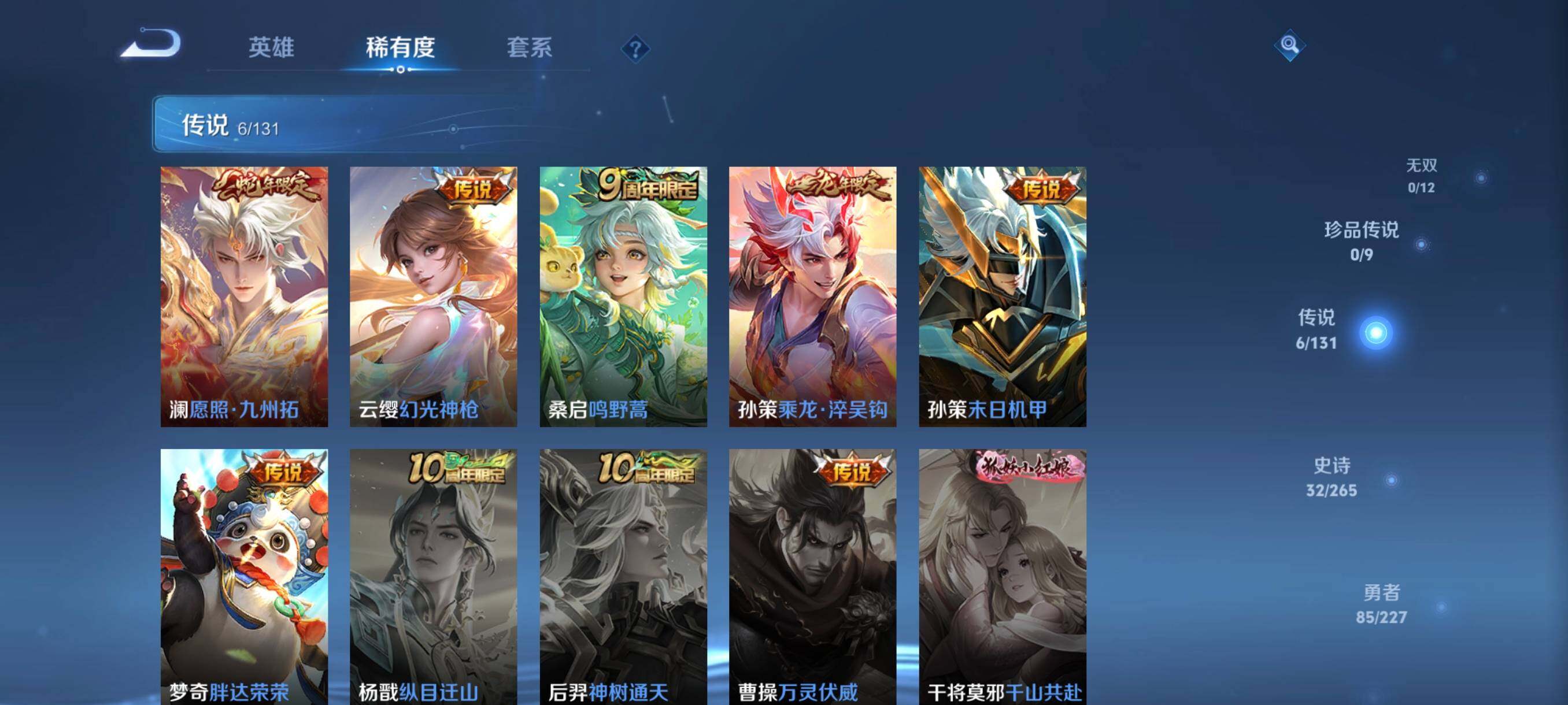 126英雄-170皮肤-账号亮点:澜愿照九州拓,云缨幻光神呛,桑启鸣野蒿,孙策乘龙淬吴钩,孙策末日机甲,梦奇胖达荣荣217 【英雄全皮】:孙权全皮,影全皮 【传说皮肤】:澜愿照九州拓,云缨幻光神呛,桑启鸣野蒿,孙策乘龙淬吴钩,孙策末日机甲,梦奇胖达荣荣 【限定皮肤】:蒙犽顽岩魄,蔡文姬夏日便利店,虞姬夏日便利店,姜子牙天穹之誓,狄仁杰阴阳师,赵云皇家上将,狄仁杰魔术师,达摩沙漠行僧,项羽海滩派对,鬼谷子五谷丰年,沈梦
