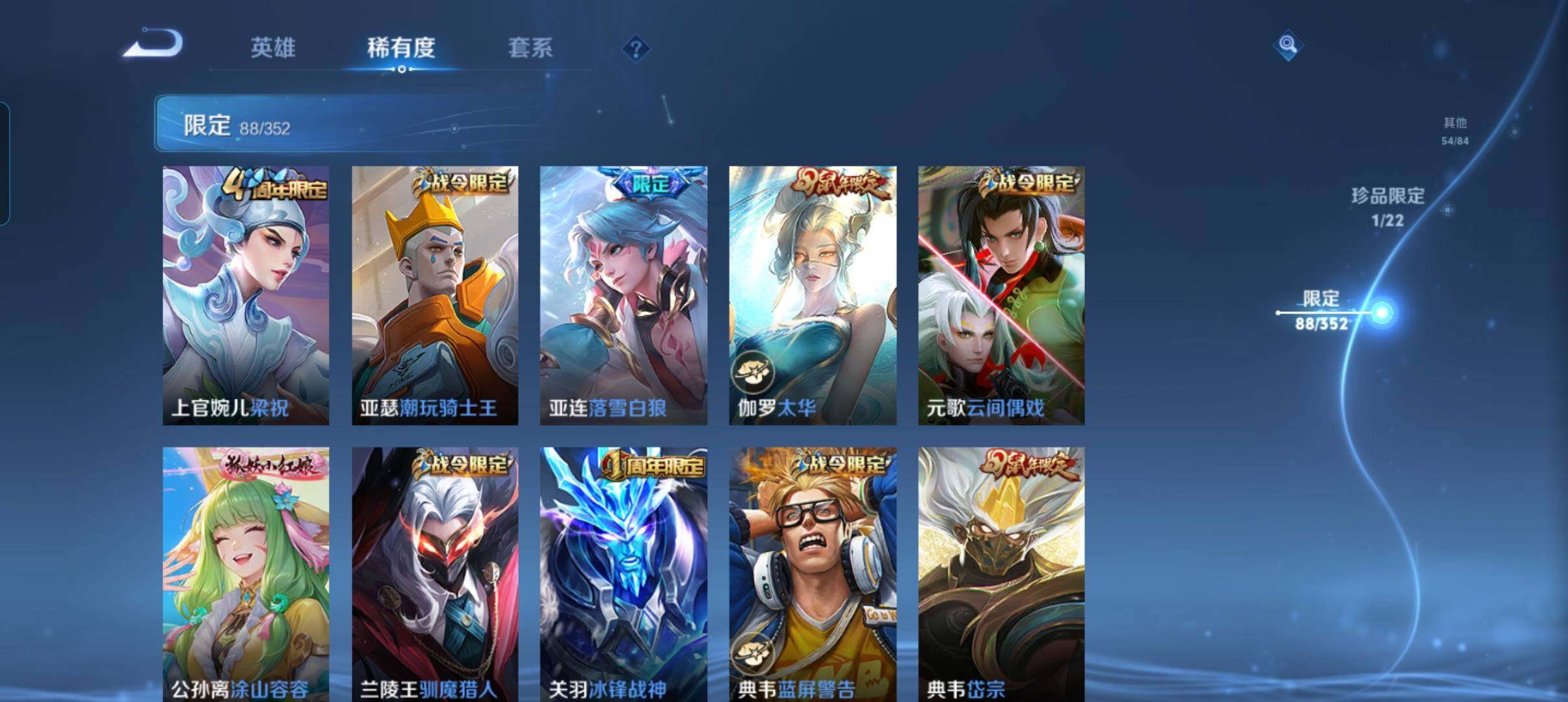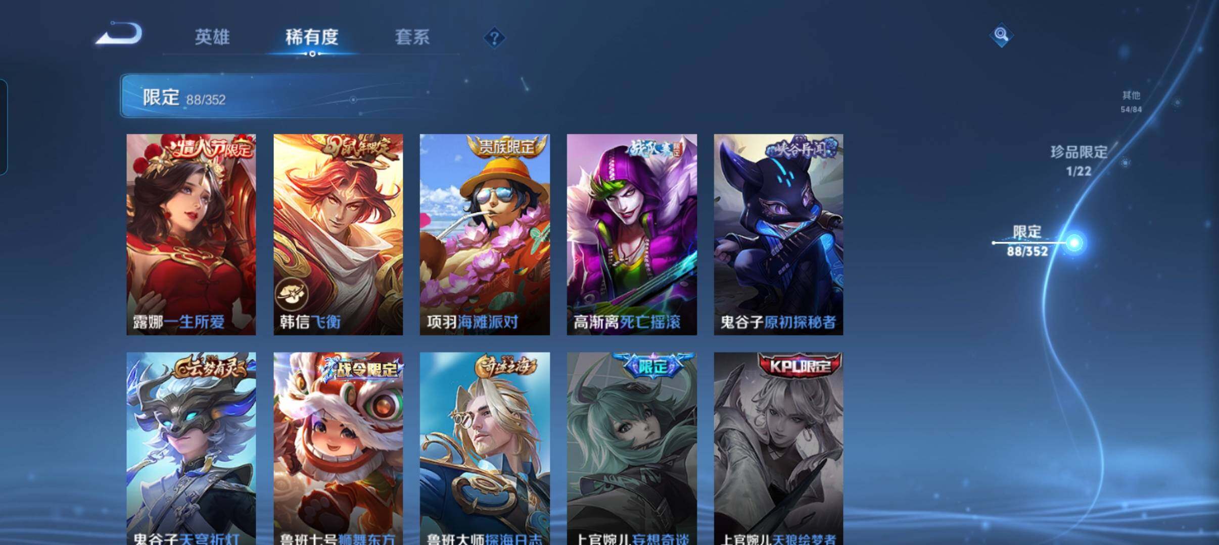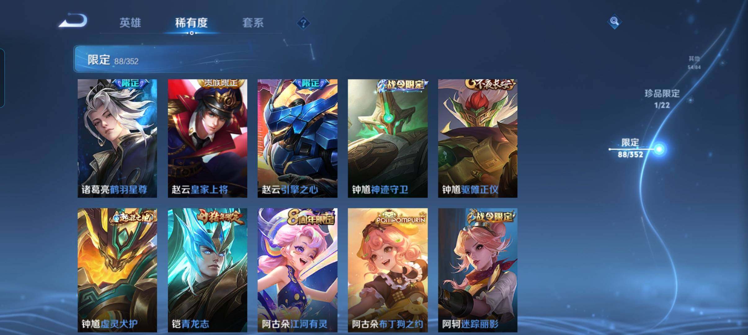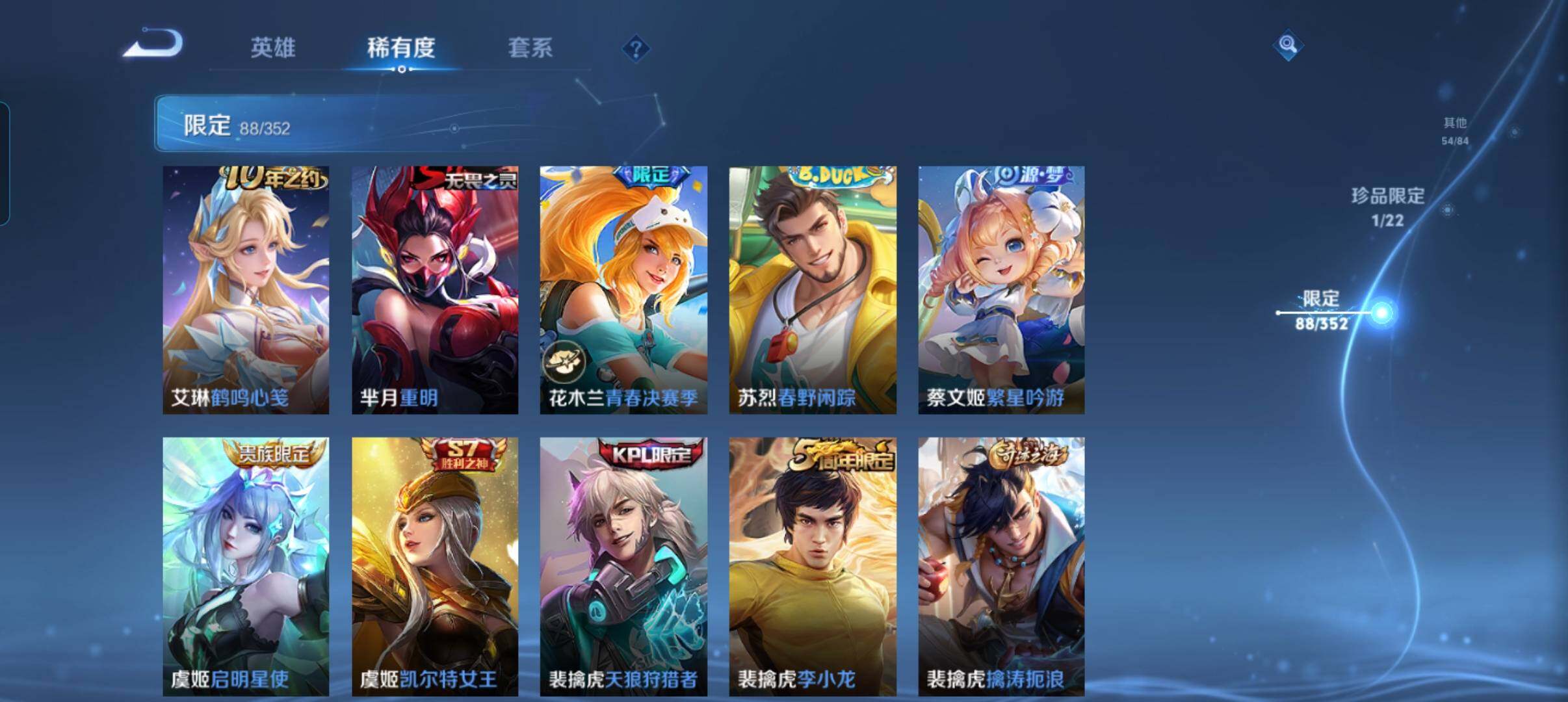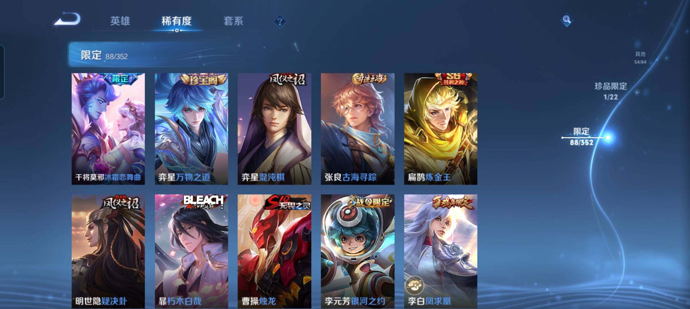 127英雄-269皮肤-账号亮点:暃朽木白哉 司空震愿照山河定,裴擒虎祥瑞亨通,墨子黄金天蝎座,亚连落雪白狼,澜逐花归海,诸葛亮鹤羽星尊,虞姬启明星使,曜云鹰飞将,伽罗太华,貂蝉猫影幻舞,干将莫邪久胜战神,虞姬云霓雀翎,达摩黄金狮子座,百里玄策白虎志,李白凤求凰,孙尚香末日机甲,宫本武藏地狱之眼,孙悟空地狱火470 【英雄全皮】:影全皮 【珍品传说】:暃朽木白哉 【传说皮肤】:司空震愿照山河定,裴擒虎祥瑞亨通,墨子黄