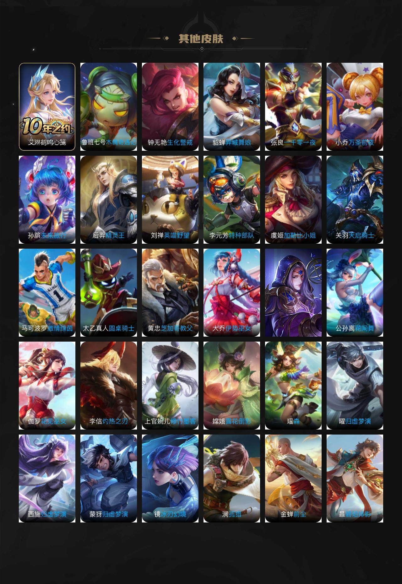 65英雄-100皮肤-贵族6/皮肤100/传说10/史诗21/英雄65/影全皮/时之魔女 小乔/器灵·螭龙剑 曜/酷洛米之心 安琪拉/神树通天 后羿/续相思 西施/愿照·众生和 妲己/愿照·九州拓 澜/愿照·岁时盈 虞姬/鸣野蒿 桑启/记忆之芯 公孙离/游龙清影 西施/祈雪灵祝 公孙离/仲夏夜之梦 貂蝉/阴阳师 狄仁杰/皇家上将 赵云/魔术师 狄仁杰/海滩派对 项羽/至美·乘鲤谣 西施/熔金海岸 周瑜/紫霞仙子 露