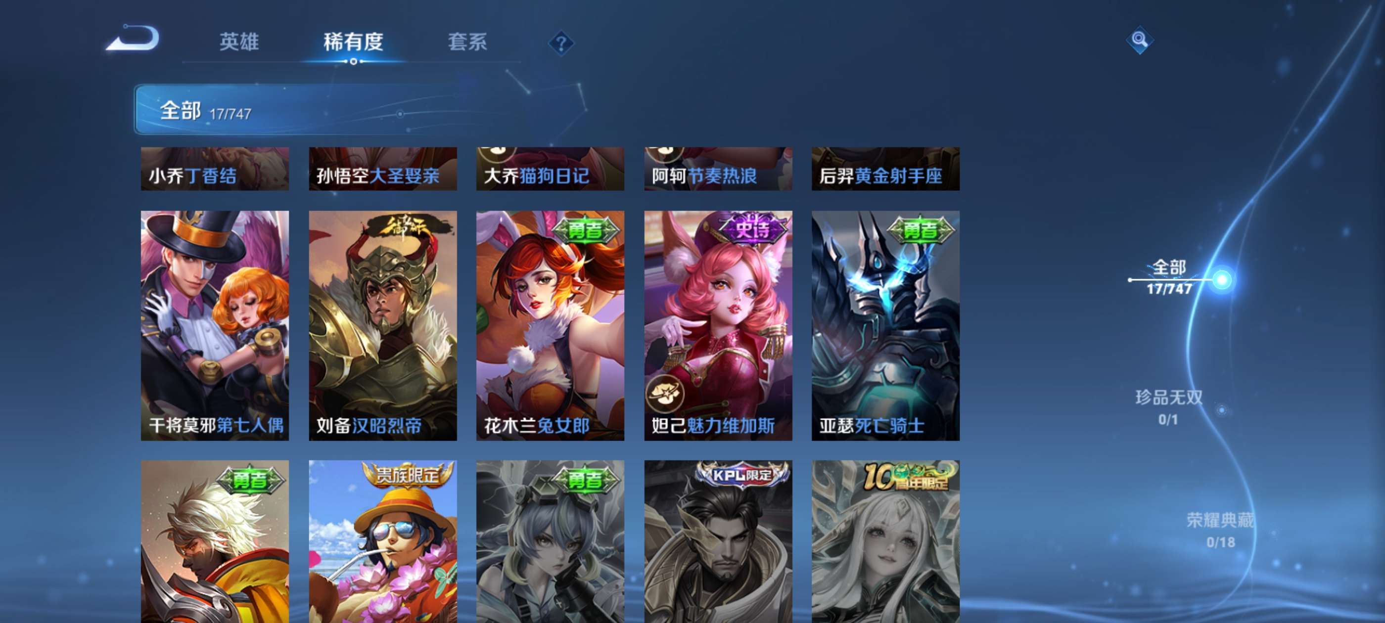47英雄-17皮肤-jj3649:安卓q-v4-至尊星耀v-47英雄-17皮肤2传说-5史诗 【稀有英雄】 不知火舞 橘右京 娜可露露 赵云 【传说皮肤】 黄金射手座 时之恋人 【限定皮肤】 大圣娶亲 【史诗皮肤】 猫狗日记 龙之律动 魅力维加斯 大圣娶亲 节奏热浪 【勇者皮肤】 丁香结 汉昭烈帝 海滩派对 死亡骑士 忍·炎影 兔女郎 【其他皮肤】 第七人偶
