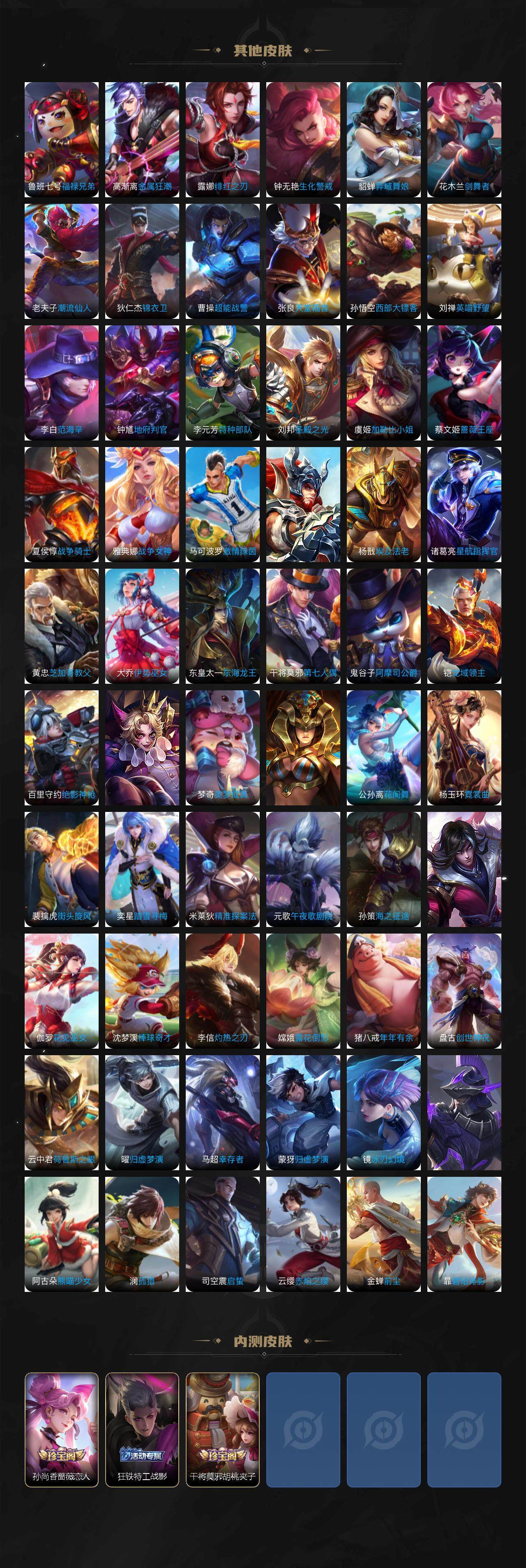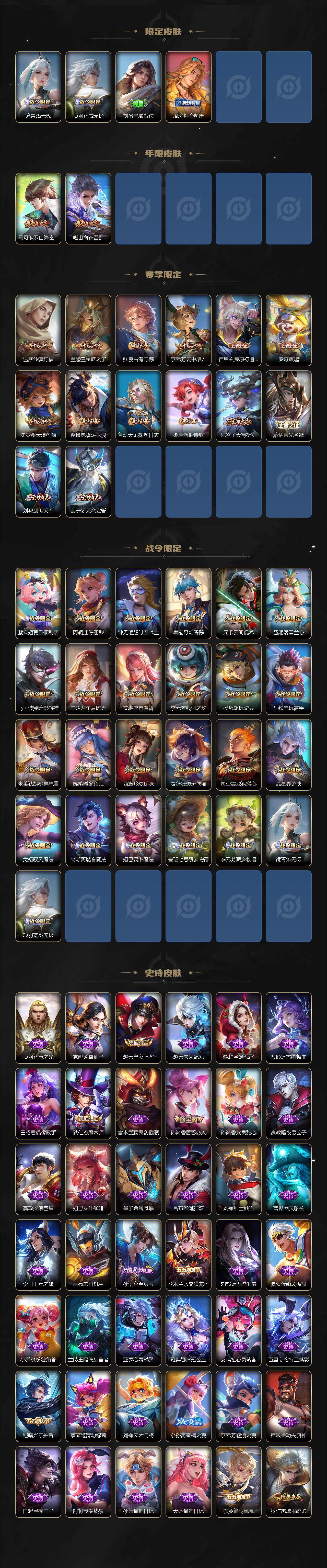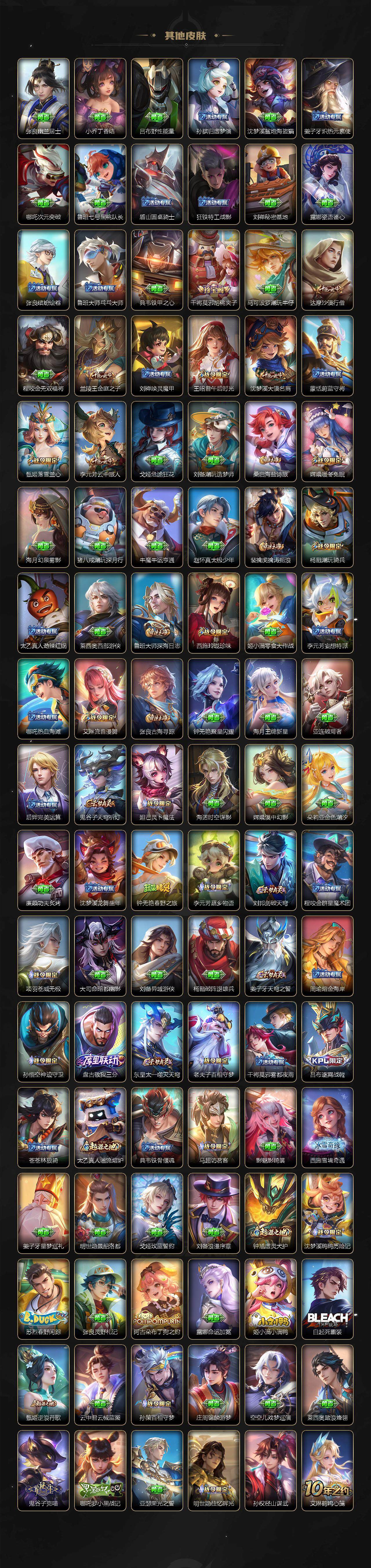126英雄-325皮肤-贵族8/皮肤325/典藏1/传说16/史诗101/英雄126/刘禅全皮/孙权全皮/曜全皮/蒙恬全皮/司空震全皮/戈娅全皮/空空儿全皮/影全皮/九霄神辉 花木兰/器灵·螭龙剑 曜/大耳狗之梦 瑶/朽木白哉 暃/神树通天 后羿/愿照·山河定 司空震/愿照·九州拓 澜/幻光神呛 云缨/鸣野蒿 桑启/霜月吟 露娜/画中仙 干将莫邪/山海·苍雷引 曜/无双飞将 马超/李 曜/炽阳神光 镜/启明星使