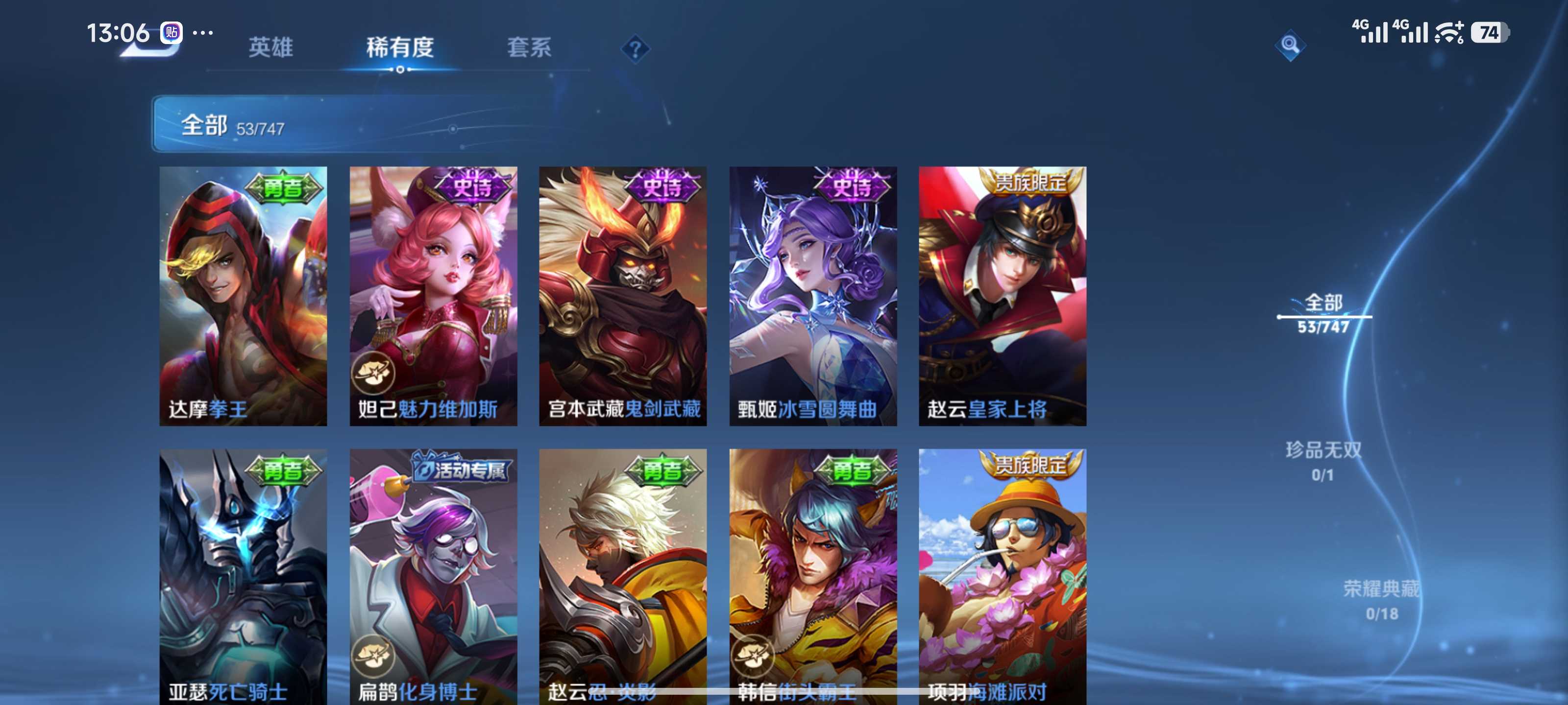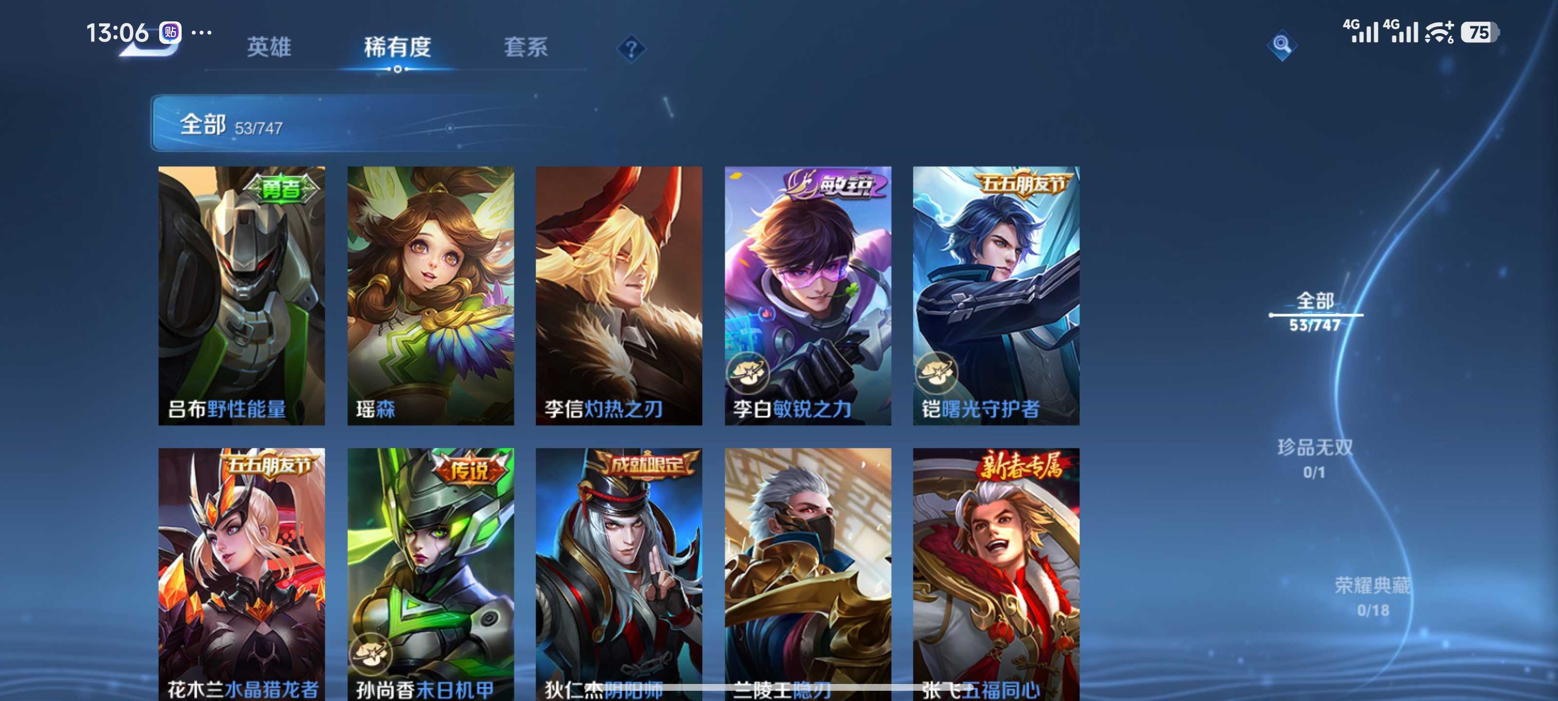 90英雄-53皮肤-由于赛季更新段位以上号为准-安卓q-【可二次】-英雄数量:90-皮肤数量:53-贵族等级:贵族v1-营地号: