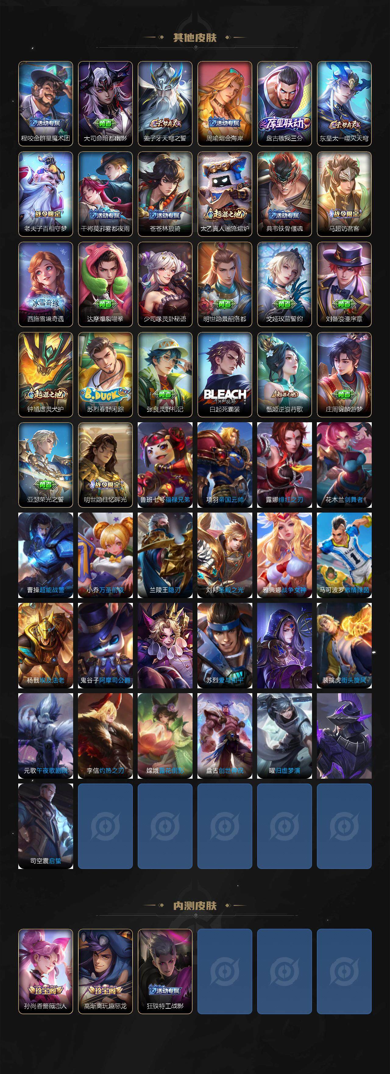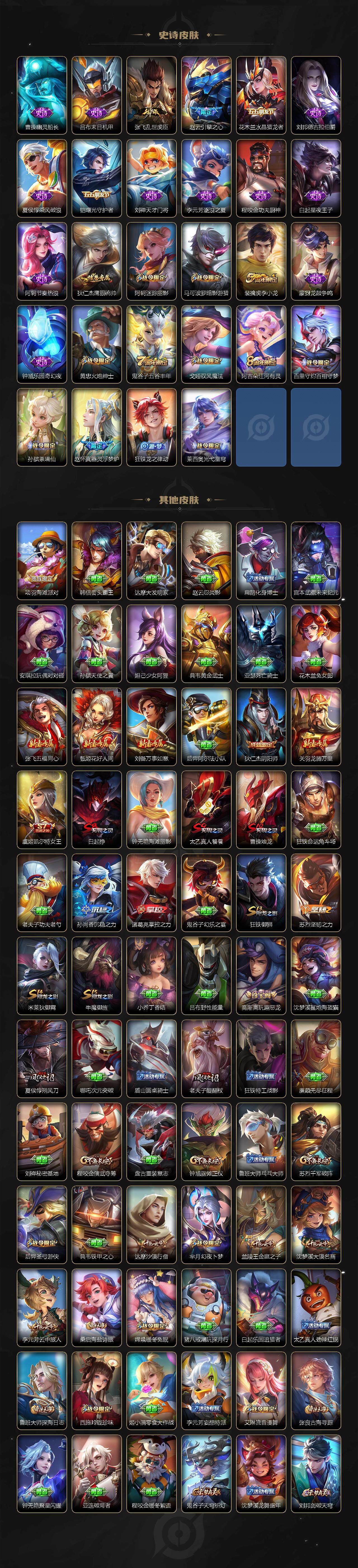 125英雄-164皮肤-贵族5/皮肤164/传说3/史诗40/英雄125/愿照·山河定 司空震/鸣野蒿 桑启/黄金狮子座 达摩/狰 白起/天穹之誓 姜子牙/阴阳师 狄仁杰/凯尔特女王 虞姬/皇家上将 赵云/引擎之心 赵云/蔷薇恋人 孙尚香/玩趣恶龙 高渐离/迷踪丽影 阿轲/王者之锤 钟无艳/幻夜卜梦 芈月/朔风刀 夏侯惇/烛龙 曹操/暗影游猎 马可波罗/沙漠行僧 达摩/海滩派对 项羽/醍醐杖 老夫子/演武夺筹 程咬金