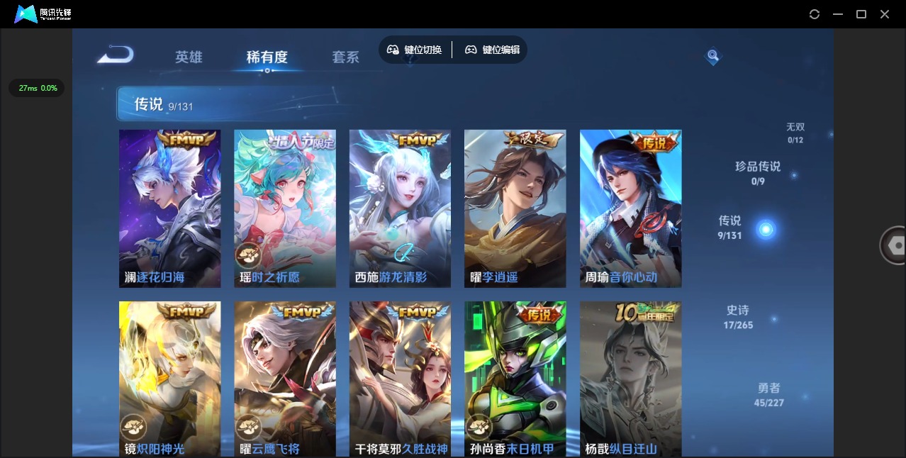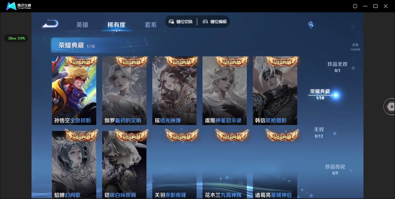 125英雄-113皮肤-[]v7 1典藏 9传说 125英雄 113皮肤 可修改实名 【稀有英雄】:大司命嬴政始皇帝韩信韩跳跳夏洛特夏师傅艾琳橘右京橘子娜可露露鸟人不知火舞赵云金蝉唐僧戈娅 【荣耀水晶】:全息碎影猴子典藏 【传说皮】:李游龙清影小青龙