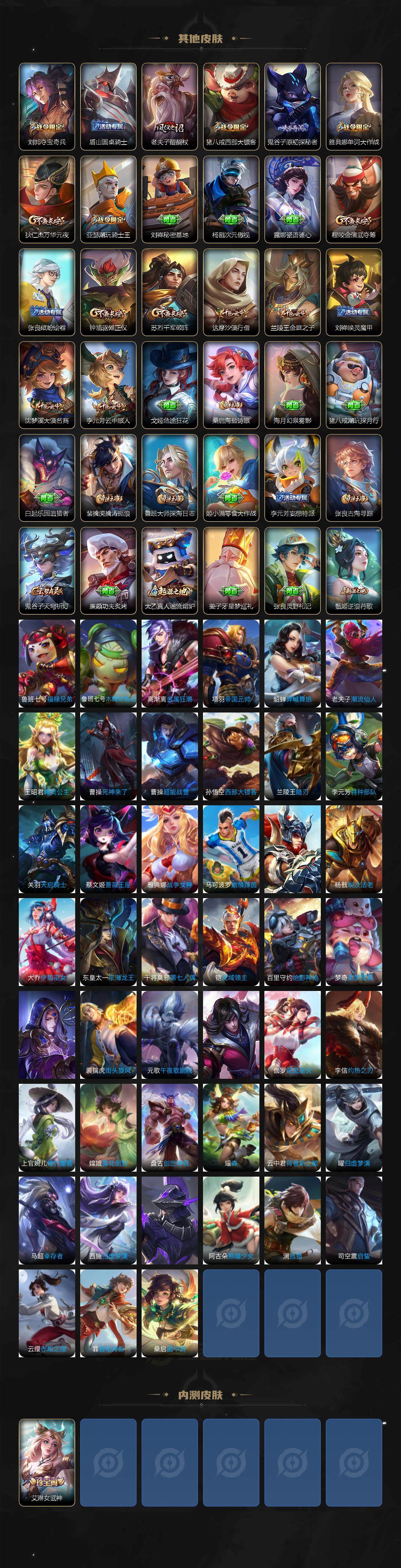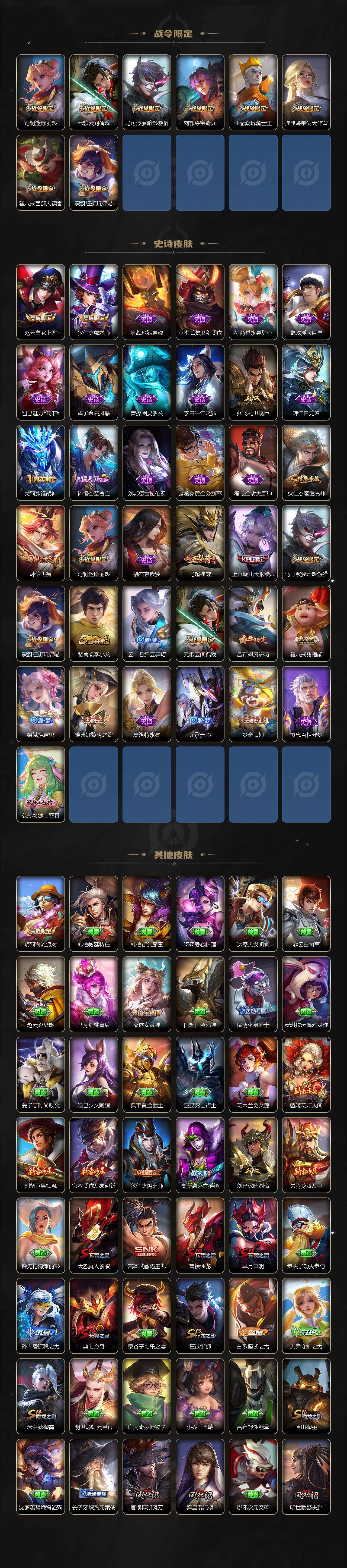 124英雄-173皮肤-苹果q-v0-至尊星耀v段位-124英雄-173皮肤-7传说-37史诗 【传说皮肤】:马超无双飞将,镜炽阳神光,孙悟空零号赤焰,关羽武圣,曜云鹰飞将,干将莫邪久胜战神,百里玄策白虎志 【限定皮肤】:狄仁杰阴阳师,赵云皇家上将,高渐离死亡摇滚,阿轲迷踪丽影,芈月重明,吕布御风骁将,元歌云间偶戏,元歌无心,夏侯惇朔风刀,曹操烛龙,典韦穷奇,马可波罗暗影游猎,狄仁杰魔术师,狄仁杰万华元夜,达摩沙漠行