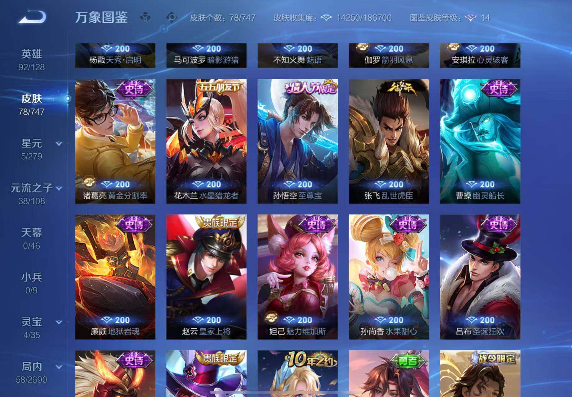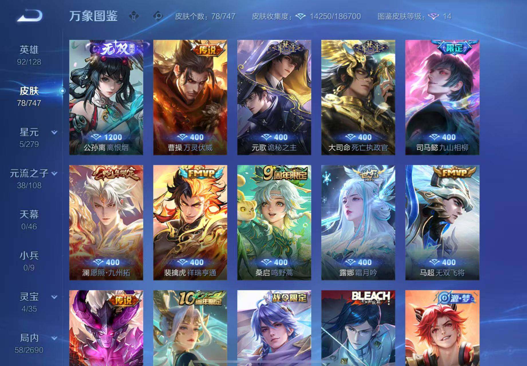 92英雄-78皮肤-【男神号 离恨烟 金标万战马超 至尊宝 霜月吟 诡秘之主 万灵伏威 九州拓 】苹果q-v7-最强王者段位-92英雄-78皮肤-1无双-10传说-26史诗 【英雄全皮】:孙权全皮,大司命全皮,影全皮 【无双皮肤】:公孙离离恨烟 【传说皮肤】:曹操万灵伏威,元歌诡秘之主,大司命死亡执政官,司马懿九山相柳,澜愿照九州拓,裴擒虎祥瑞亨通,桑启鸣野蒿,露娜霜月吟,马超无双飞将,宫本武藏地狱之眼 【