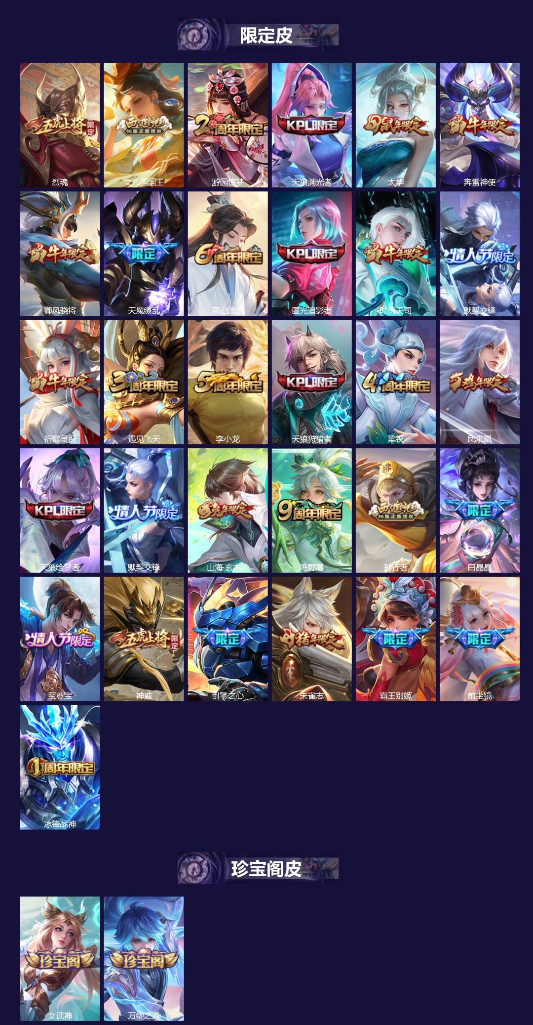 127英雄-369皮肤-[]v10 9典藏 2无双 37传说 127英雄 369皮肤 典藏英雄武则天 可修改实名 【英雄全皮】:娜可露露全皮孙权全皮莱西奥全皮钟馗全皮 【稀有英雄】:大司命嬴政始皇帝韩信韩跳跳夏洛特夏师傅艾琳橘右京橘子娜可露露鸟人不知火舞赵云金蝉