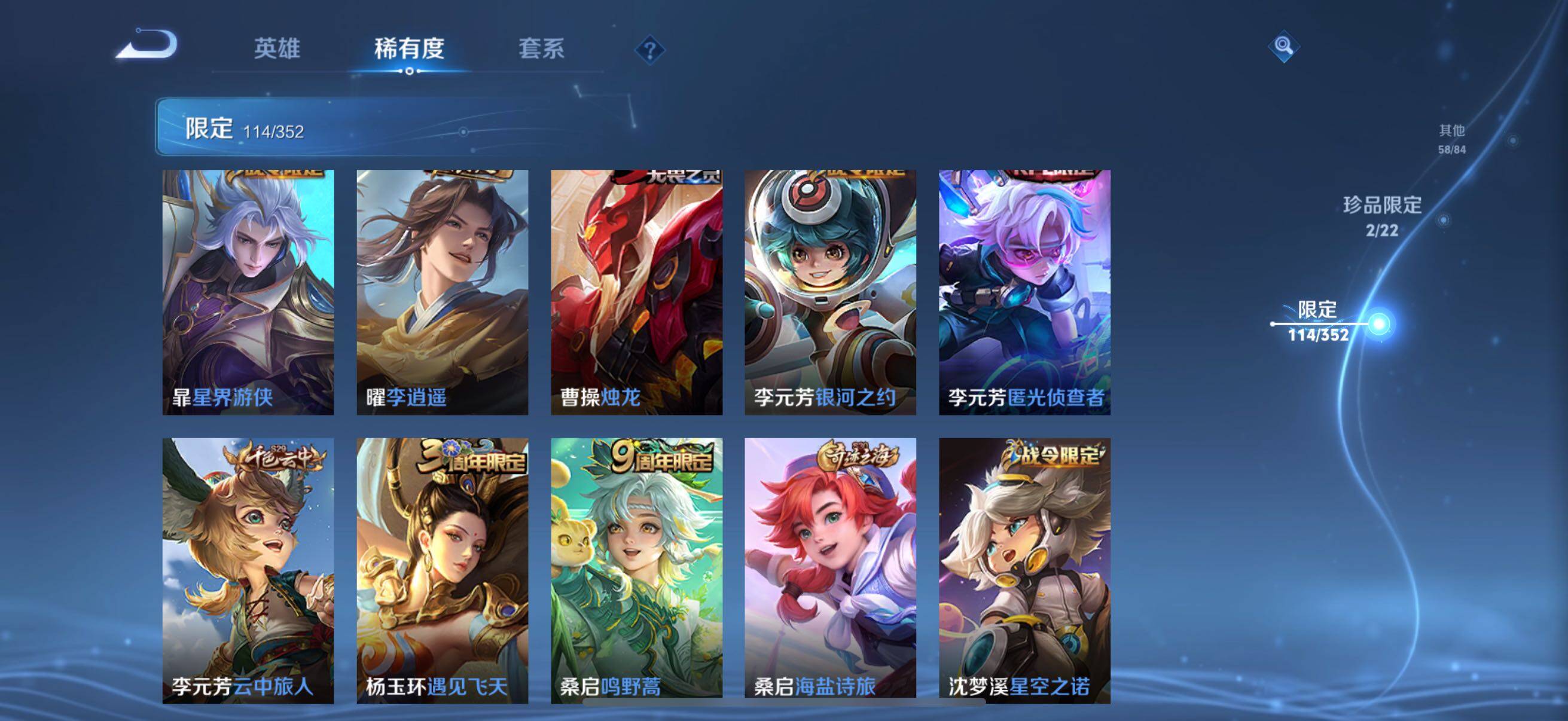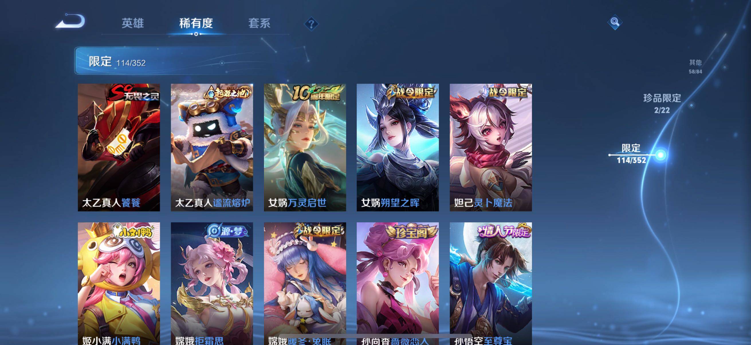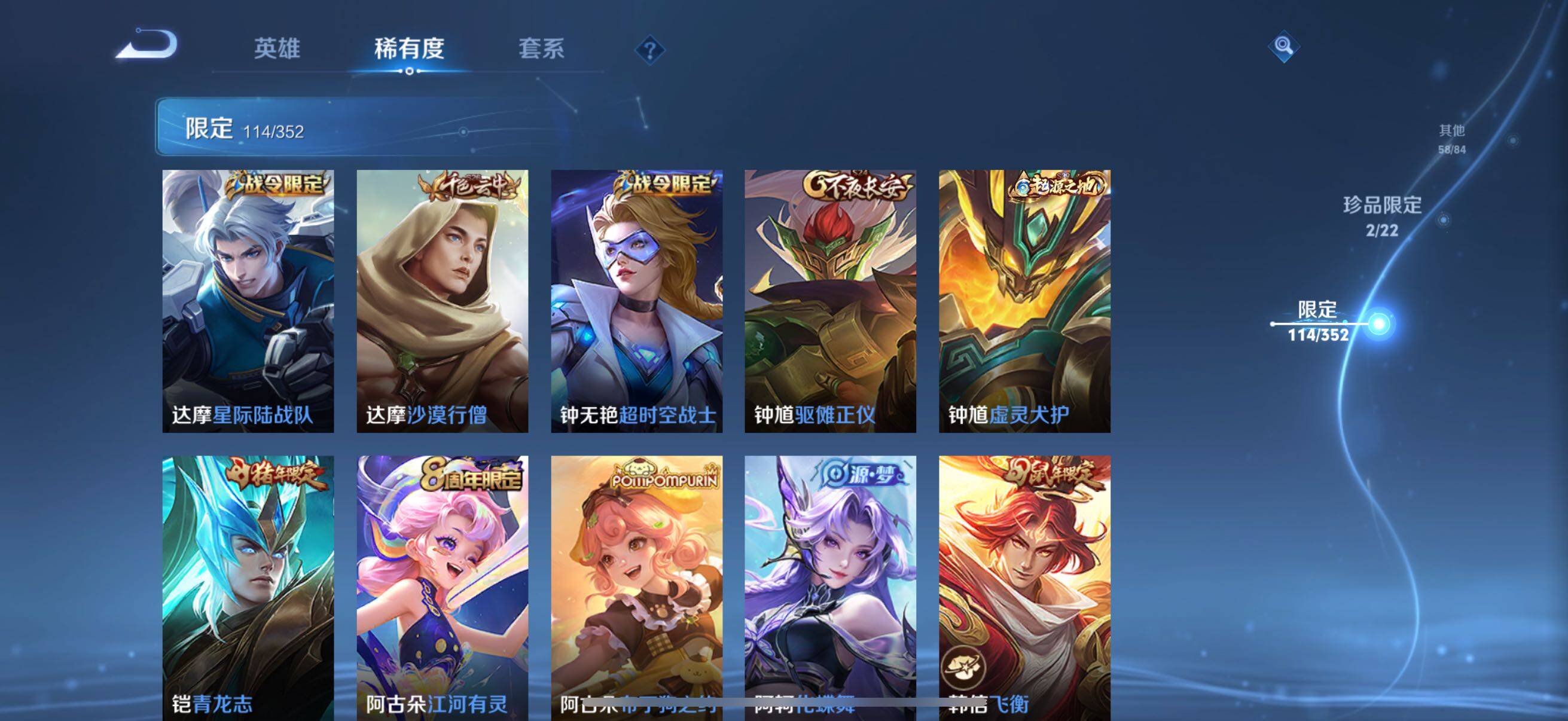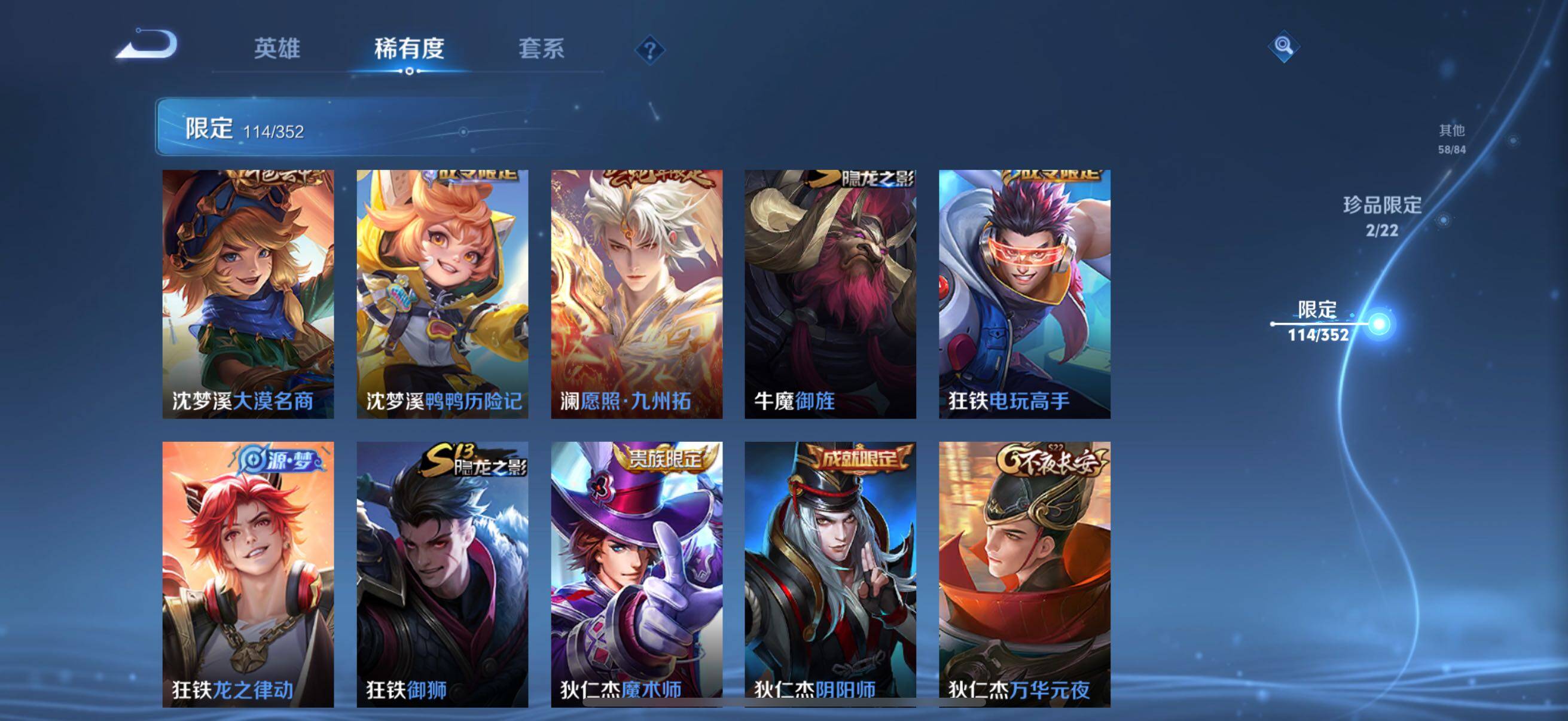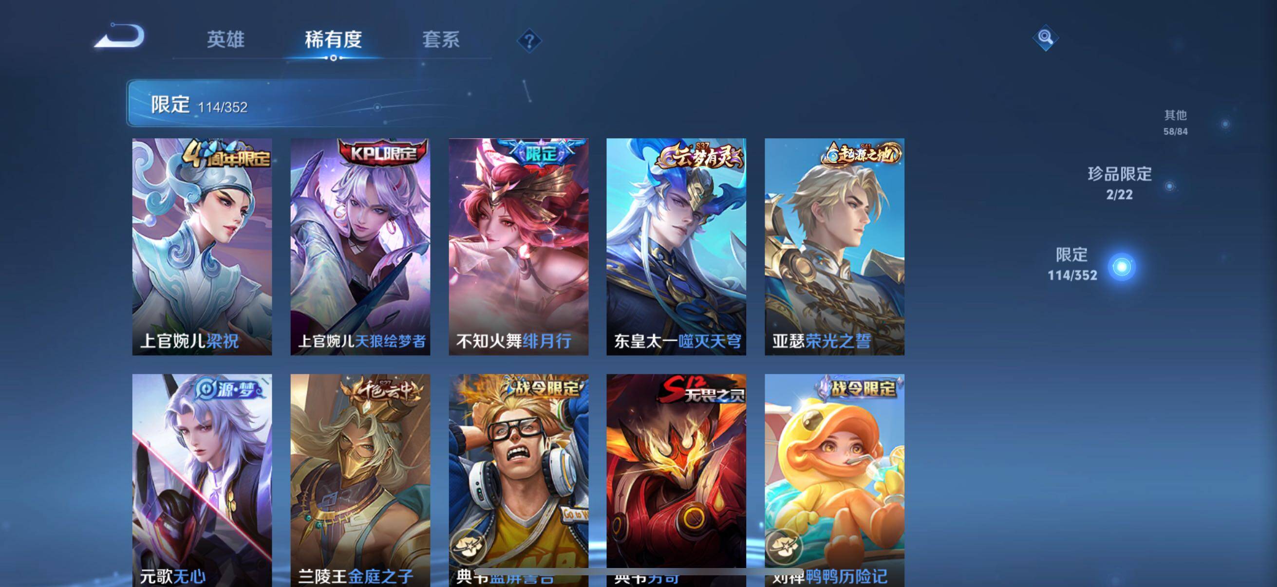 126英雄-326皮肤-账号亮点:孙悟空全息碎影 马可波罗怪盗基德,鲁班七号江户川柯南 后羿神树通天,澜愿照九州拓,虞姬愿照岁时盈,裴擒虎祥瑞亨通,桑启鸣野蒿,夏侯惇霜北刀,马可波罗妄想实况,不知火舞绯月行,马可波罗深海之息,马超无双飞将,曜李 ,虞姬启明星使,干将莫邪久胜战神,达摩黄金狮子座,花木兰冠军飞将,后羿黄金射手座,孙尚香末日机甲,宫本武藏地狱之眼,孙悟空地狱火,狄仁杰超时空战士625-25 【英雄全皮