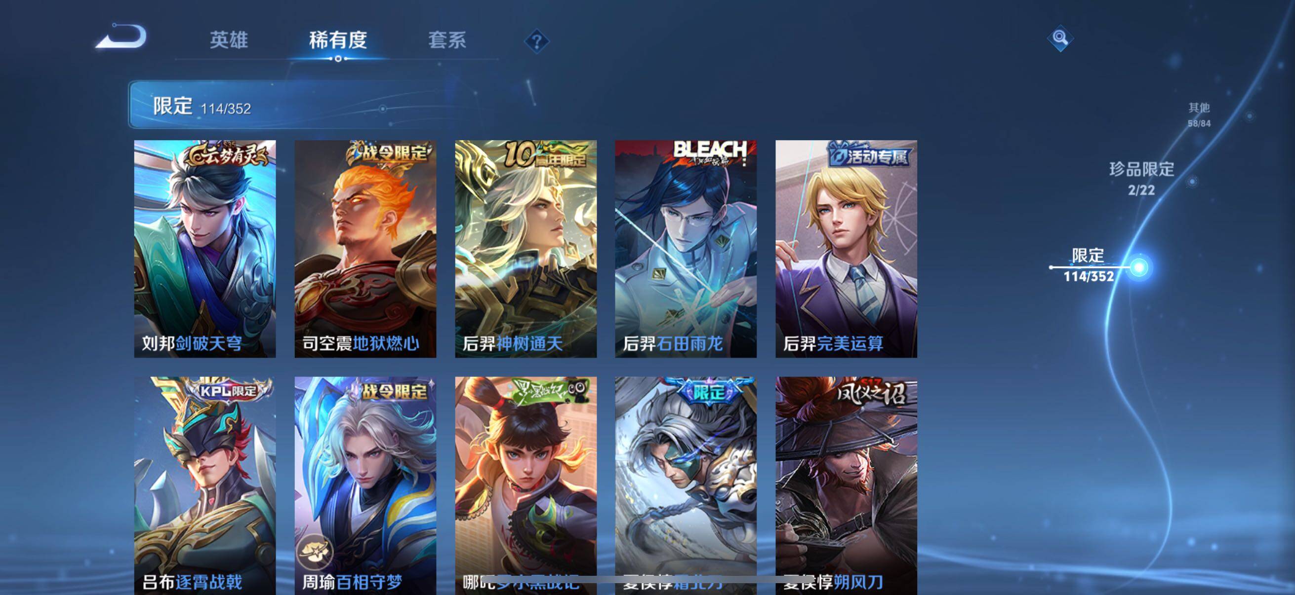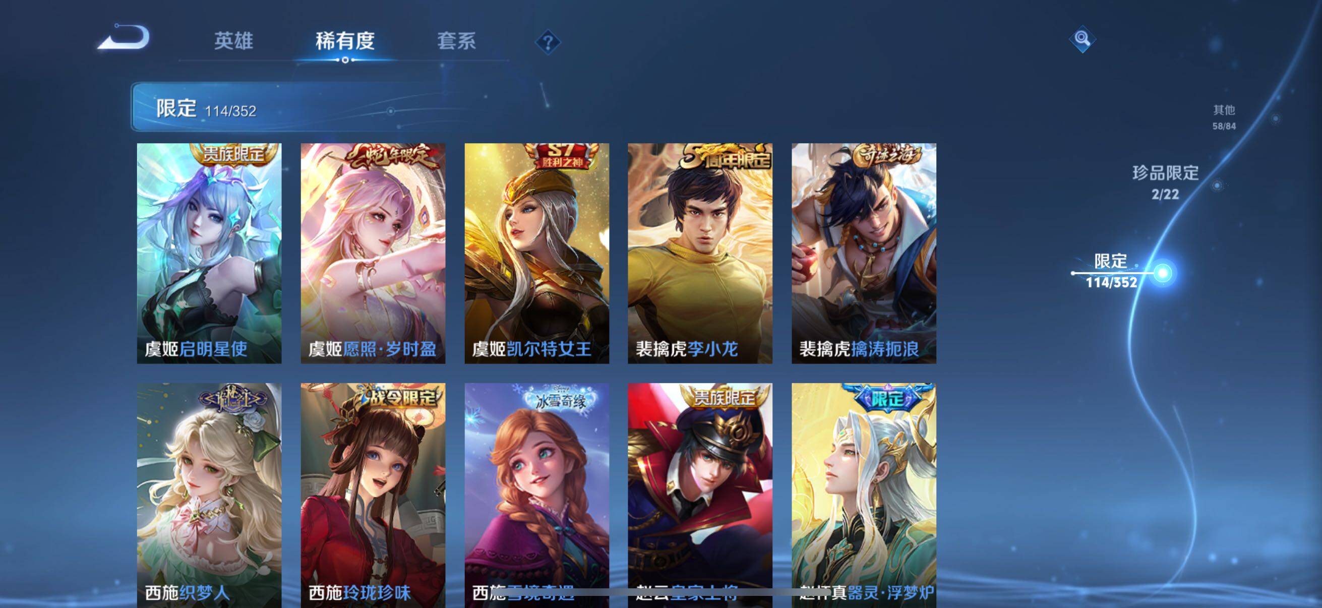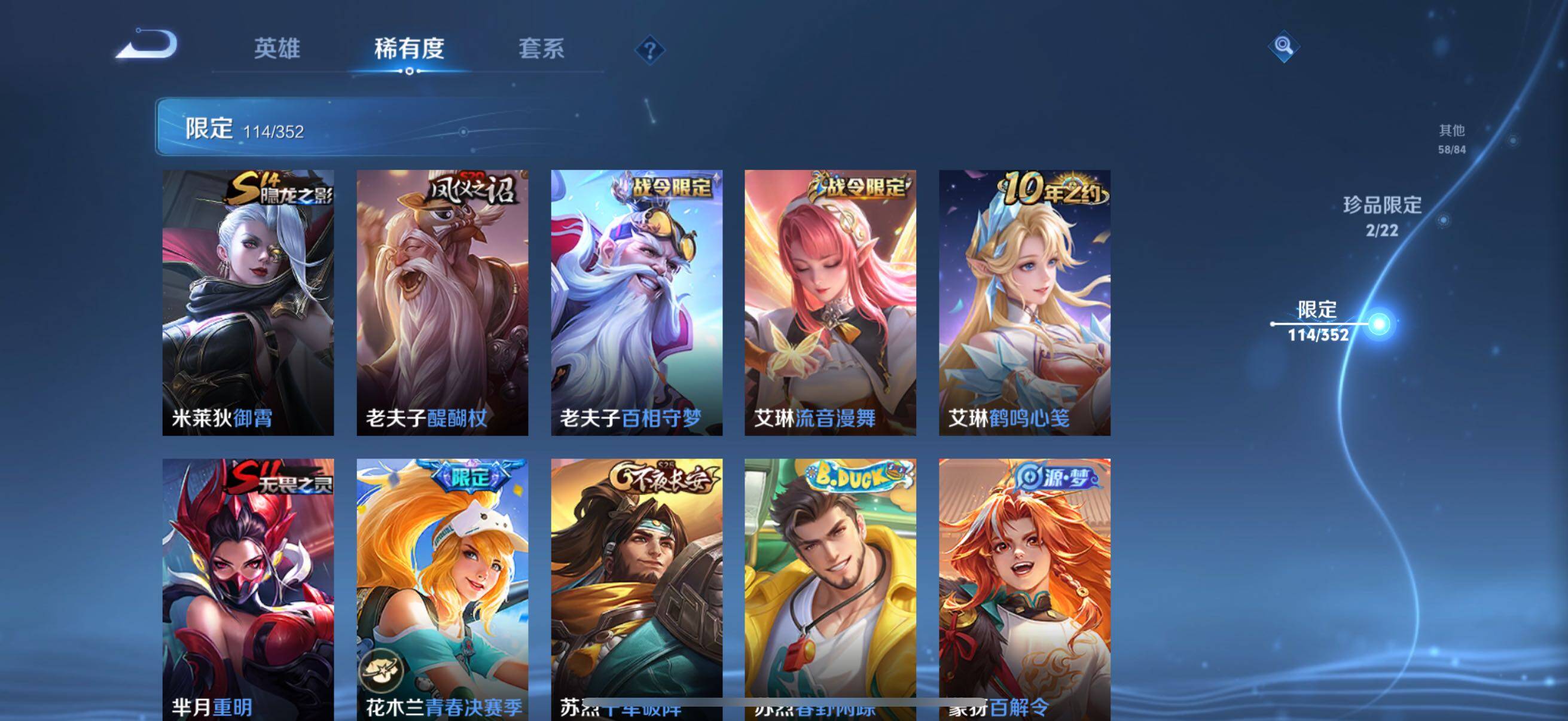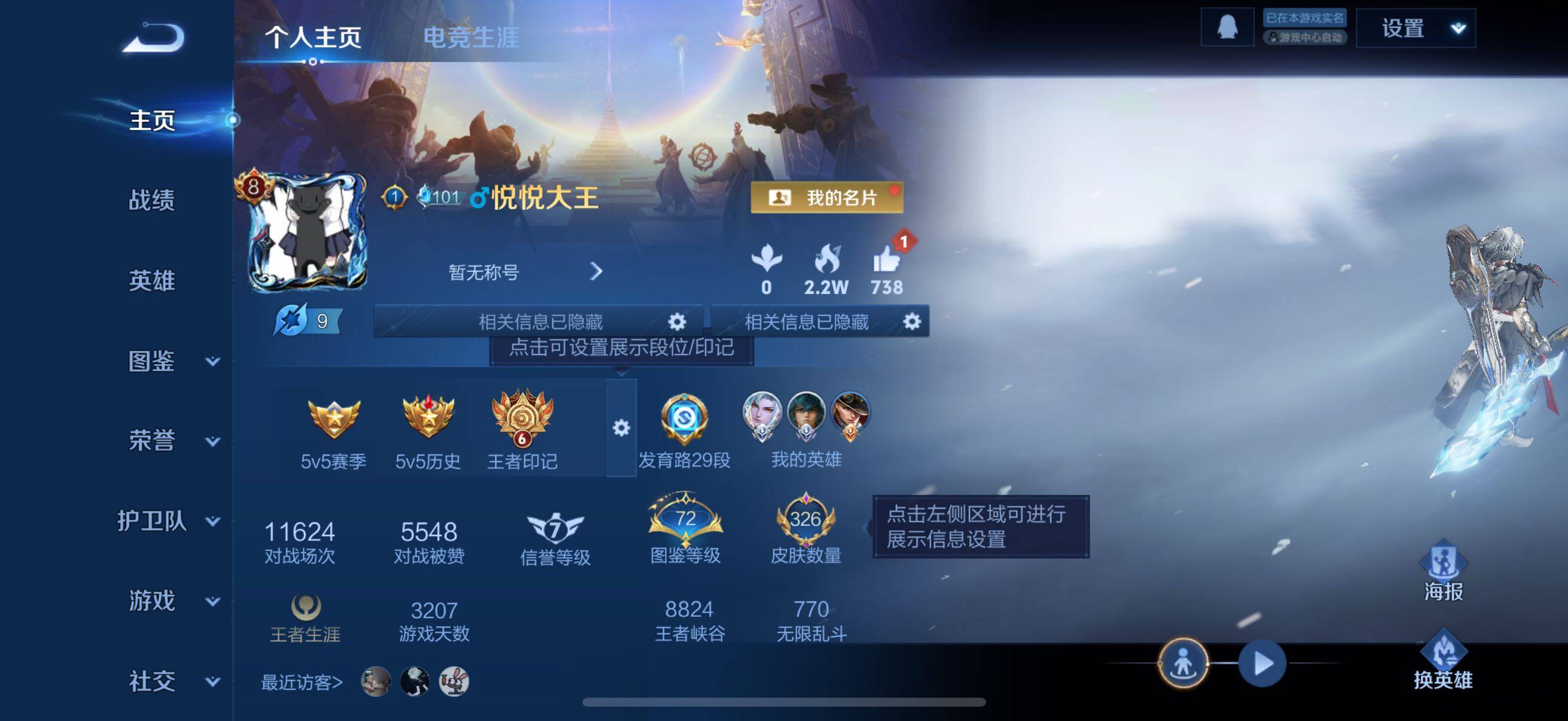 126英雄-326皮肤-账号亮点:孙悟空全息碎影 马可波罗怪盗基德,鲁班七号江户川柯南 后羿神树通天,澜愿照九州拓,虞姬愿照岁时盈,裴擒虎祥瑞亨通,桑启鸣野蒿,夏侯惇霜北刀,马可波罗妄想实况,不知火舞绯月行,马可波罗深海之息,马超无双飞将,曜李 ,虞姬启明星使,干将莫邪久胜战神,达摩黄金狮子座,花木兰冠军飞将,后羿黄金射手座,孙尚香末日机甲,宫本武藏地狱之眼,孙悟空地狱火,狄仁杰超时空战士625-25 【英雄全皮