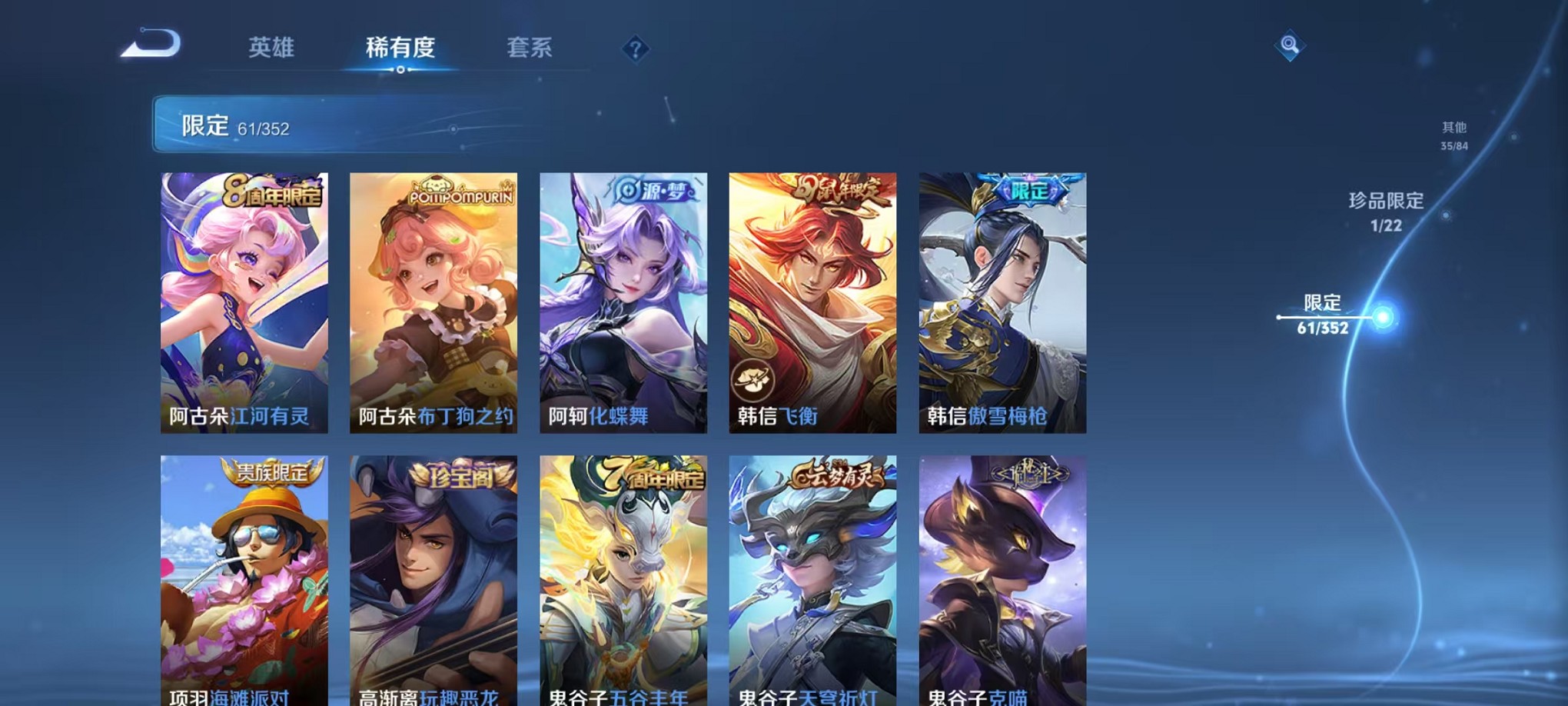 125英雄-194皮肤-可二次【器灵·落星盏1珍品7传说 可秒换绑】安卓qq-125英雄-194皮肤【珍品传说】器灵·落星盏【传说皮肤】神树通天 逐花归海 云诺千山 鸣野蒿 幻光神呛 愿照·九州拓 炽阳神光【史诗皮肤】万灵启世 绮世丹青 飞衡 百相守梦 石田雨龙 百相守梦 器灵·浮梦炉 涂山容容 星界游侠 电玩·爆裂旋风 绮世丹青 幽灵船长 女仆咖啡 魅力维加斯 白蛇 魔术师 鹰眼统帅 箭羽风息 无限