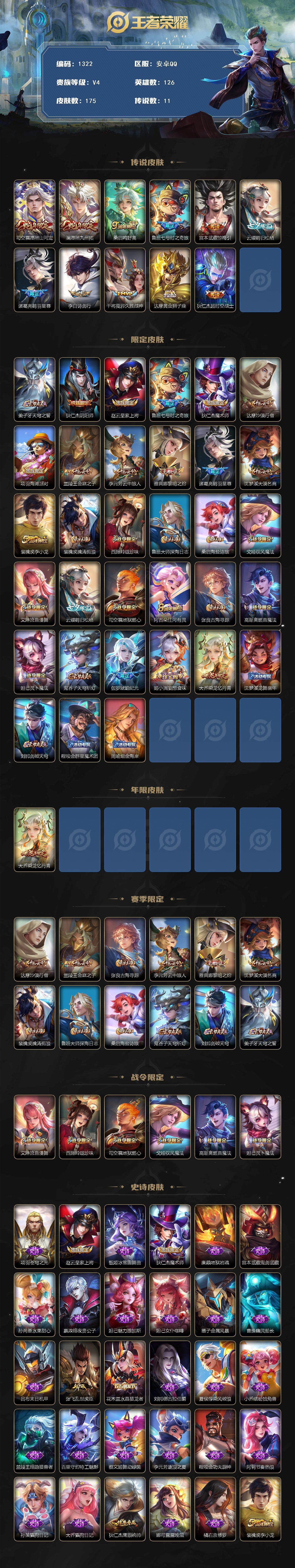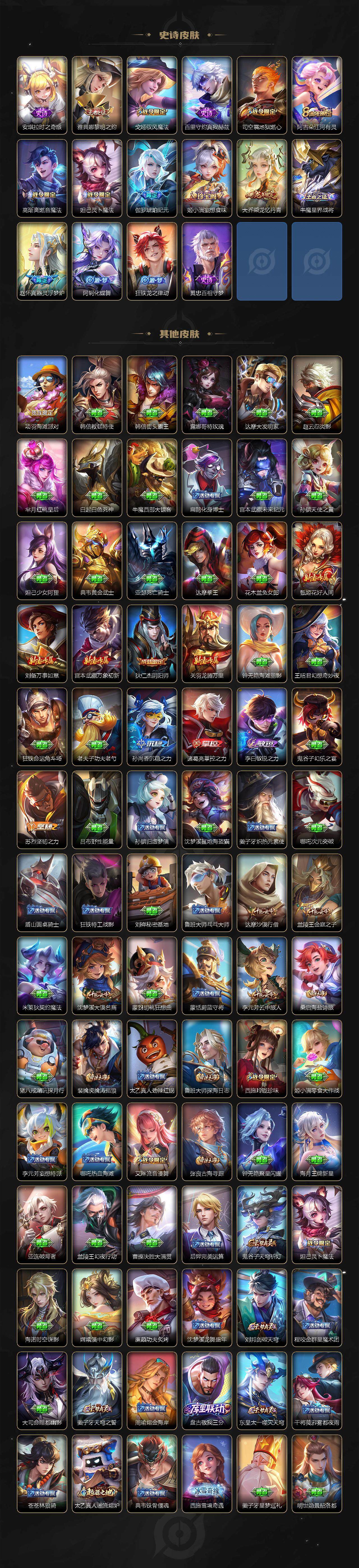 126英雄-175皮肤-贵族4/皮肤175/传说11/史诗45/英雄126/司空震全皮/愿照·山河定 司空震/愿照·九州拓 澜/鸣野蒿 桑启/时之奇旅 鲁班七号/惊梅引 宫本武藏/鹤归松栖 云缨/鹤羽星尊 诸葛亮/诗剑行 李白/久胜战神 干将莫邪/黄金狮子座 达摩/超时空战士 狄仁杰/天穹之誓 姜子牙/阴阳师 狄仁杰/皇家上将 赵云/魔术师 狄仁杰/沙漠行僧 达摩/海滩派对 项羽/金庭之子 兰陵王/云中旅人 李元芳/