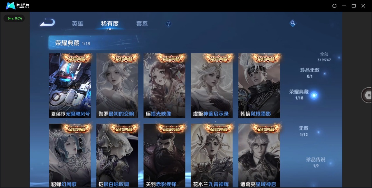 127英雄-319皮肤-[]v7 1典藏 1无双 1珍品传说 16传说 127英雄 319皮肤 可修改实名 【英雄全皮】:蒙恬全皮敖隐全皮孙权全皮蚩奼全皮狂铁全皮姬小满全皮猪八戒全皮 【稀有英雄】:敖隐小龙人大司命嬴政始皇帝韩信韩跳跳夏洛特夏师傅艾琳橘右京橘子