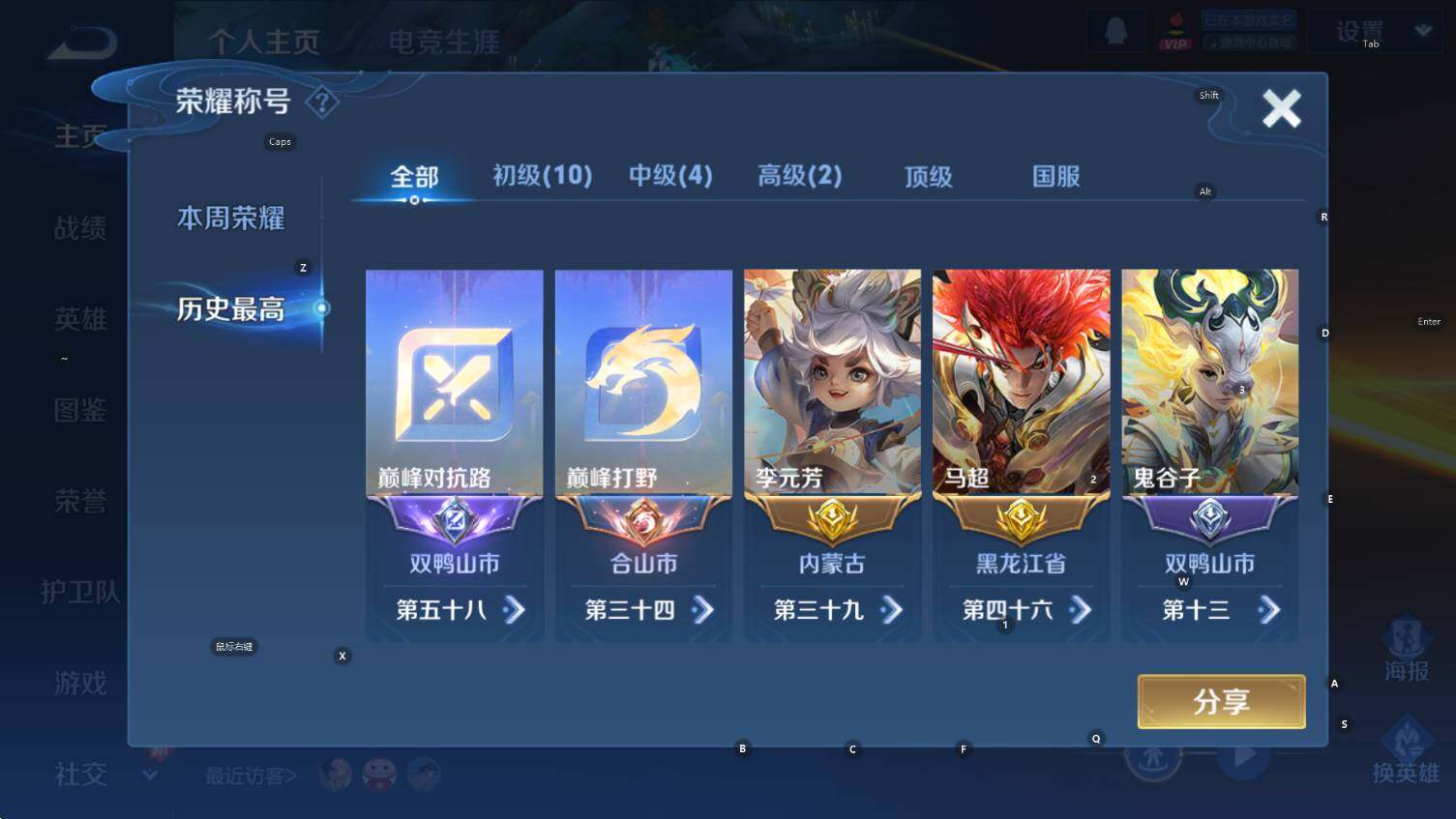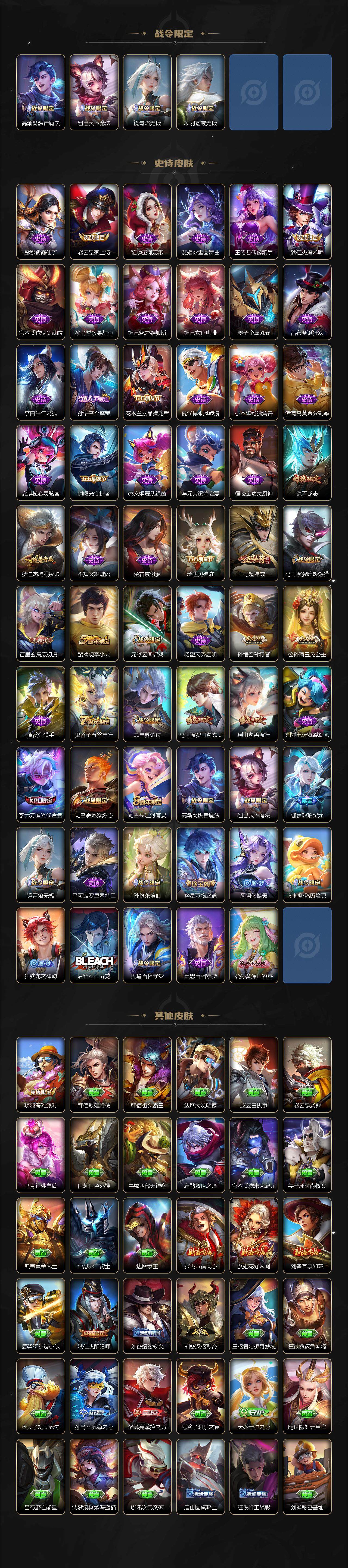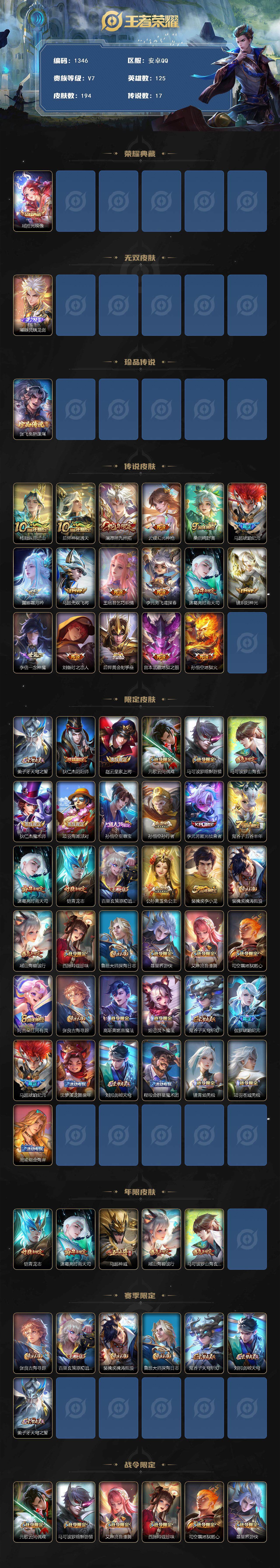 125英雄-194皮肤-贵族7/皮肤194/典藏1/传说17/史诗58/英雄125/马超全皮/拾光映像 瑶/器灵·螭龙剑 曜/兔狲·蓬尾 张飞/纵目迁山 杨戬/神树通天 后羿/愿照·九州拓 澜/幻光神呛 云缨/鸣野蒿 桑启/琥珀纪元 马超/霜月吟 露娜/无双飞将 马超/乞巧织情 王昭君/飞鸢探春 李元芳/时雨天司 诸葛亮/炽阳神光 镜/一念神魔 李信/时之恋人 刘备/黄金射手座 后羿/地狱之眼 宫本武藏/地狱火 孙悟