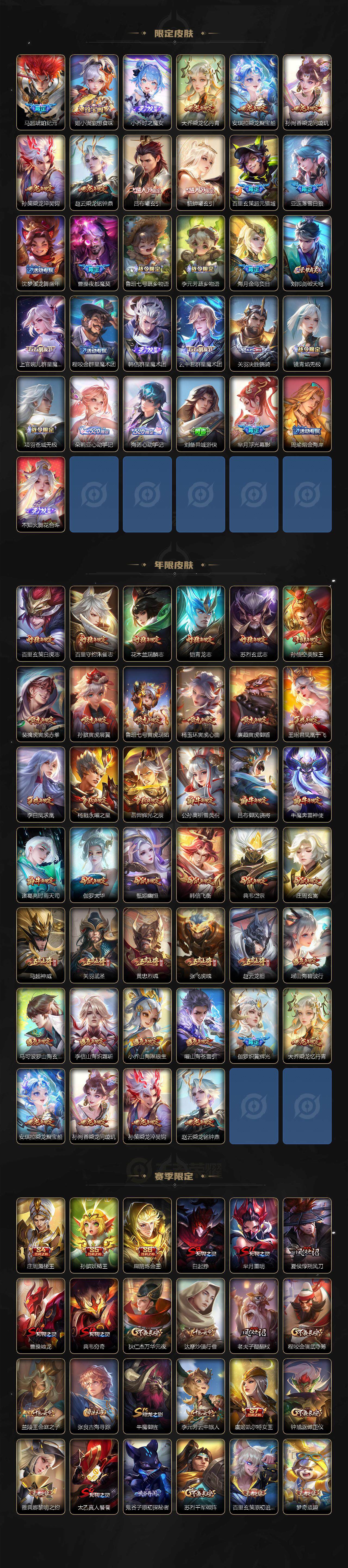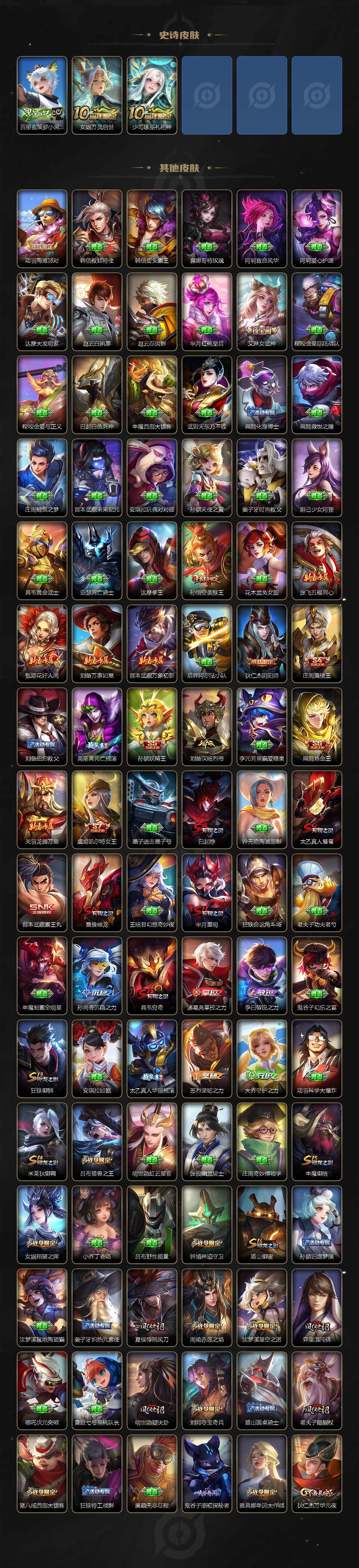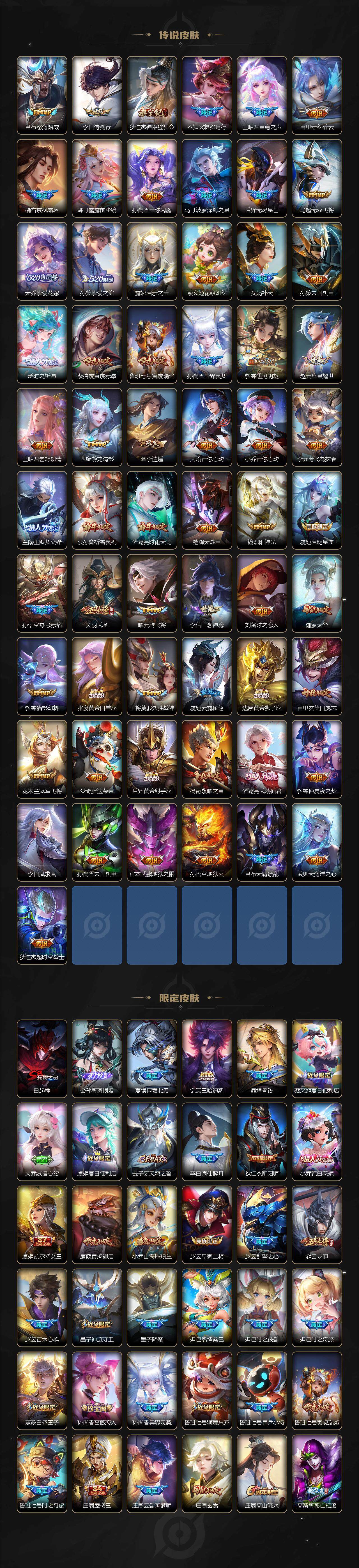 128英雄-701皮肤-贵族11/皮肤701/典藏13/传说127/史诗248/英雄128/小乔全皮/赵云全皮/墨子全皮/妲己全皮/孙尚香全皮/庄周全皮/刘禅全皮/阿轲全皮/孙膑全皮/芈月全皮/吕布全皮/夏侯惇全皮/甄姬全皮/曹操全皮/典韦全皮/李白全皮/马可波罗全皮/狄仁杰全皮/达摩全皮/武则天全皮/程咬金全皮/露娜全皮/姜子牙全皮/刘邦全皮/孙权全皮/王昭君全皮/兰陵王全皮/艾琳全皮/张良全皮/不知火舞全皮/娜可