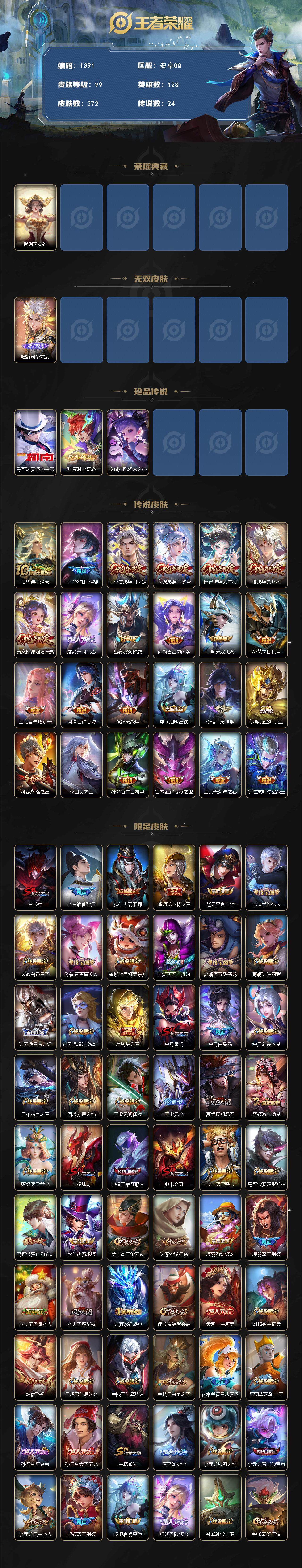 128英雄-372皮肤-贵族9/皮肤372/传说24/史诗114/英雄128/司马懿全皮/孙权全皮/钟馗全皮/狂铁全皮/蒙恬全皮/空空儿全皮/影全皮/武则天/器灵·螭龙剑 曜/怪盗基德 马可波罗/时之奇旅 孙策/酷洛米之心 安琪拉/神树通天 后羿/九山相柳 司马懿/愿照·山河定 司空震/愿照·千秋盛 女娲/愿照·众生和 妲己/愿照·九州拓 澜/愿照·福禄聚 蔡文姬/无限倾心 虞姬/怒海麟威 吕布/音你闪耀 孙尚香/无