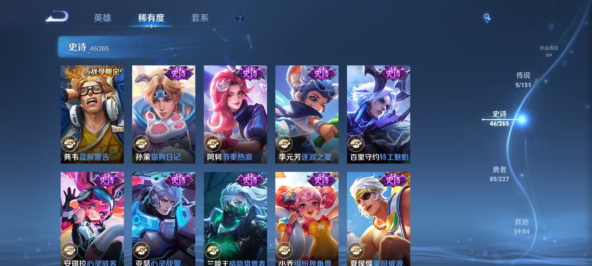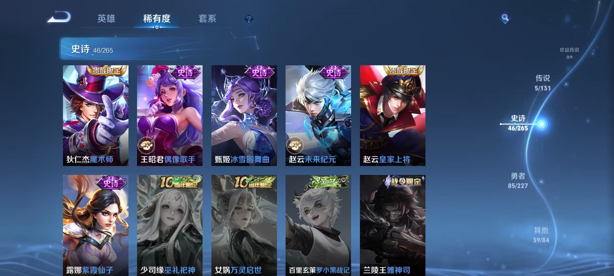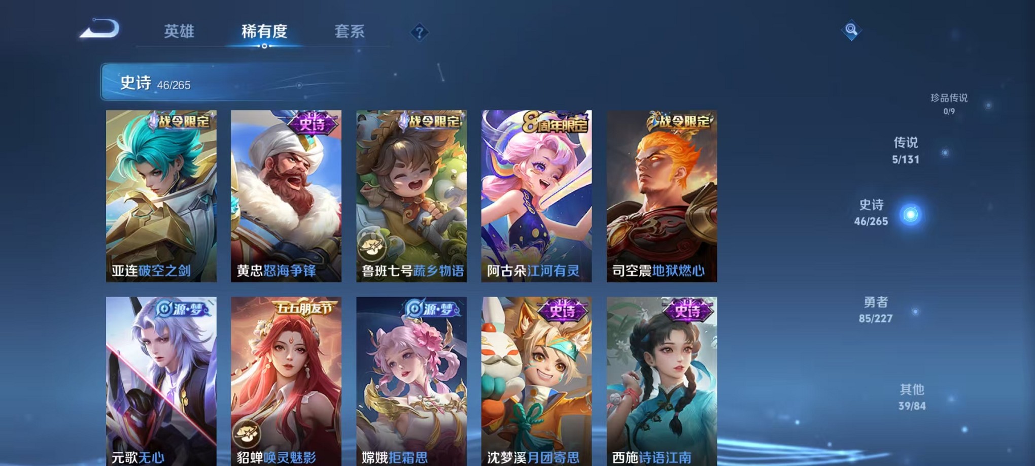124英雄-175皮肤-可二次【5传说175皮肤1星元 可秒换绑】安卓qq-124英雄-175皮肤【星元皮肤】时之思念【传说皮肤】鸣野蒿 胖达荣荣 仲夏夜之梦 时之恋人 游龙清影【史诗皮肤】蔬乡物语 幽灵船长 拒霜思 魔术师 鹰眼统帅 蓝屏警告 箭羽风息 鬼剑武藏 修罗 暗隐猎兽者 千年之狐 逐浪之夏 银河之约 地狱岩魂 德古拉伯爵 绅士熊喵 紫霞仙子 末日机甲 狂想玩偶喵 金属风暴 龙骑士 梁祝 李