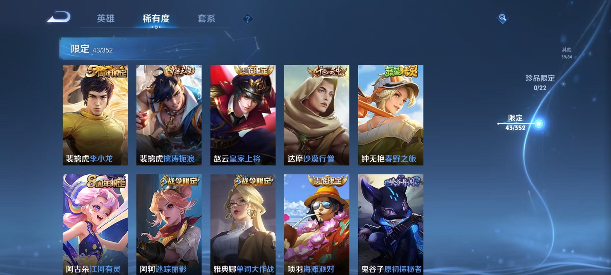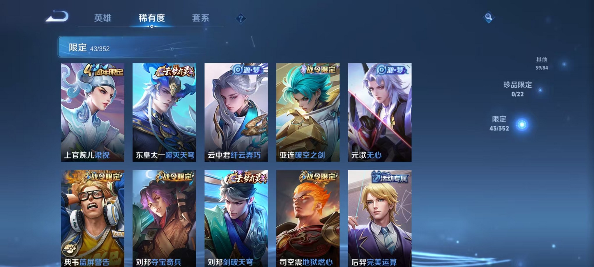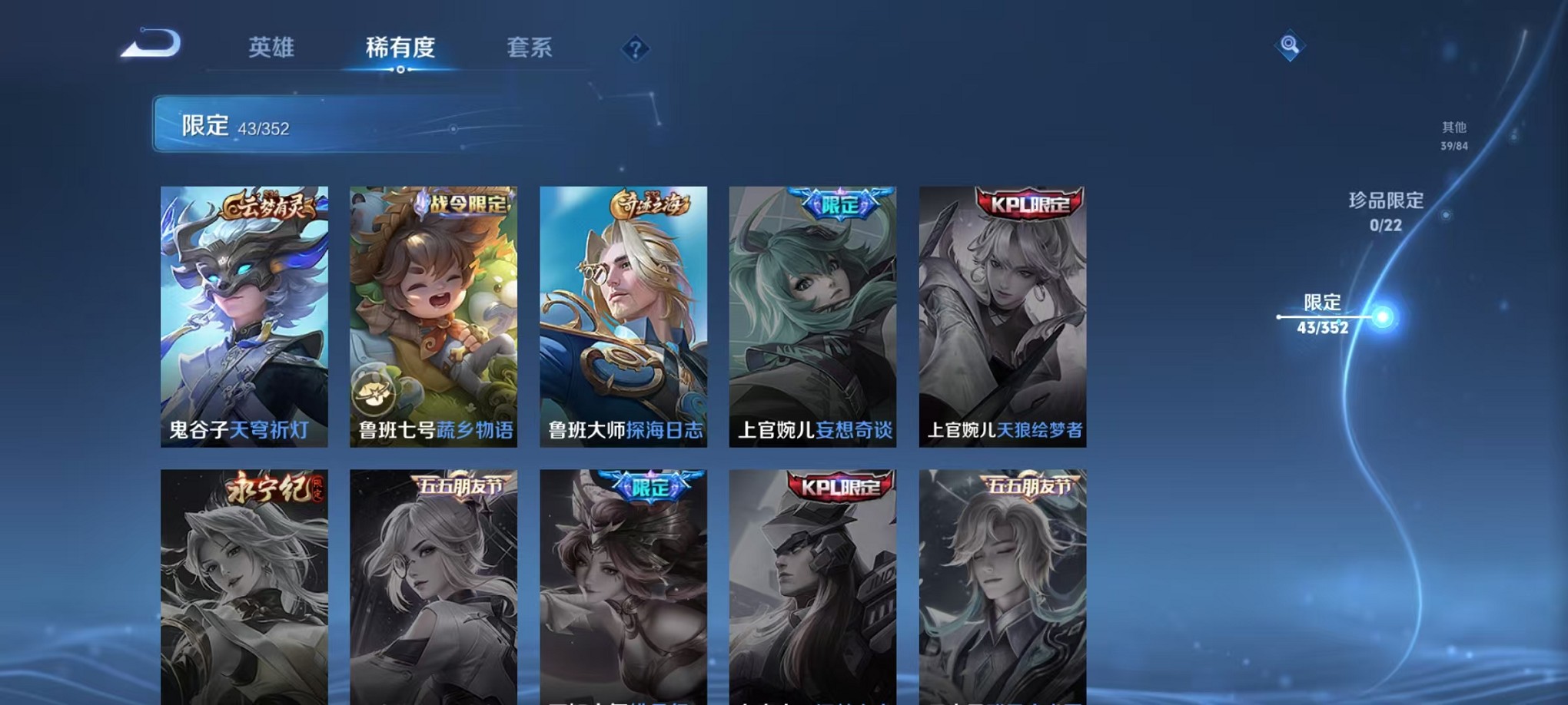 124英雄-175皮肤-可二次【5传说175皮肤1星元 可秒换绑】安卓qq-124英雄-175皮肤【星元皮肤】时之思念【传说皮肤】鸣野蒿 胖达荣荣 仲夏夜之梦 时之恋人 游龙清影【史诗皮肤】蔬乡物语 幽灵船长 拒霜思 魔术师 鹰眼统帅 蓝屏警告 箭羽风息 鬼剑武藏 修罗 暗隐猎兽者 千年之狐 逐浪之夏 银河之约 地狱岩魂 德古拉伯爵 绅士熊喵 紫霞仙子 末日机甲 狂想玩偶喵 金属风暴 龙骑士 梁祝 李