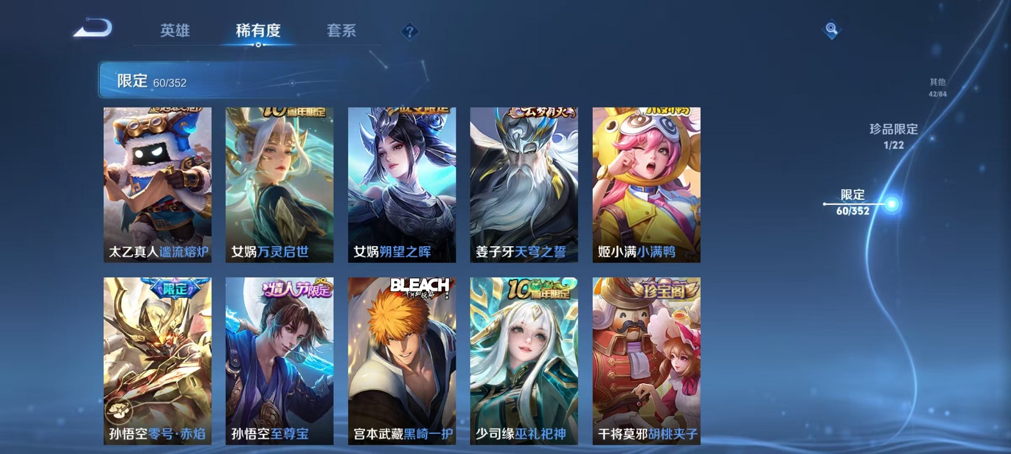 123英雄-185皮肤-可二次【珍品7传说185皮肤1星元1 可秒换绑】安卓qq-123英雄-185皮肤【珍品传说】黑崎一护【星元皮肤】幽冥火【传说皮肤】鸣野蒿 胖达荣荣 黄金狮子座 超时空战士 冠军飞将 地狱火 零号·赤焰【史诗皮肤】万灵启世 巫礼祀神 龙之律动 至尊宝 百相守梦 顽趣 幽灵船长 繁星吟游 女仆咖啡 魅力维加斯 魔术师 鹰眼统帅 蓝屏警告 箭羽风息 无限星赏官 鬼剑武藏 修罗 青龙志