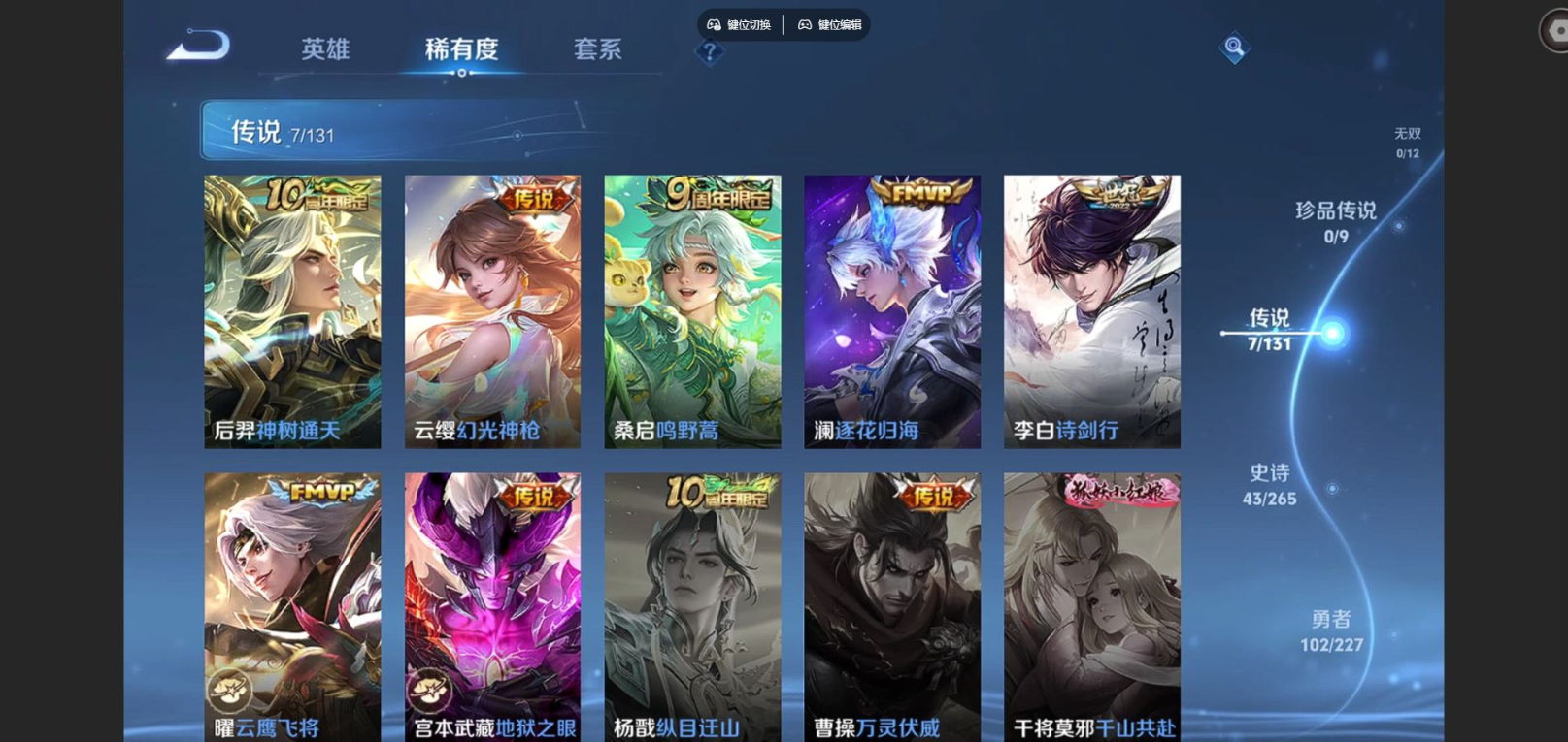 127英雄-197皮肤-125英雄-197皮肤v6-1典藏7传说 1星传说 幽冥之眼 【典藏】 星域神启 【传说】 逐花归海 神树通天 幻光神呛 鸣野蒿 诗剑行 云鹰飞将 地狱之眼 【热门】涂山容容 星空之诺 梁祝 黄忠百相守梦 星界特工 战舞者 燃音魔法 遇见神鹿 李小龙 水晶猎龙者 暗隐猎兽者 曙光守护者 特工战影 蔷薇恋人 心灵战警 修罗 紫霞仙子 功夫厨神 圣诞恋歌 乘风破浪 末日机甲男