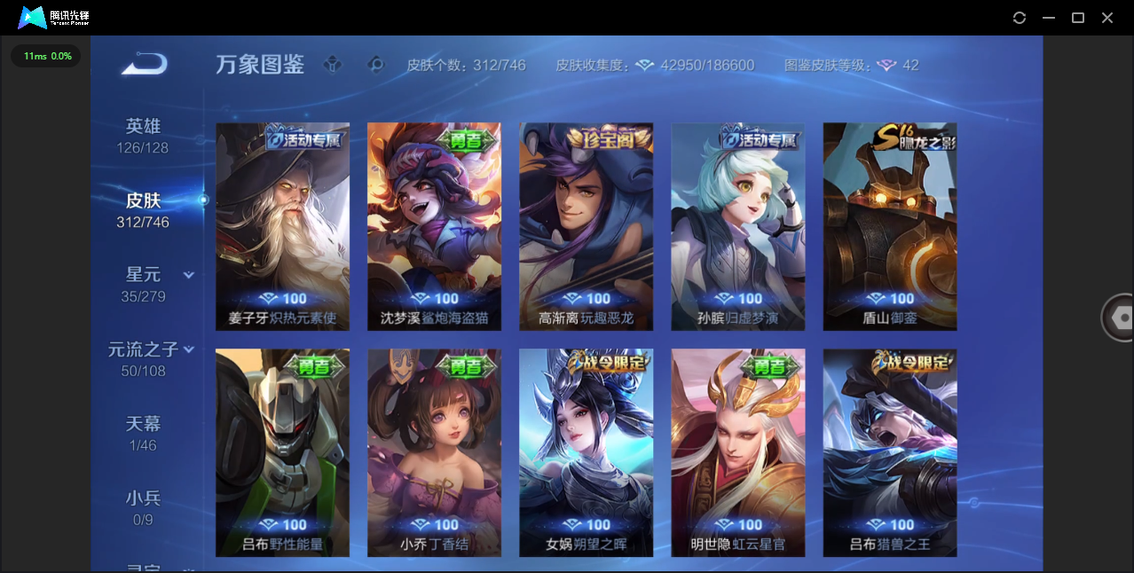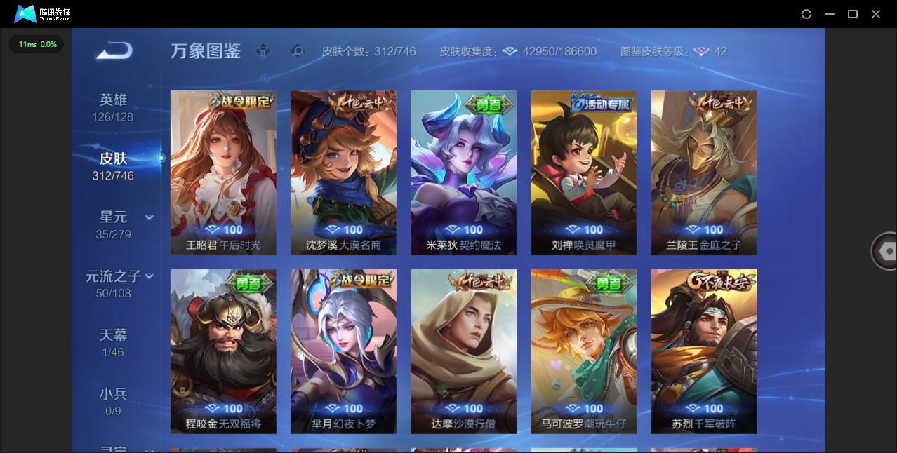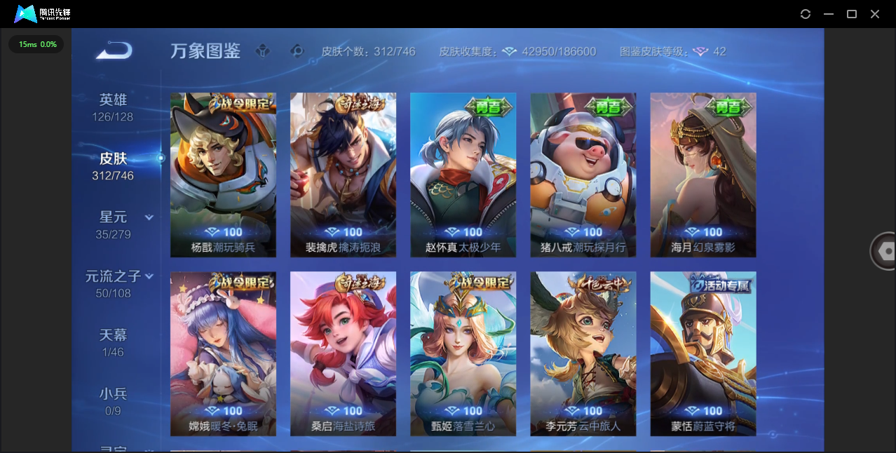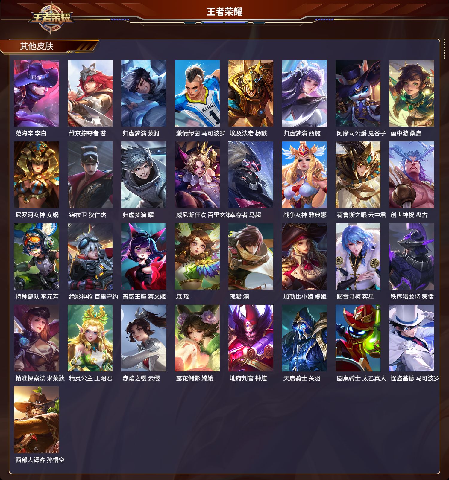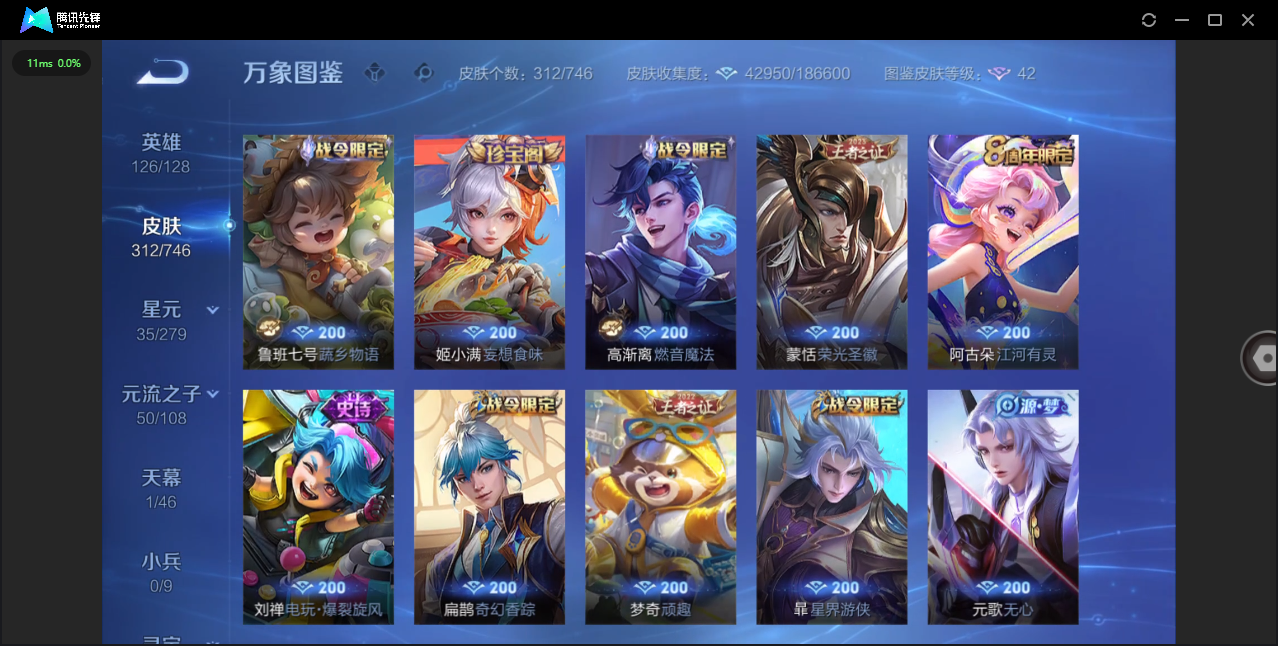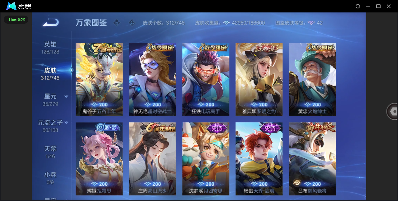 124英雄-312皮肤-安卓qq/非凡王者/312皮肤/124英雄/1典藏/0珍品无双/0无双/1珍品传说/16传说/83史诗/8稀有英雄【1 珍品传说】怪盗基德 马可波罗【1 典藏皮肤】神鉴启示录 虞姬【16 传说皮肤】启明星使 虞姬无双飞将 马超地狱火 孙悟空云鹰飞将 曜凤求凰 李白诗剑行 李白地狱之眼 宫本武藏黄金射手座 后羿黄金狮子座 达摩绯月行 不知火舞久胜战神 干将莫邪末日机甲 孙尚
