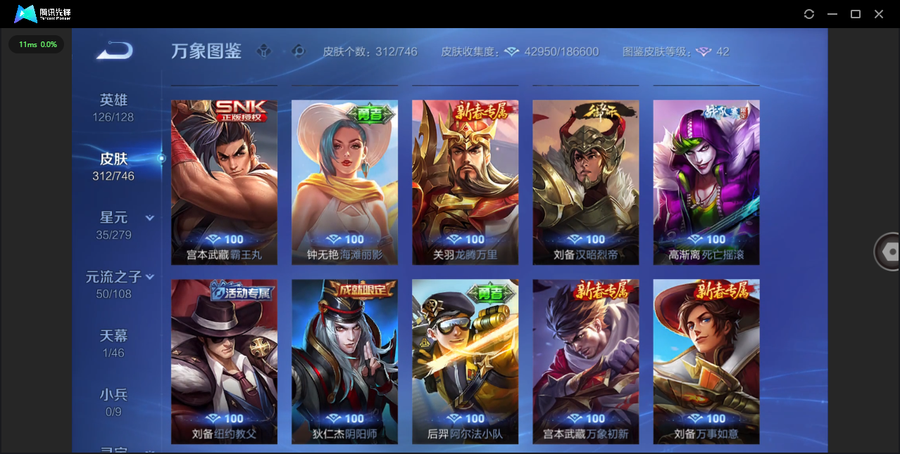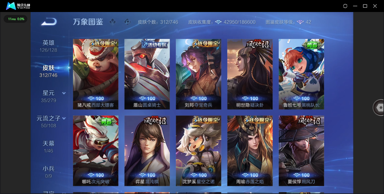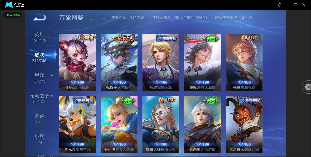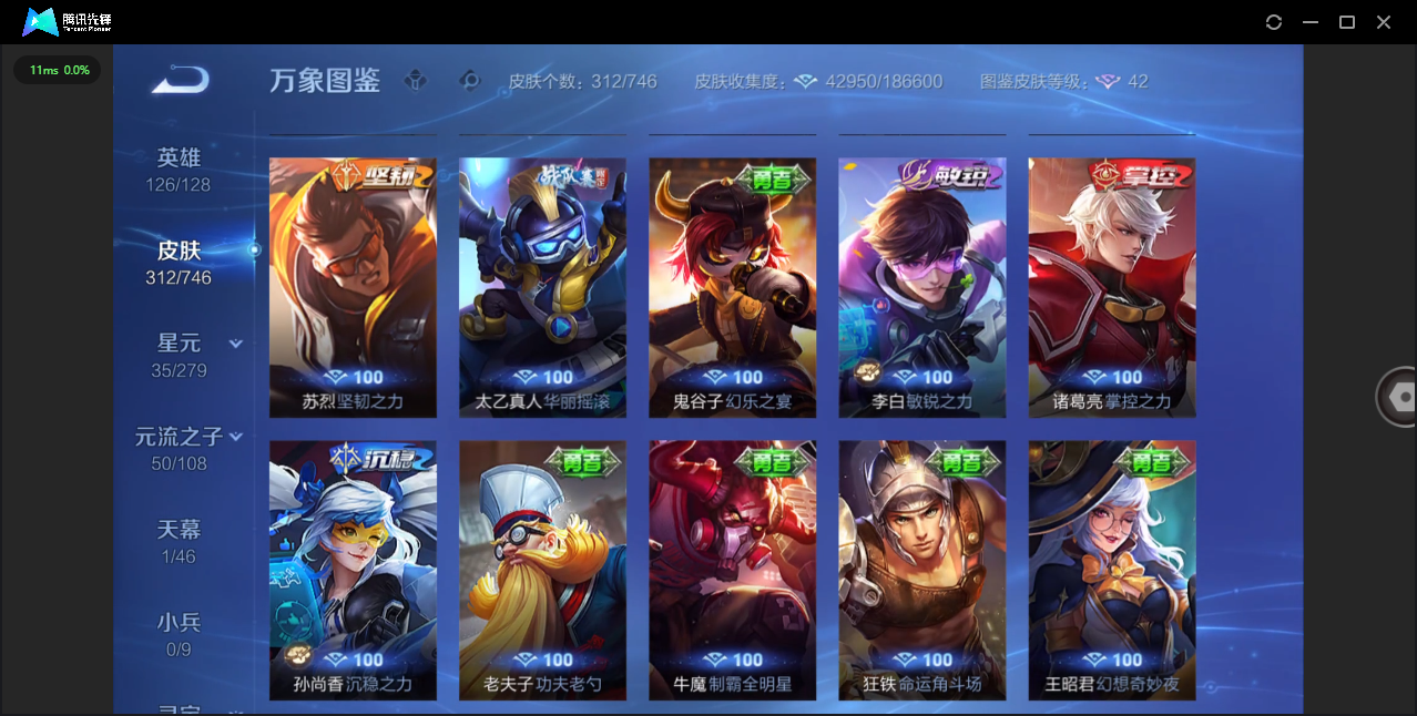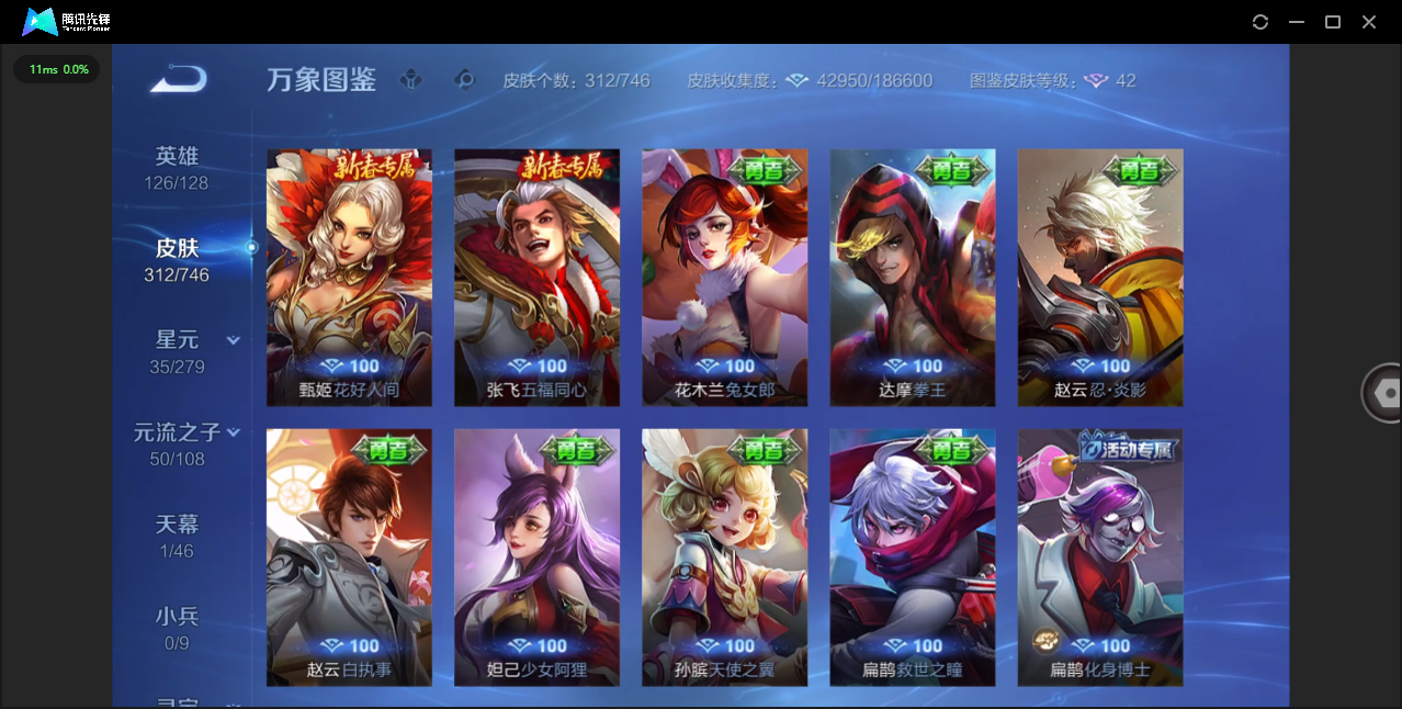 124英雄-312皮肤-安卓qq/非凡王者/312皮肤/124英雄/1典藏/0珍品无双/0无双/1珍品传说/16传说/83史诗/8稀有英雄【1 珍品传说】怪盗基德 马可波罗【1 典藏皮肤】神鉴启示录 虞姬【16 传说皮肤】启明星使 虞姬无双飞将 马超地狱火 孙悟空云鹰飞将 曜凤求凰 李白诗剑行 李白地狱之眼 宫本武藏黄金射手座 后羿黄金狮子座 达摩绯月行 不知火舞久胜战神 干将莫邪末日机甲 孙尚