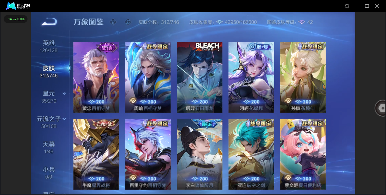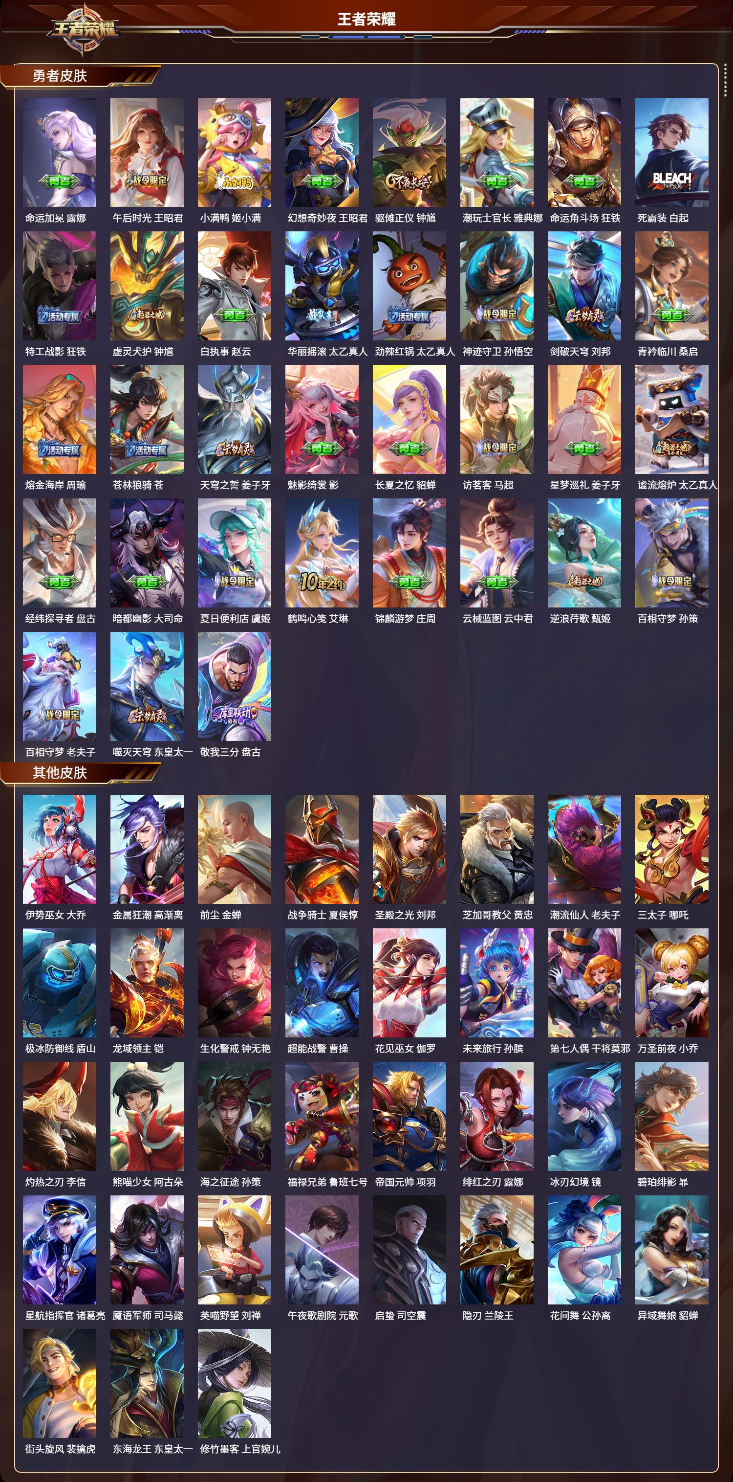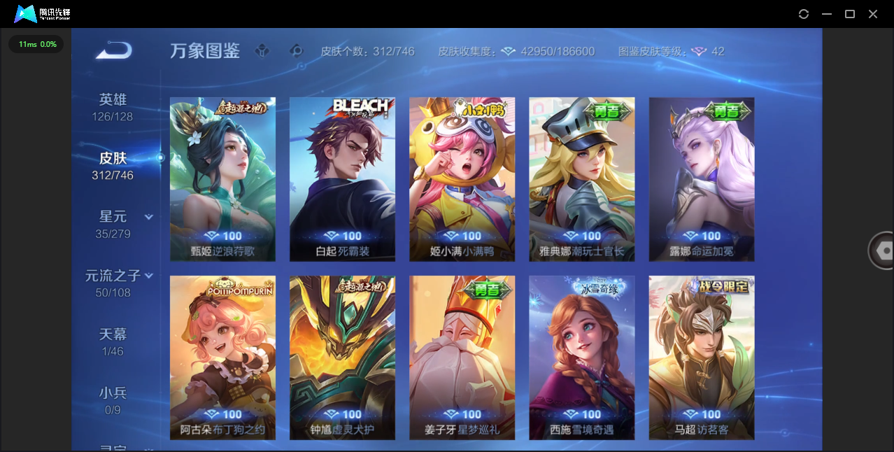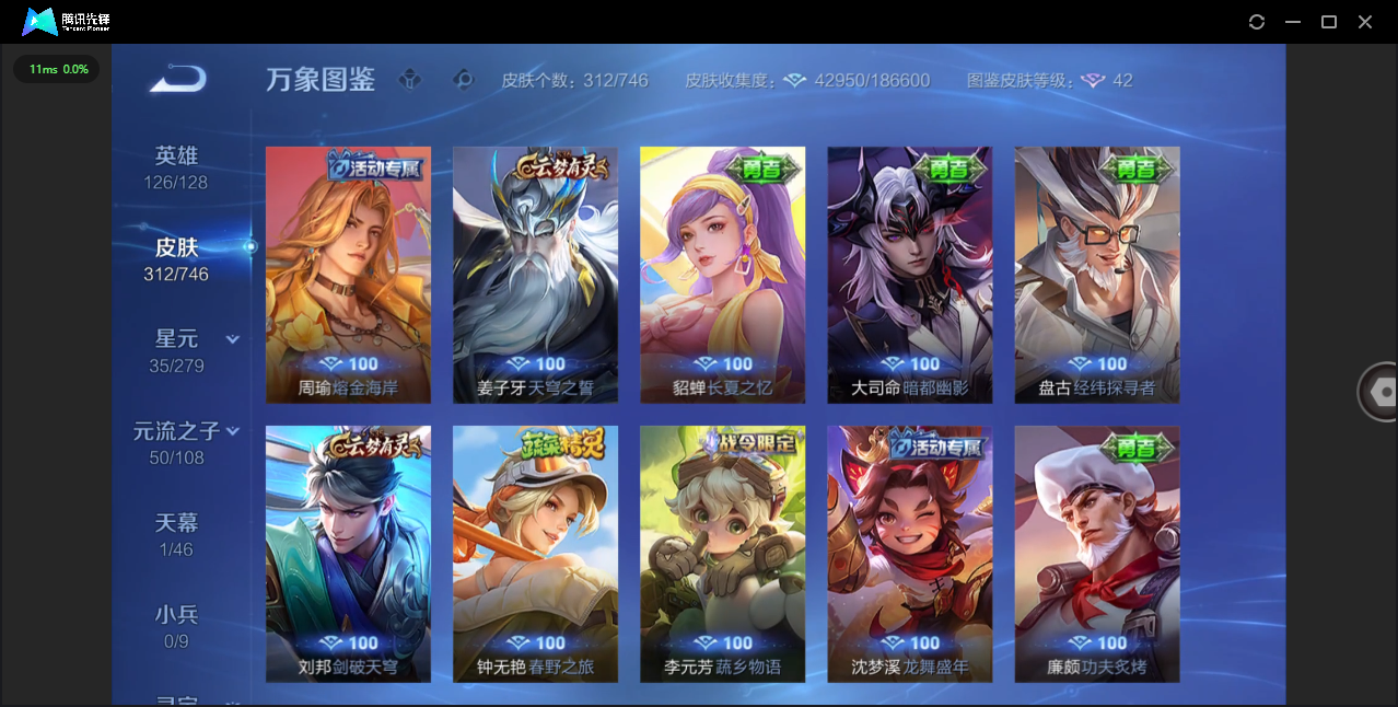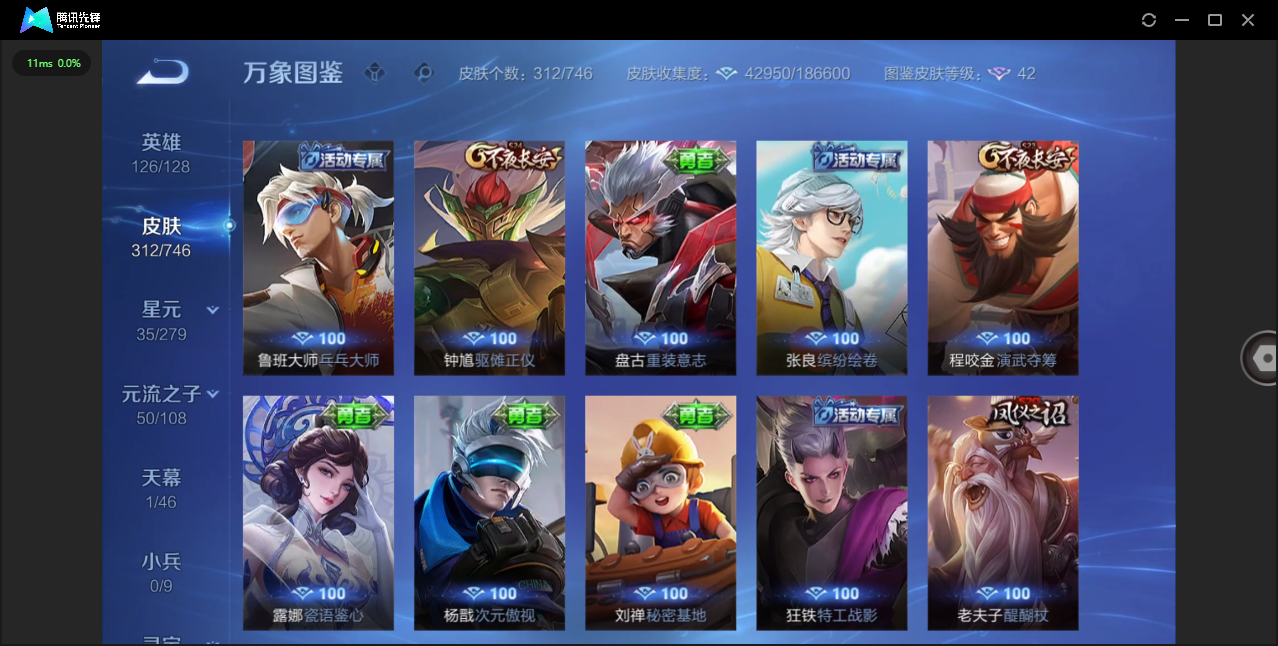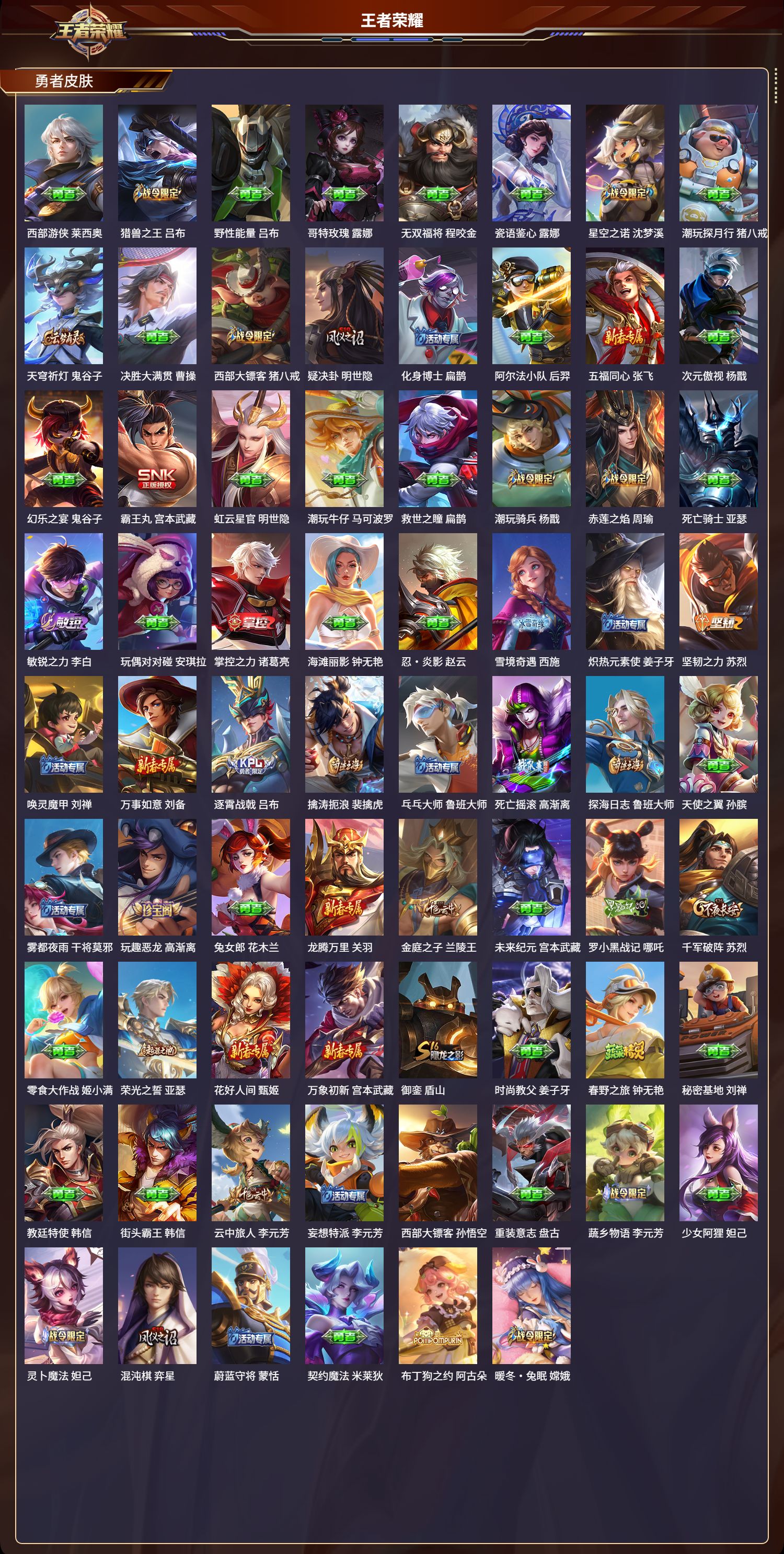 124英雄-312皮肤-安卓qq/非凡王者/312皮肤/124英雄/1典藏/0珍品无双/0无双/1珍品传说/16传说/83史诗/8稀有英雄【1 珍品传说】怪盗基德 马可波罗【1 典藏皮肤】神鉴启示录 虞姬【16 传说皮肤】启明星使 虞姬无双飞将 马超地狱火 孙悟空云鹰飞将 曜凤求凰 李白诗剑行 李白地狱之眼 宫本武藏黄金射手座 后羿黄金狮子座 达摩绯月行 不知火舞久胜战神 干将莫邪末日机甲 孙尚