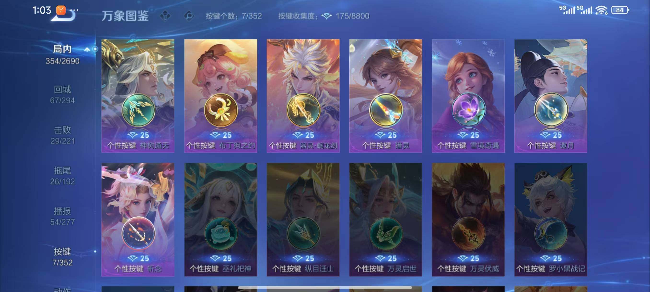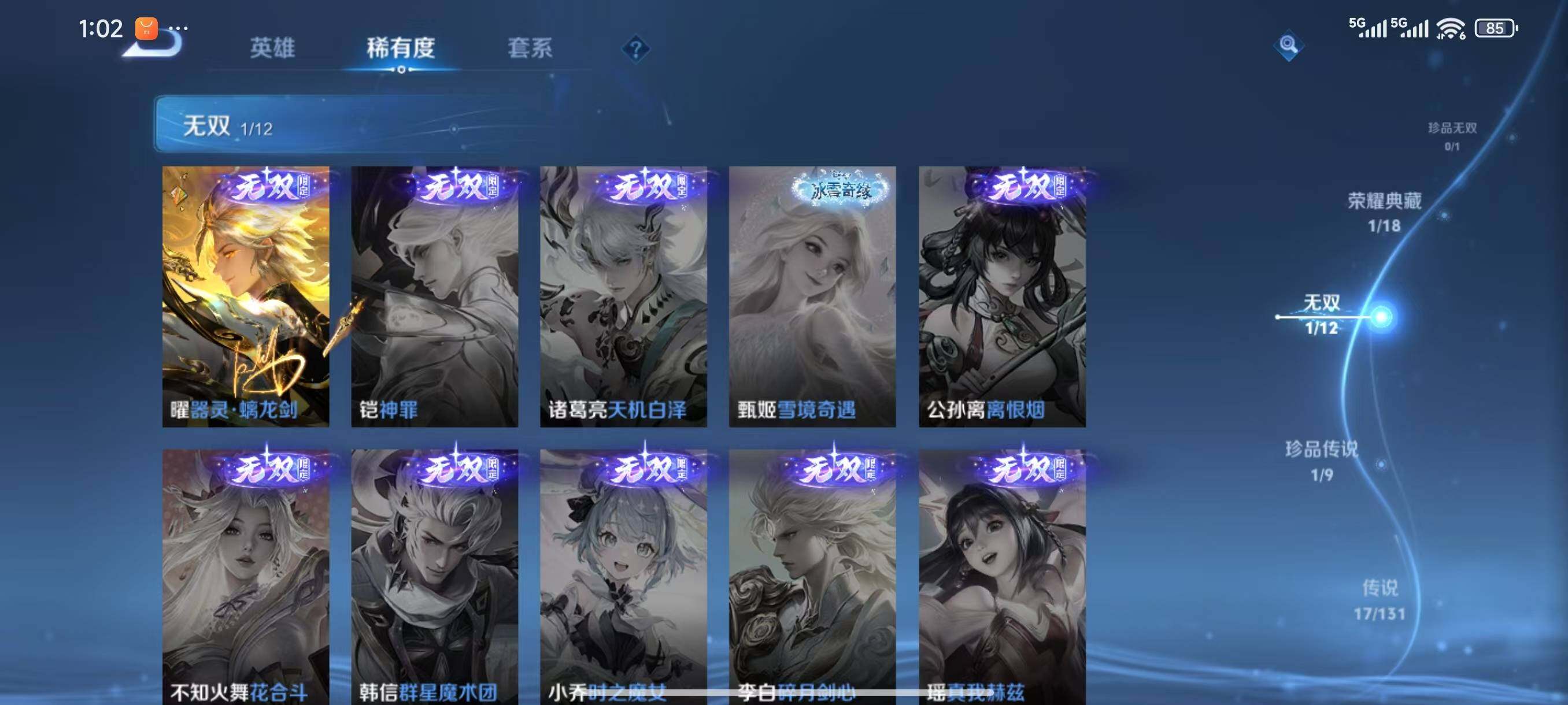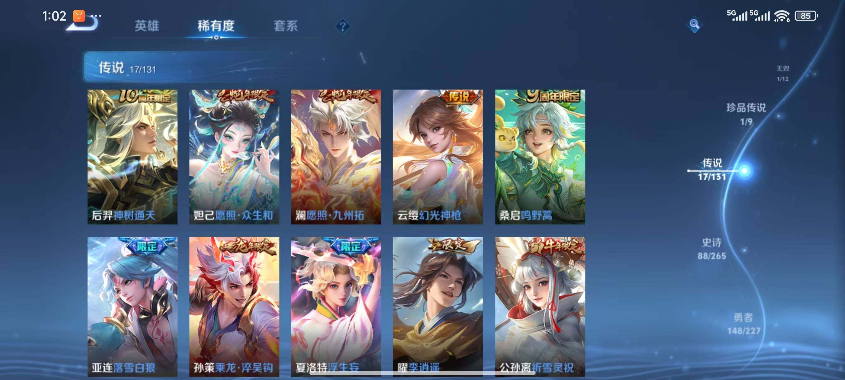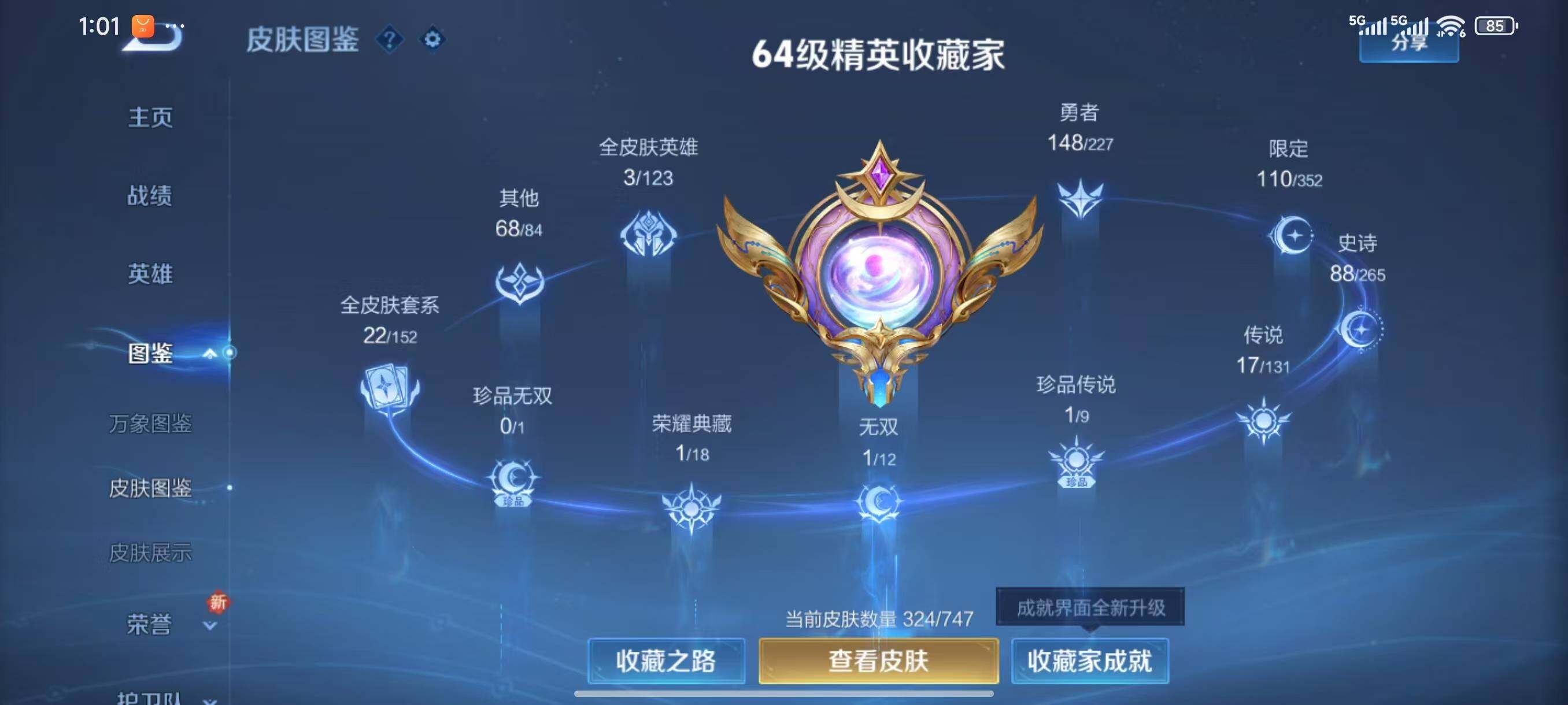 127英雄-324皮肤-金标李白,安卓q-v7-最强王者段位-127英雄-324皮肤-1典藏皮肤-1无双-1珍品传说-17传说-88史诗 【英雄全皮】:孙权全皮,猪八戒全皮,蒙恬全皮 【荣耀典藏】:李白鸣剑曳影 【无双皮肤】:曜器灵螭龙剑 【珍品传说】:马可波罗怪盗基德 【传说皮肤】:后羿神树通天,妲己愿照众生和,澜愿照九