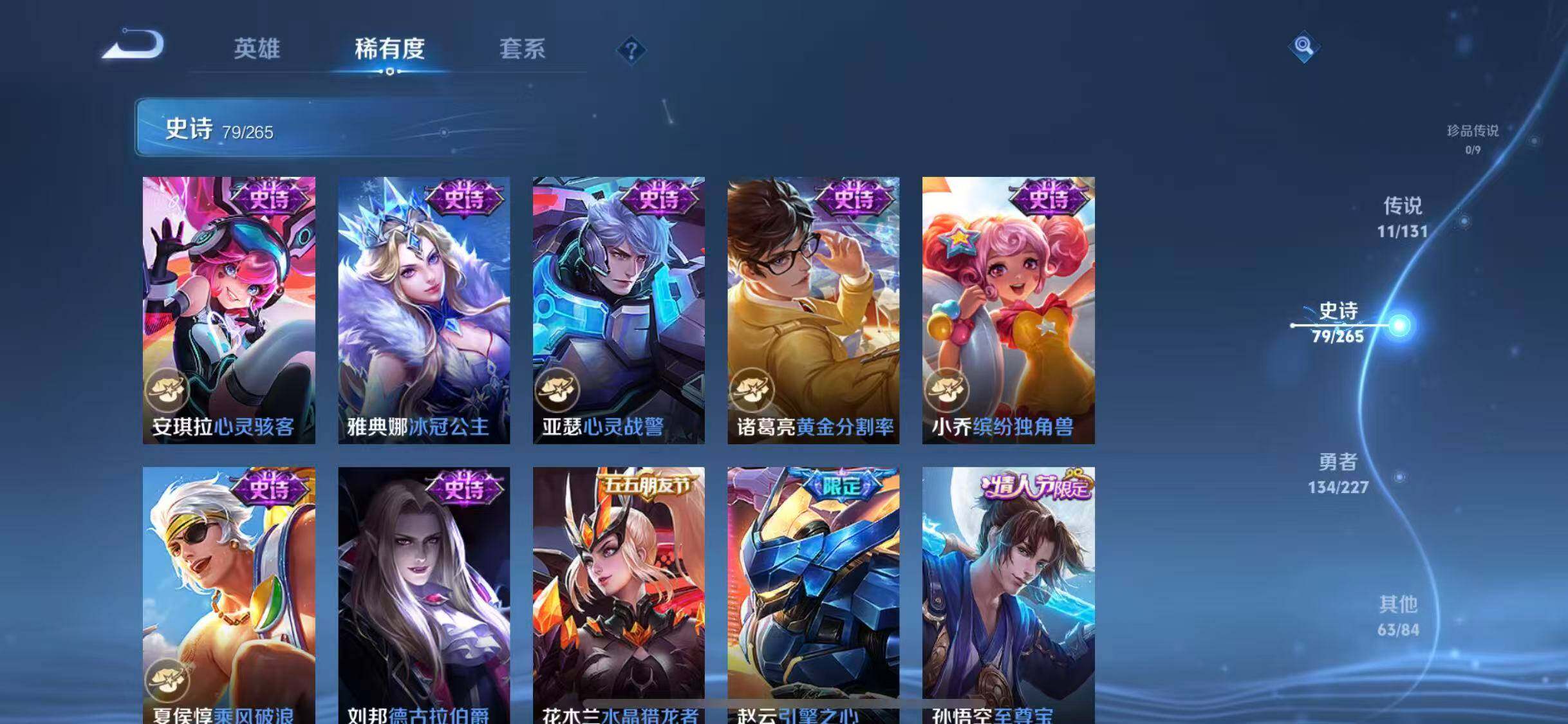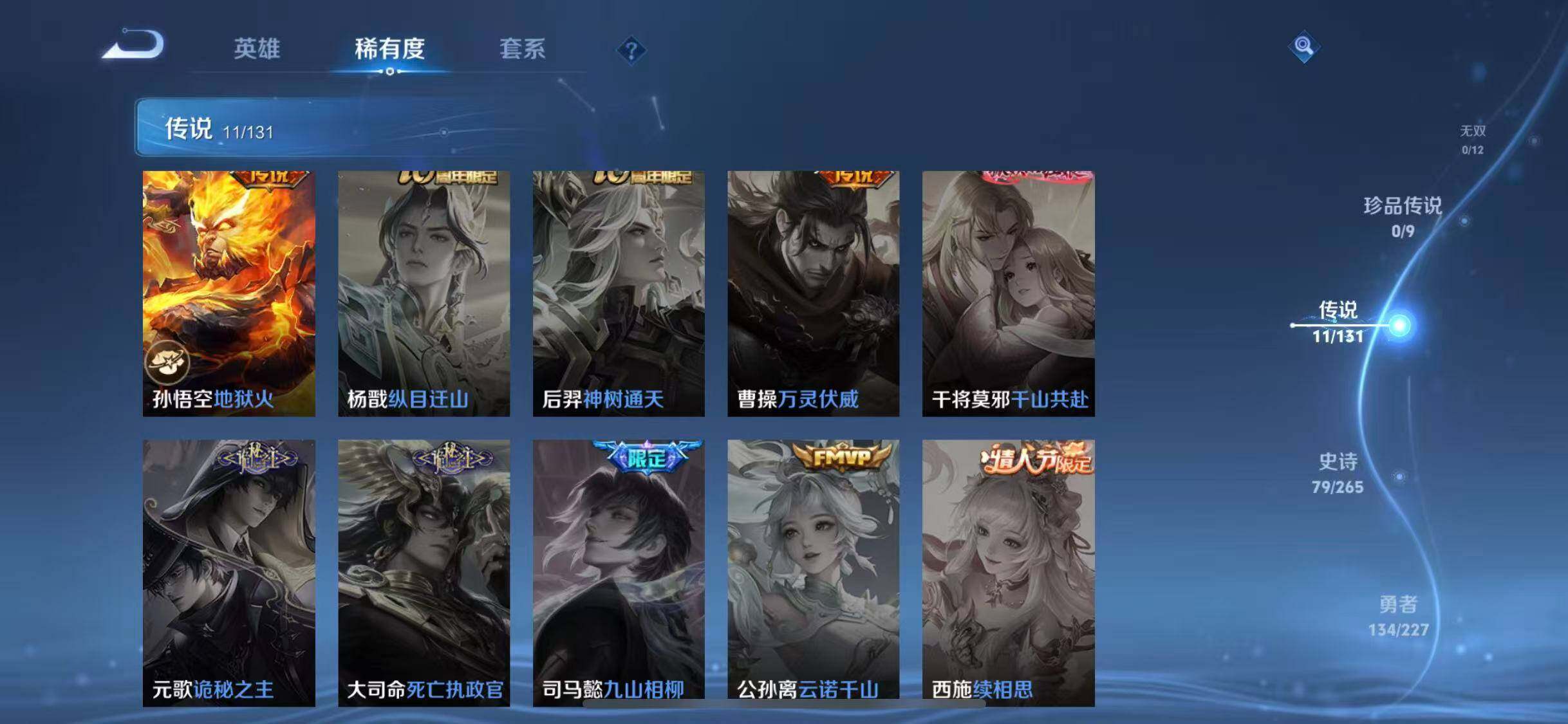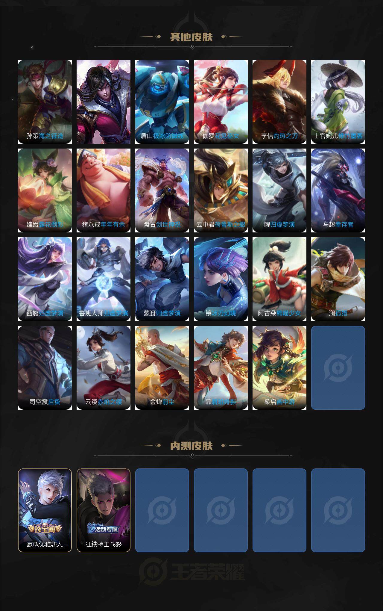 126英雄-289皮肤-【wzsa1279】贵族8/皮肤289/典藏2/传说11/史诗79/英雄126/鬼谷子全皮/狂铁全皮/空空儿全皮/影全皮/诸葛亮-星域神启/花木兰-九霄神辉/桑启鸣野蒿/澜-逐花归海/马超-无双飞将/女娲-补天/孙尚香-异界灵契/赵云-淬星耀世/虞姬-启明星使/李信-一念神魔/达摩-黄金狮子座/孙尚香-末日机甲/孙悟空-地狱火/白起-狰/姜子牙天穹之誓/狄仁杰-阴阳师/虞姬-凯尔特女王/赵云-