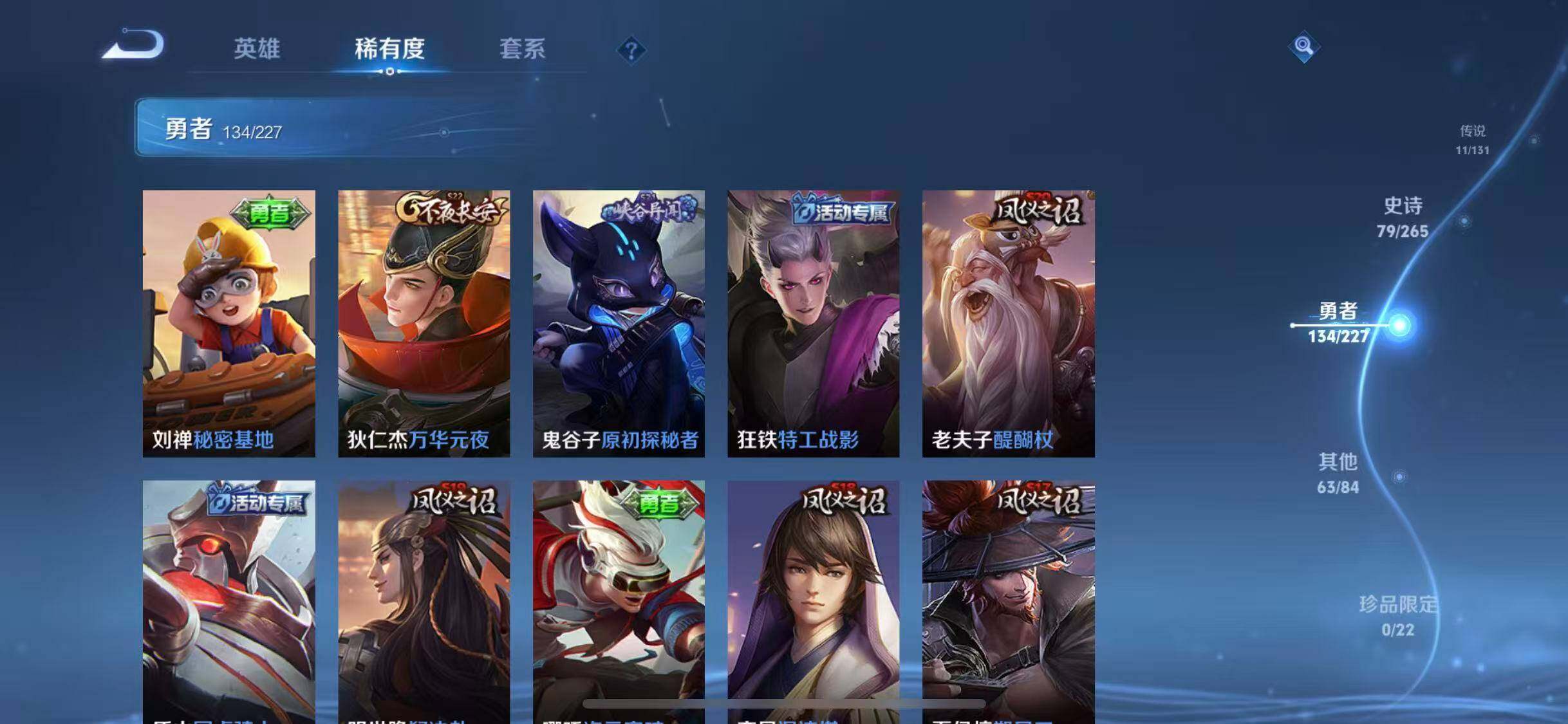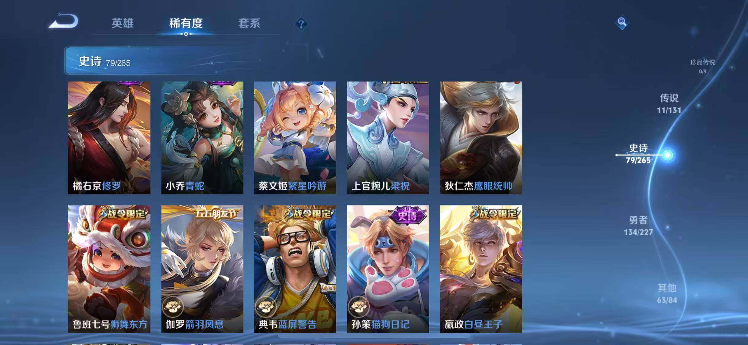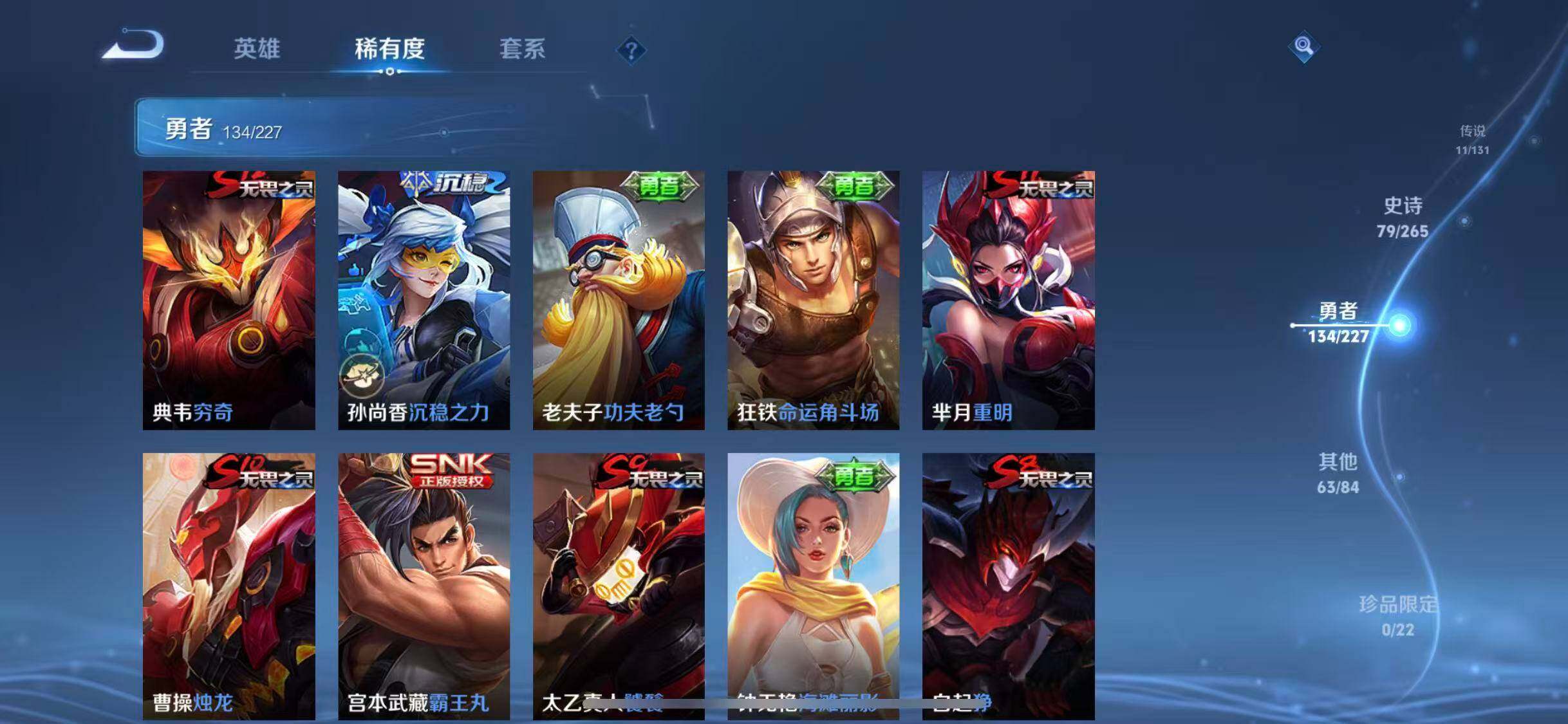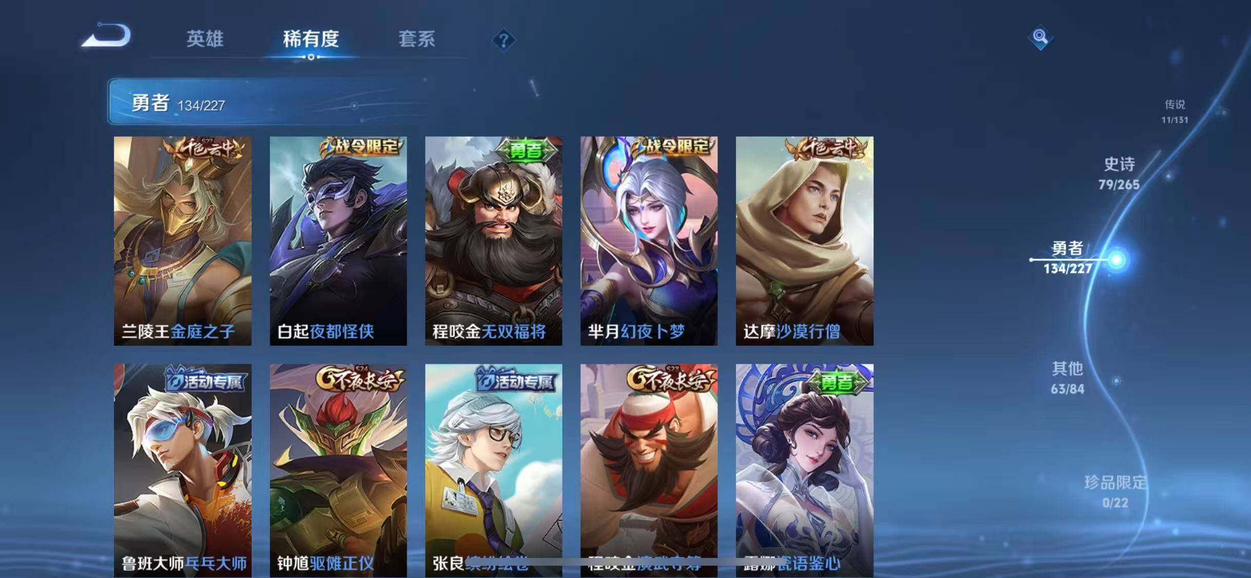 126英雄-289皮肤-【wzsa1279】贵族8/皮肤289/典藏2/传说11/史诗79/英雄126/鬼谷子全皮/狂铁全皮/空空儿全皮/影全皮/诸葛亮-星域神启/花木兰-九霄神辉/桑启鸣野蒿/澜-逐花归海/马超-无双飞将/女娲-补天/孙尚香-异界灵契/赵云-淬星耀世/虞姬-启明星使/李信-一念神魔/达摩-黄金狮子座/孙尚香-末日机甲/孙悟空-地狱火/白起-狰/姜子牙天穹之誓/狄仁杰-阴阳师/虞姬-凯尔特女王/赵云-
