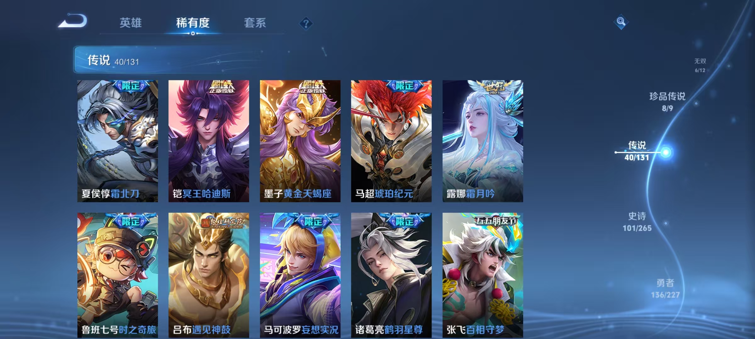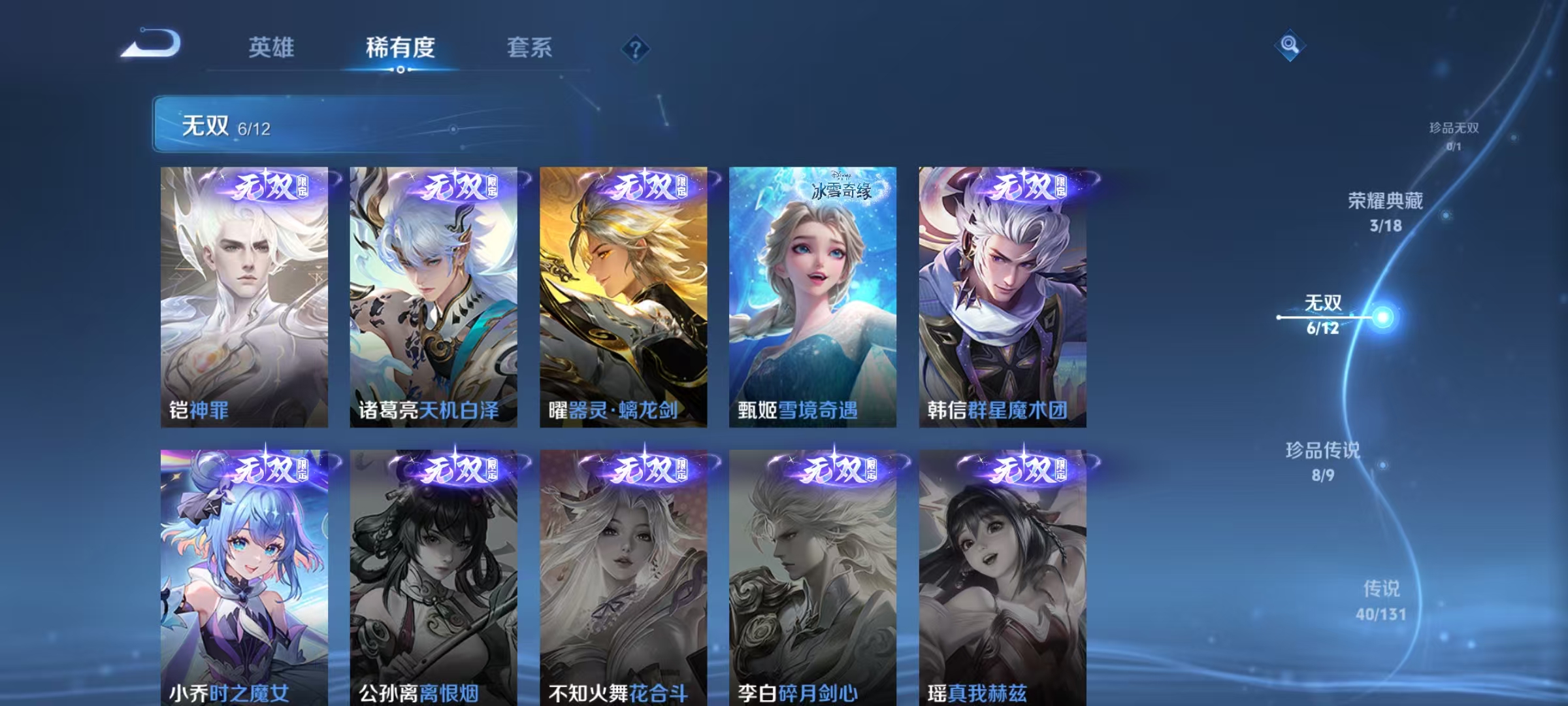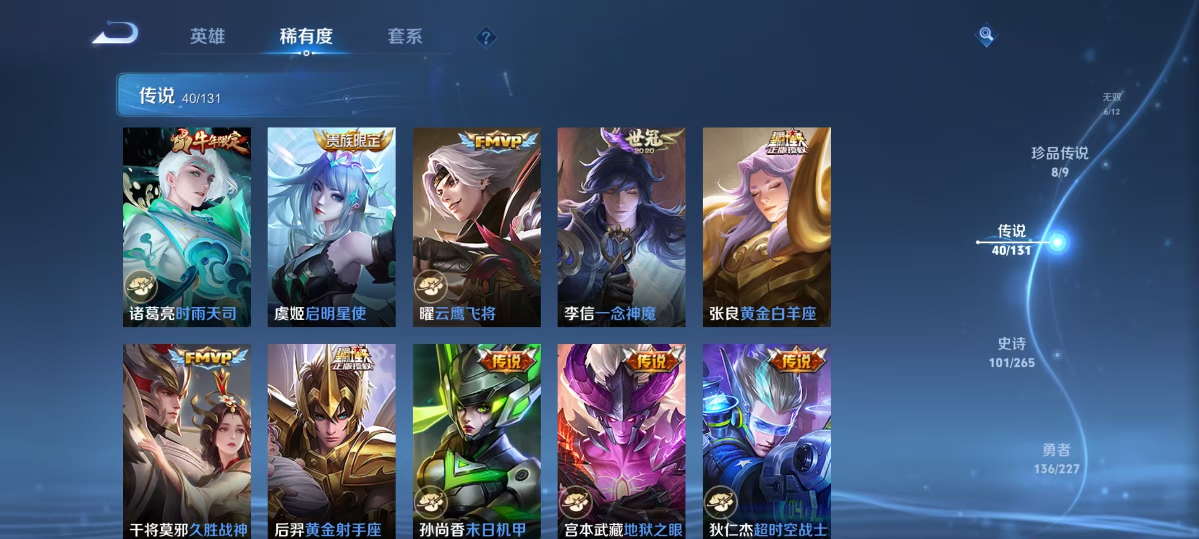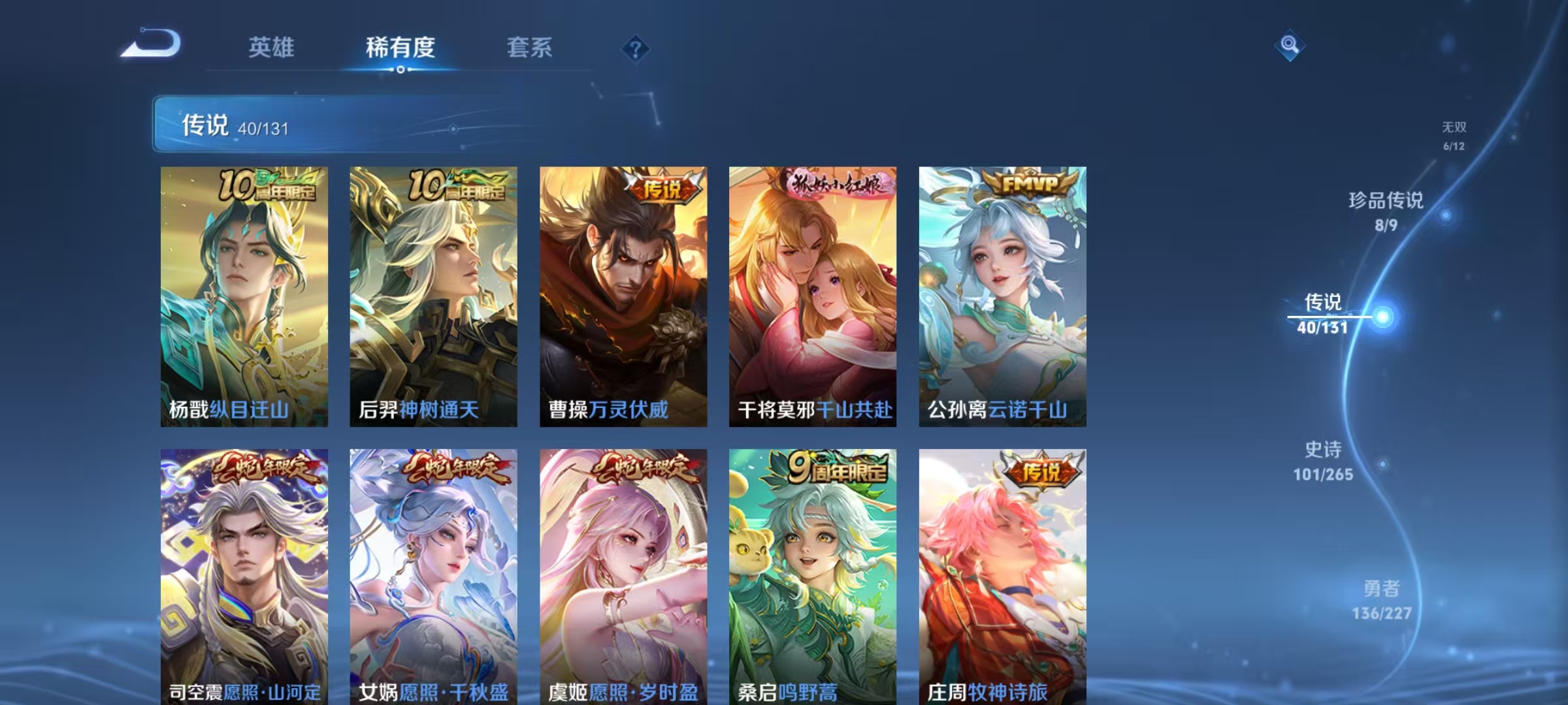 v9 精氪号 背包亲密度道具多多 348皮 3典藏(弑呛猎影 鸣剑·曳影 无限飓风号)6无双(时之魔女 群星魔术团 神罪 雪境奇遇 天机白泽 器灵·螭龙剑)8珍品(器灵·落星盏 黑崎一护 怪盗基德 时之奇旅 兔狲·蓬尾 江户川柯南 朽木白哉 大耳狗之梦)40传说(久胜战神 超时空战士 牧神诗旅 千山共赴 时雨天司 鸣野蒿 遇见神鼓 霜月吟 时之奇旅 鹤羽星尊 百相守梦 冥王哈迪斯 怒海麟威 浮生妄 淬星耀世 画中仙 记忆之芯 霜北刀 李 纵目迁山 云诺千山 碎云 黄金天蝎座 祈雪灵祝 末日机甲 愿照·山河定 神树通天 黄金射手座 音你心动 启明星使 万灵伏威 愿照·千秋盛 地狱之眼 琥珀纪元 愿照·岁时盈 一念神魔 妄想实况 云鹰飞将 黄金白羊座 诗剑行)101史诗(飞衡 青春决赛季 傲雪梅呛 至尊宝 御风骁将 山海·玄木吟 大圣娶亲 谪仙醉月 东方月初 埋骨钱)棉花糖聚会天幕 怪盗基德天幕