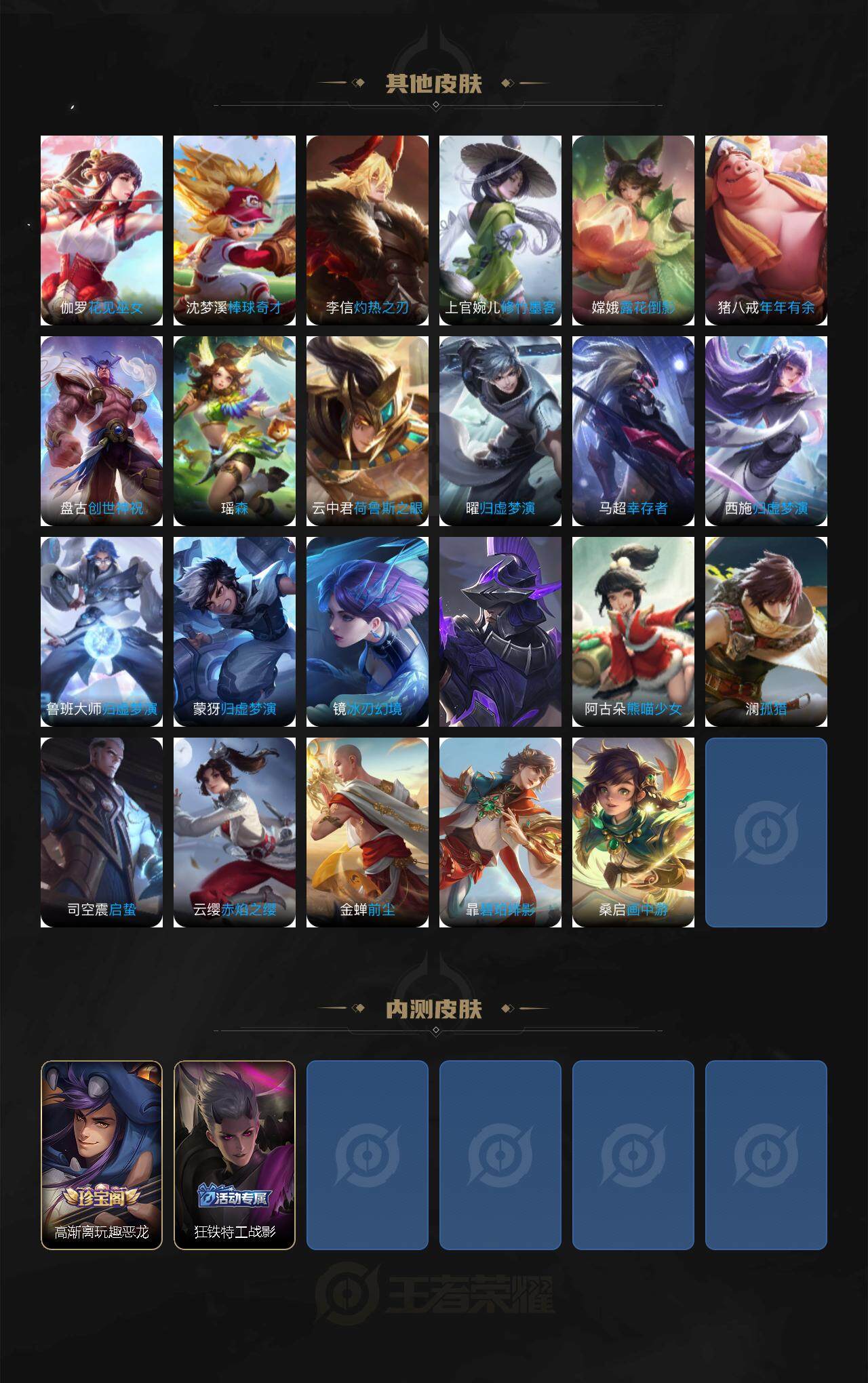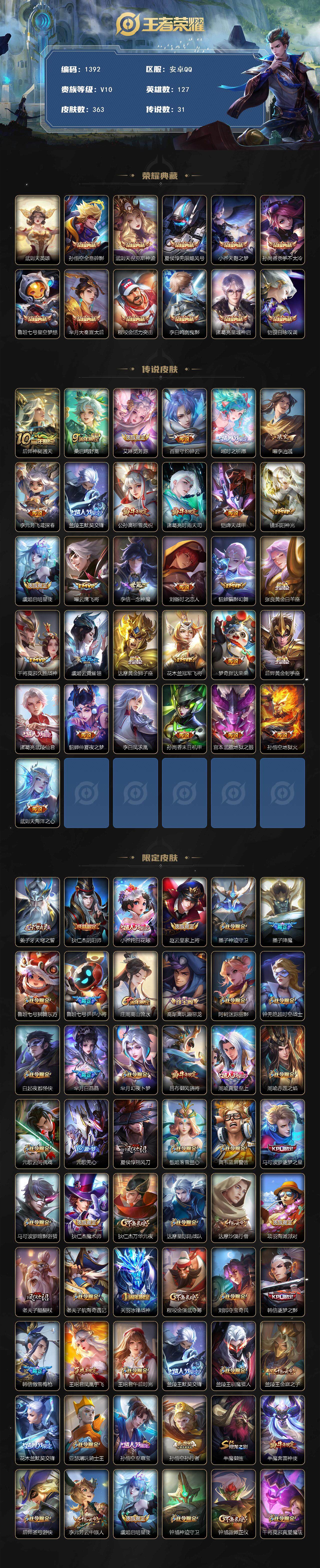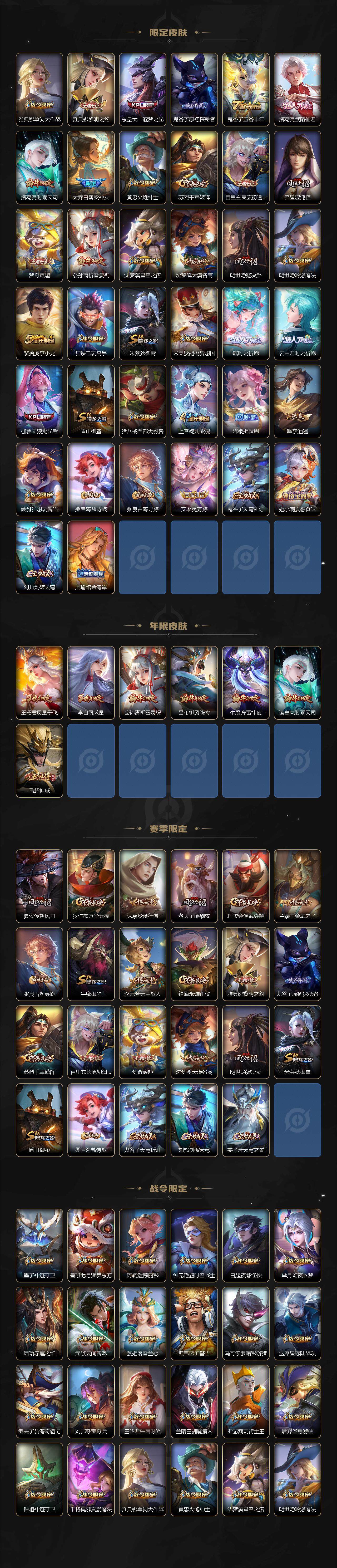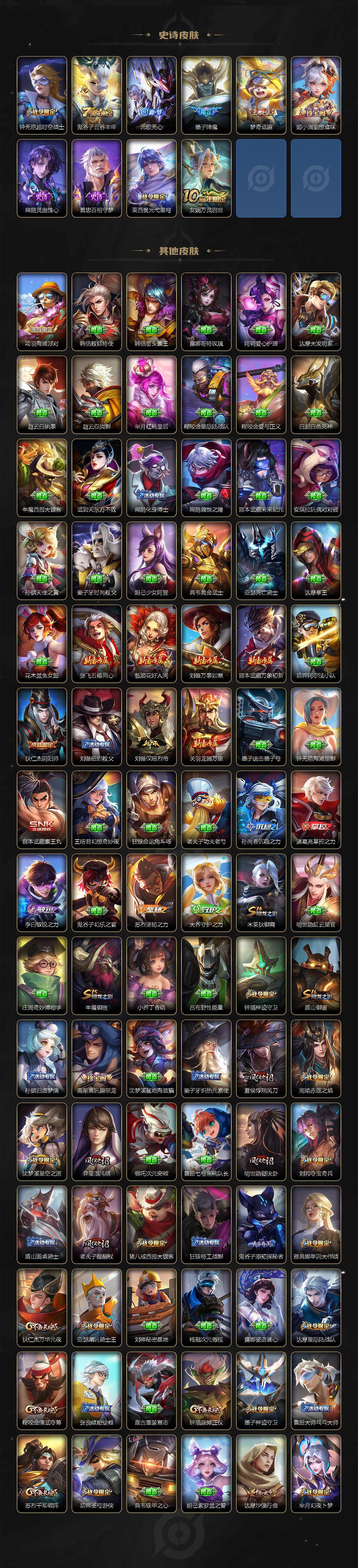 127英雄-363皮肤-贵族10/皮肤363/典藏11/传说31/史诗106/英雄127/武则天/全息碎影 孙悟空/倪克斯神谕 武则天/无限飓风号 夏侯惇/天鹅之梦 小乔/杀手不太冷 孙尚香/星空梦想 鲁班七号/大秦宣太后 芈月/活力突击 程咬金/鸣剑·曳影 李白/星域神启 诸葛亮/银白咏叹调 铠/神树通天 后羿/鸣野蒿 桑启/觅芳踪 艾琳/碎云 百里守约/时之祈愿 瑶/李 曜/飞鸢探春 李元芳/默契交锋 兰陵王