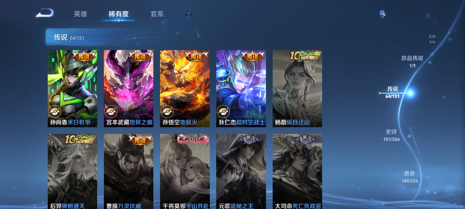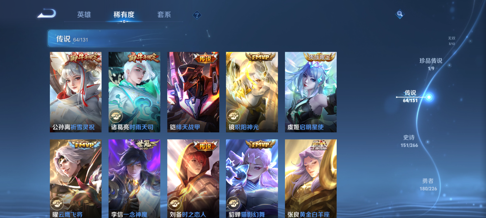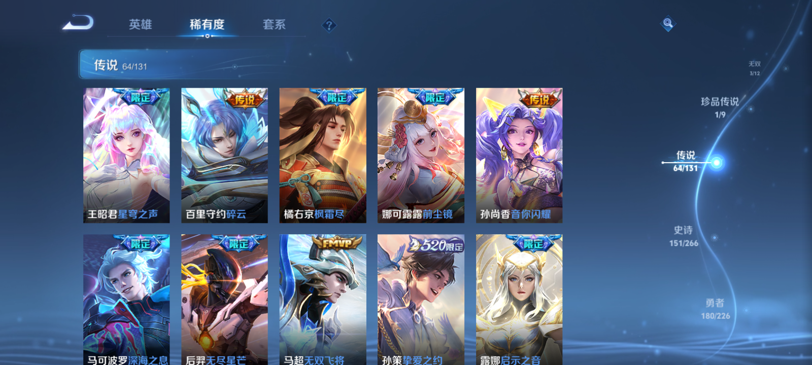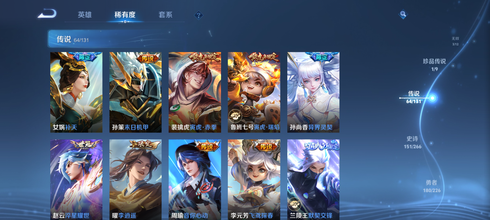 【王者荣耀】【lywz20528】珍品无双1 典藏8 无双3 珍品传说1 传说64 史诗150 英雄126 皮肤489 贵族10级 珍品无双:馥梦繁花__荣耀典藏:全息碎影|天鹅之梦|杀手不太冷|神鉴启示录|银白咏叹调|幻阙歌|九霄神辉|鸣剑·曳影__无双皮肤:群星魔术团|天机白泽|神罪__珍品传说:大耳狗之梦__传说皮肤:枫霜尽|前尘镜|音你闪耀|深海之息|无尽星芒|无双飞将|挚爱之约|启示之音|补天|异界灵契|绛天战甲|炽阳神光|启明星使|胖达荣荣|地狱之眼|地狱火|孙策-末日机甲|仲夏夜之梦|云霓雀翎|久胜战神|黄金狮子座|狄仁杰-超时空战士|黄金射手座|黄金白羊座|猫影幻舞|刘备-时之恋人|一念神魔|云鹰飞将|冠军飞将|飞鸢探春|李|淬星耀世|炽翼辉光|绯月行|浮生妄|鹤羽星尊|画中仙|孙尚香-末日机甲|齐天大圣|白虎志|凤求凰|兰陵王-默契交锋|落雪白狼|怒海麟威|祈雪灵祝|燃星之曲|诗剑行|时雨天司|碎云|妄想实况|武陵仙君|项羽-无限倾心|星穹之声|寅虎·瑞焰|虞姬-无限倾心|周瑜-音你心动|云缨-鹤归松栖|觅芳踪|山海·苍雷引|山海·炽霜斩|山海·琳琅生|神器·狴犴令|寅虎·赤拳__稀有限定:寅虎·御盾|寅虎·展翼|寅虎·心曲|御风骁将|白晶晶|至尊宝|梅西|瑞麟志|青龙志|玄武志|朱雀志|大圣娶亲|一生所爱|引擎之心|飞衡|蔷薇恋人|神威|猪悟能|傲雪梅呛|李小龙|梁祝|山海·碧波行|山海·玄木吟|神器·万象笔|狮舞东方|唐三藏|拒霜思|暗影游猎|白昼王子|百解令|冰锋战神|冰霜恋舞曲|冰霜神祇|妲己-时之奇旅|大漠名商|地狱燃心|电玩高手|繁星吟游|高山流水|古海寻踪|海滩派对|海盐诗旅|华丽摇滚|皇家上将|混沌棋|剑破天穹|江河有灵|降魔|金庭之子|决胜骁骑|凯尔特女王|狂想玩偶喵|蓝屏警告|黎明之约|炼金王|美猴王|梦圆繁星|迷踪丽影|魔法小厨娘|魔术师|花木兰-默契交锋|女武神|千军破阵|擒涛扼浪|青焰无极|穷奇|驱傩正仪|荣光圣徽|沙漠行僧|朔风刀|死亡摇滚|探海日志|饕餮|醍醐杖|天狼狩猎者|天狼溯光者|天穹祈灯|玩趣恶龙|万华元夜|无心|五谷丰年|午后时光|纤云弄巧|星界游侠|星空之诺|驯魔猎人|演武夺筹|疑决卦|阴阳师|银河之约|游园惊梦|驭风魔法|遇见飞天|御旌|御銮|御狮|原初追逐者|云间偶戏|逐梦之光|暗夜贵公子|暗夜猫娘|暗隐猎兽者|白蛇|缤纷独角兽|冰冠公主|冰雪圆舞曲|苍穹之光|乘风破浪|大乔-猫狗日记|德古拉伯爵|地狱岩魂|电玩·爆裂旋风|电玩小子|伽罗-琥珀纪元|功夫厨神|鬼剑武藏|黄金分割率|箭羽风息|节奏热浪|金属风暴|乐园奇幻夜|龙骑士|吕布-末日机甲|玫瑰异探|魅力维加斯|魅语|梦奇-顽趣|女仆咖啡|偶像歌手|奇遇舞章|青蛇|热力回旋|赏金猎手|绅士熊喵|圣诞狂欢|圣诞恋歌|诗语江南|水果甜心|水晶猎龙者|孙策-猫狗日记|滕王阁序|天才门将|天秀·启明|晚萤|赵云-未来纪元|星夜王子|摇滚巨星|鹰眼统帅|永昼|幽灵船长|遇见神鹿|月团寄思|钟无艳-超时空战士|周瑜-真爱至上|逐浪之夏|紫霞仙子|赵怀真-鹤归松栖|噬灭天穹|霜北刀|天穹之誓|浮光幕影|怒海争锋|海诺-心动手记|修罗|曙光守护者|心灵战警|千年之狐|孙尚香-时之恋人|无限星赏官|舞动绿茵|特工魅影|心灵骇客|茶境仙|星界战将|谧流熔炉|御霄|狰|烛龙|原初探秘者|重明|云中旅人|玲珑珍味|单词大作战|朔望之晖|钟馗-神迹守卫|流音漫舞|访茗客|暖冬·兔眠|夺宝奇兵|苍威无极|落雪兰心|死神来了|华尔街大亨|刘禅-鸭鸭历险记|沈梦溪-鸭鸭历险记|灵蛊蚀心|龙之律动|布丁狗之约|虚灵犬护|小牛鸭|石田雨龙|逆浪荇歌|孙策-百相守梦|周瑜-百相守梦|黄忠-百相守梦|涂山容容|百里玄策-罗小黑战记|荣光之誓|万灵启世|巫礼祀神|鹤鸣心笺__优质皮肤:尼罗河女神|一千零一夜|创世神祝|年年有余|埃及法老|孤猎|木偶奇遇记|熊喵少女|午夜歌剧院|露花倒影|未来旅行|激情绿茵|海之征途|天启骑士|碧珀绯影|秩序猎龙将|锦衣卫|冰刃幻境|森|超能战警|英喵野望|维京掠夺者|海军大将|绯红之刃|踏雪寻梅|启蛰|战争骑士|伊势巫女|画中游|生化警戒|威尼斯狂欢|第七人偶|潮流仙人|芝加哥教父|街头旋风|绝影神呛|地府判官|荷鲁斯之眼|幸存者|赤焰之缨|福禄兄弟|隐刃|前尘|特种部队|三太子|精灵王|剑舞者|范海辛|星航指挥官|龙域领主|爱与和平|占星师|花间舞|魇语军师|极冰防御线|花见巫女|棒球奇才|东海龙王|蔷薇王座|灼热之刃|精准探案法|圣殿之光|帝国元帅|神奇女侠|战争女神|霓裳曲|加勒比小姐|阿摩司公爵|异域舞娘|精灵公主|修竹墨客|万圣前夜|长夏之忆|异域游侠|暗都幽影|功夫炙烤|暖冬絮语|潮玩探月行|虎啸剑宗|瓷语鉴心|秘密基地|次元突破|鲨炮海盗猫|野性能量|丁香结|奇妙博物学|虹云星官|守护之力|坚韧之力|幻乐之宴|功夫老勺|命运角斗场|幻想奇妙夜|海滩丽影|阿尔法小队|兔女郎|死亡骑士|黄金武士|少女阿狸|天使之翼|玩偶对对碰|宫本武藏-未来纪元|东方不败|红桃皇后|忍·炎影|爱心护理|街头霸王|教廷特使|鸿运当头|金色潮汐|时空谍影|决胜大满贯|破局者|零食大作战|西部游侠|太极少年|乐园追猎者|牛运亨通|幻泉雾影|潮玩造梦师|危途狂花|胡桃狂想曲|契约魔法|紫罗兰之誓|铁甲之心|重装意志|次元傲视|黑桃队长|幽兰居士|如懿|制霸全明星|进击墨子号|拳王|时尚教父|鲤鱼之梦|救世之瞳|白色死神|爱与正义|程咬金-星际陆战队|白执事|大发明家|致命风华|哥特玫瑰|魅影绮裳|星梦巡礼|猪