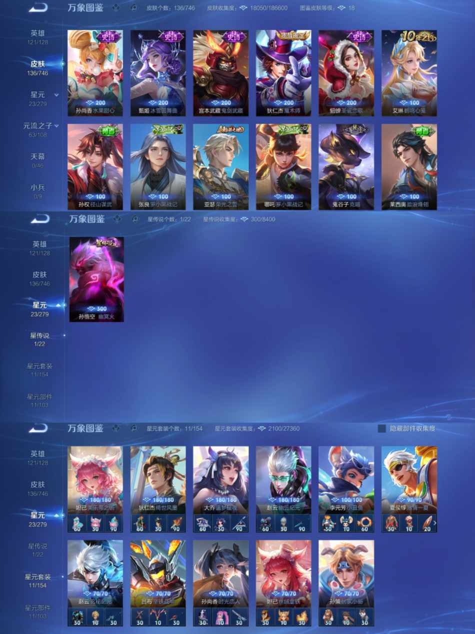 121英雄-136皮肤-可二次【1星元5传说可秒换绑】安卓qq-121英雄-136皮肤【星元皮肤】幽冥火【传说皮肤】纵目千山 神树通天 愿照·九州拓 一念神魔 地狱火 怒海麟威 鸣野蒿【史诗皮肤】陌上桑 百相守梦 修罗 曙光守护者 暗隐猎兽者 逐浪之夏 地狱岩魂 金属风暴 猫狗日记 水果甜心 时之恋人 乘风破浪 摇滚巨星 皇家上将 冰雪圆舞曲 乐园奇幻夜 黄金分割率 未来纪元 赏金猎手 节奏热浪 女仆
