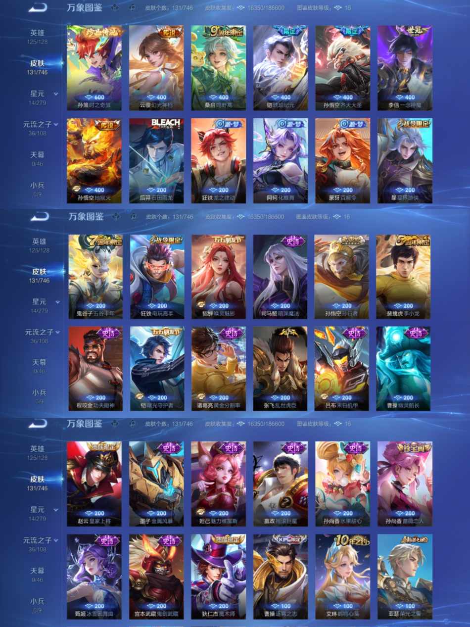125英雄-131皮肤-【1珍品6传说时之奇旅】安卓qq-125英雄-131皮肤【珍品传说】时之奇旅【传说皮肤】琥珀纪元 鸣野蒿 幻光神呛 齐天大圣 一念神魔 地狱火【史诗皮肤】百解令 星界游侠 幽灵船长 功夫厨神 李小龙 暗渊魔法 水果甜心 蔷薇恋人 孙行者 摇滚巨星 乱世虎臣 皇家上将 冰雪圆舞曲 黄金分割率 五谷丰年 电玩高手 唤灵魅影 魅力维加斯 魔术师 鹰眼统帅 鬼剑武藏 曙光守护者 末日机